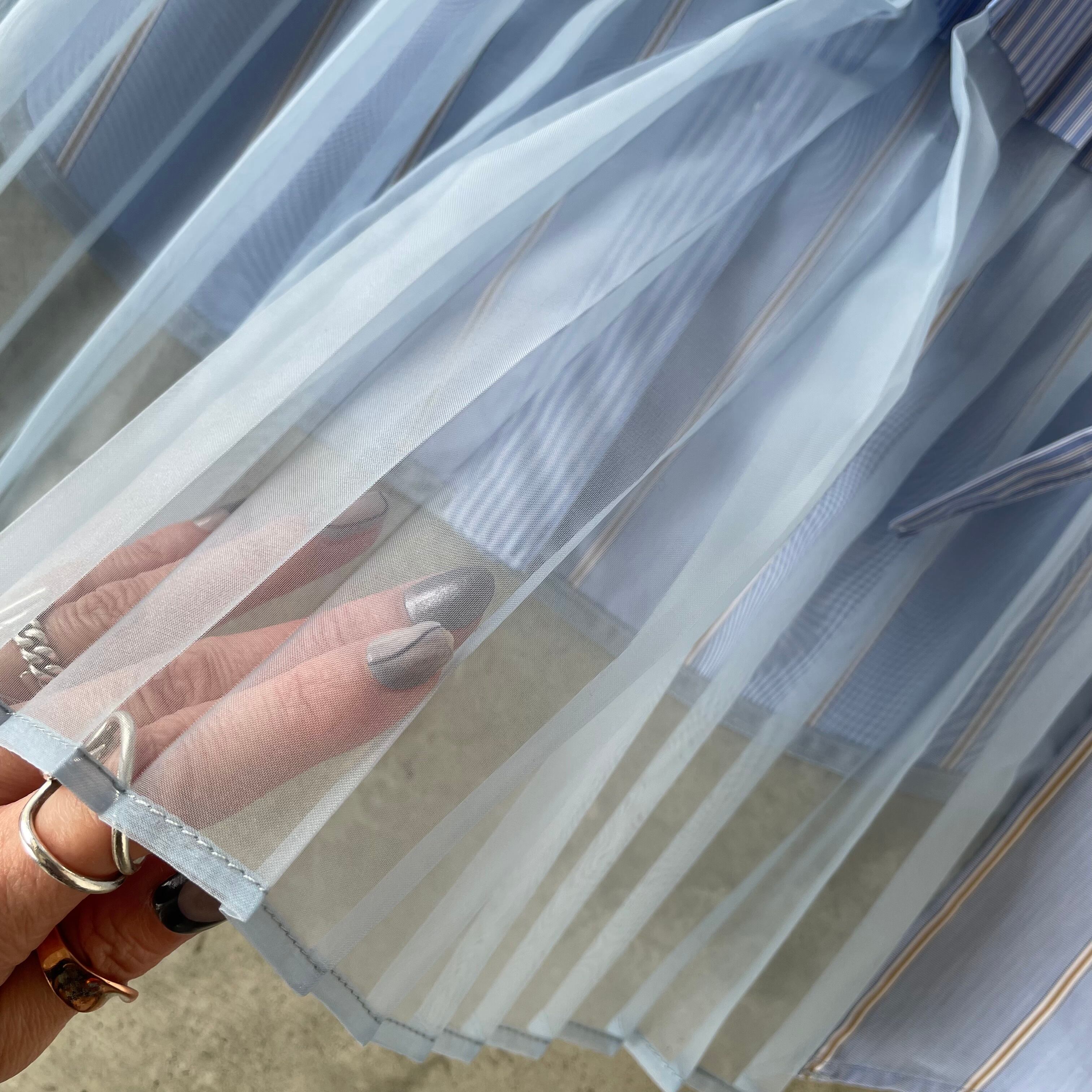 プリーツ部分には目の細かいメッシュを切り替え、エアリーな透け感を表現!