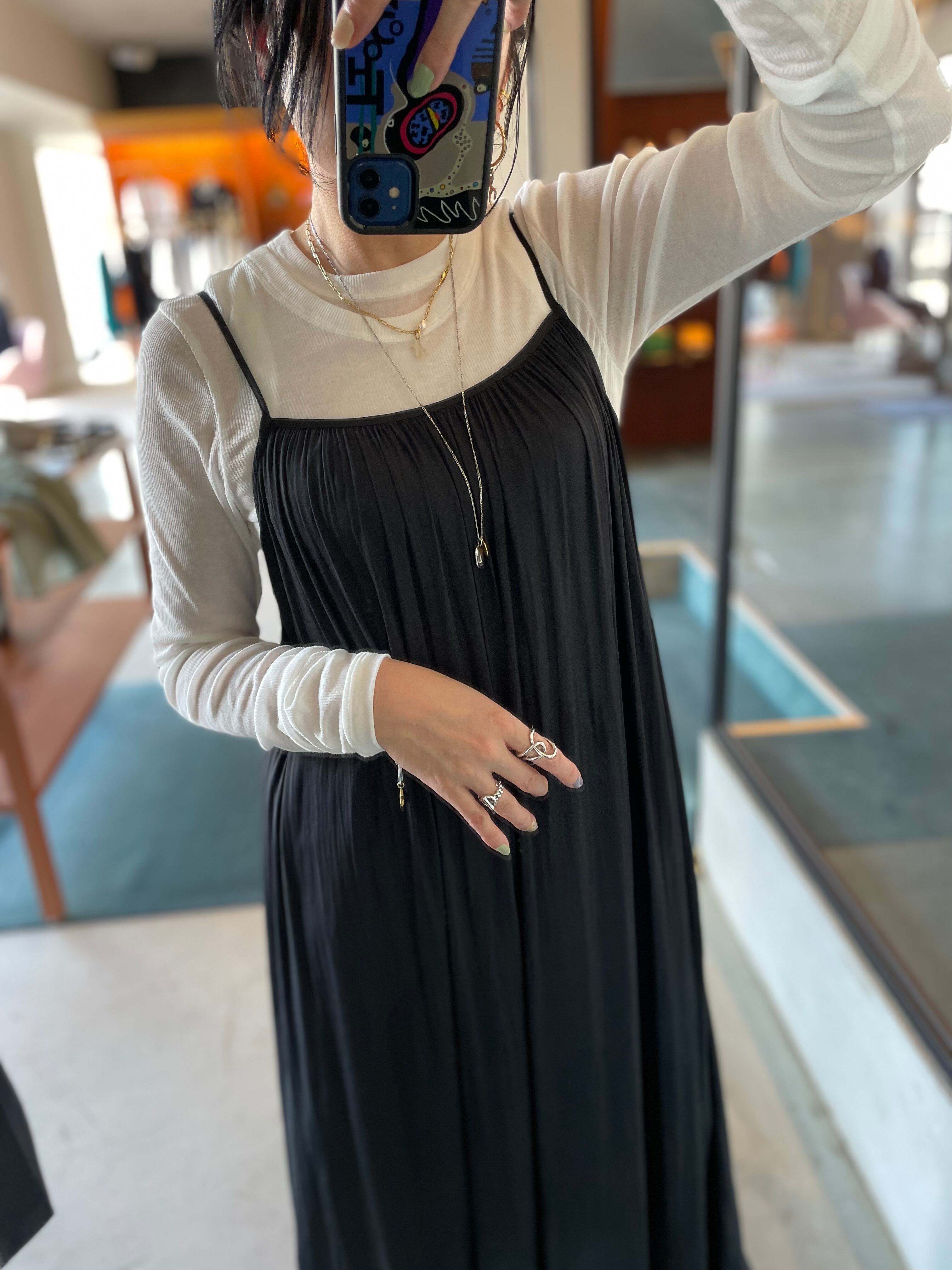 またまた人気急上昇⭐︎ストンと落ち感ラインがキレイなんです♪ たっぷりギャザーロングジャンパースカートです。