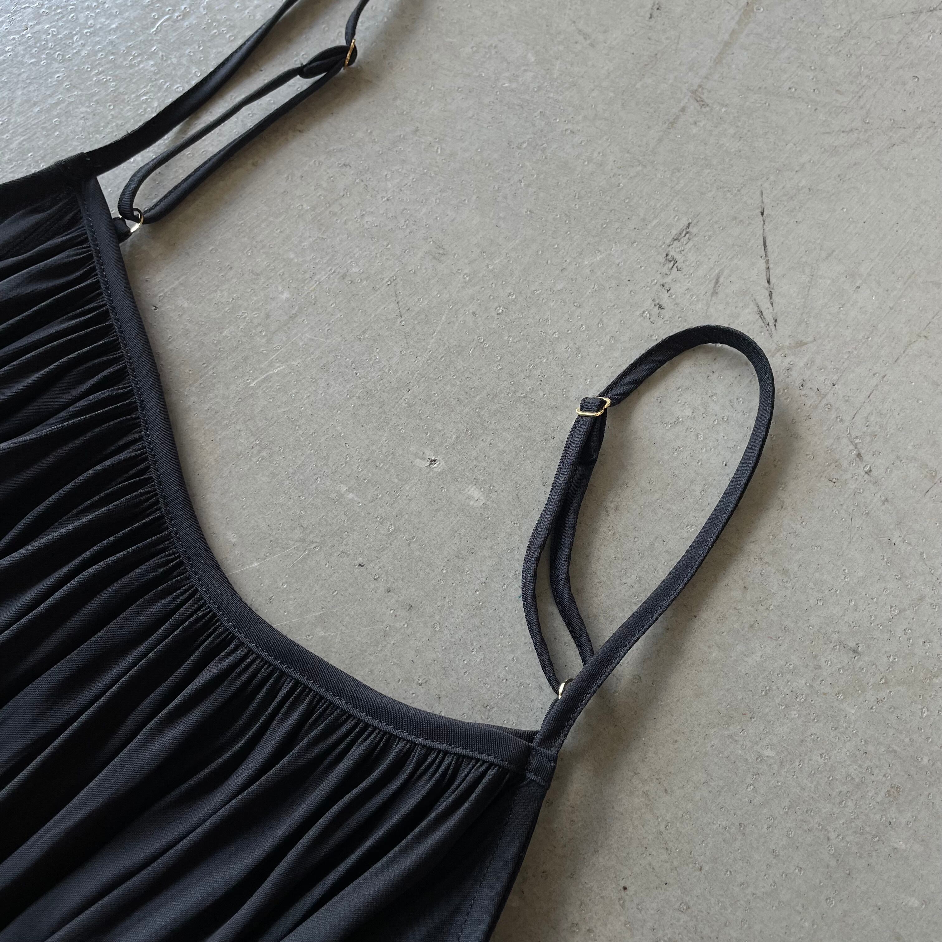 肩のストラップで長さを調節できるので、着る人の身長や好みに合わせて着用可能です。