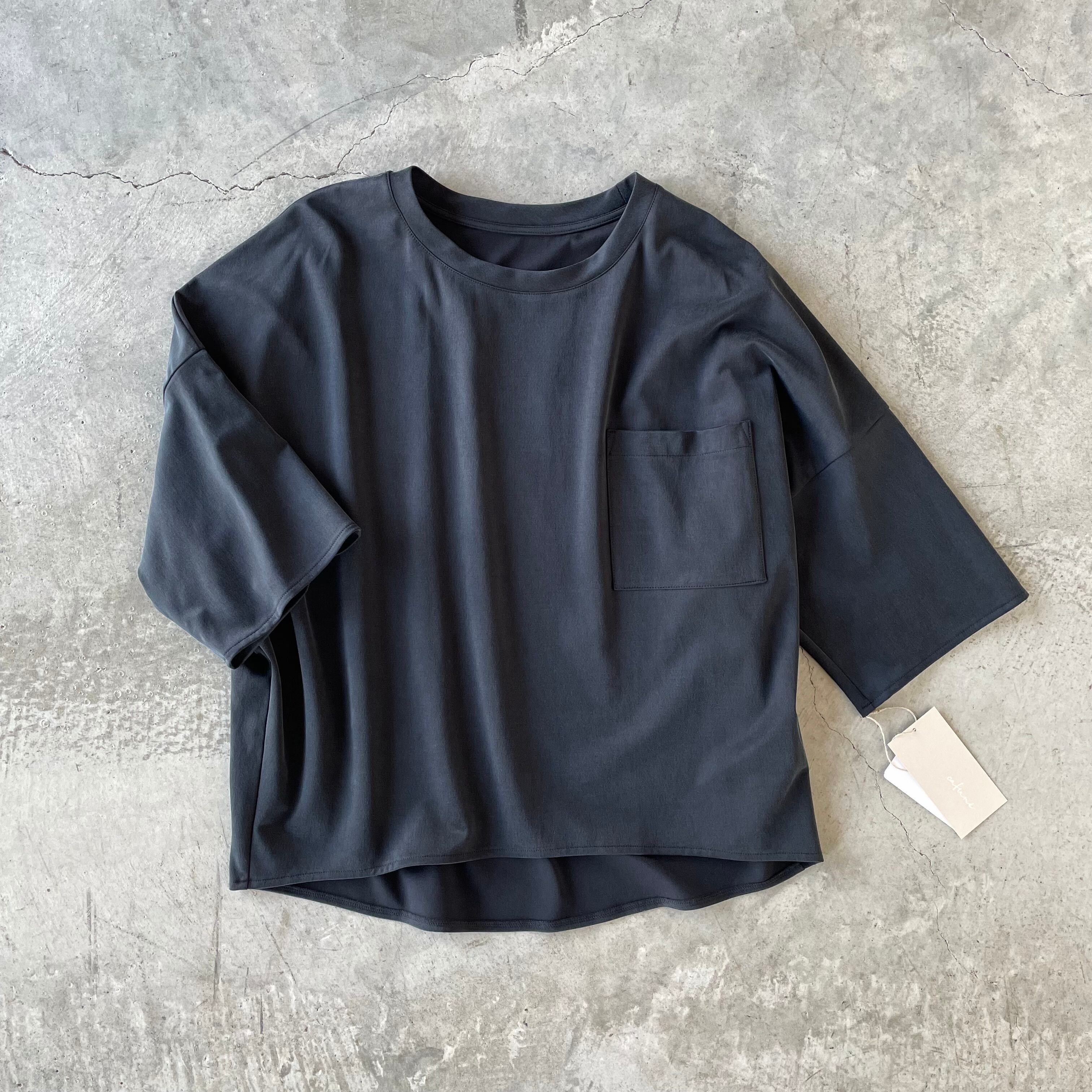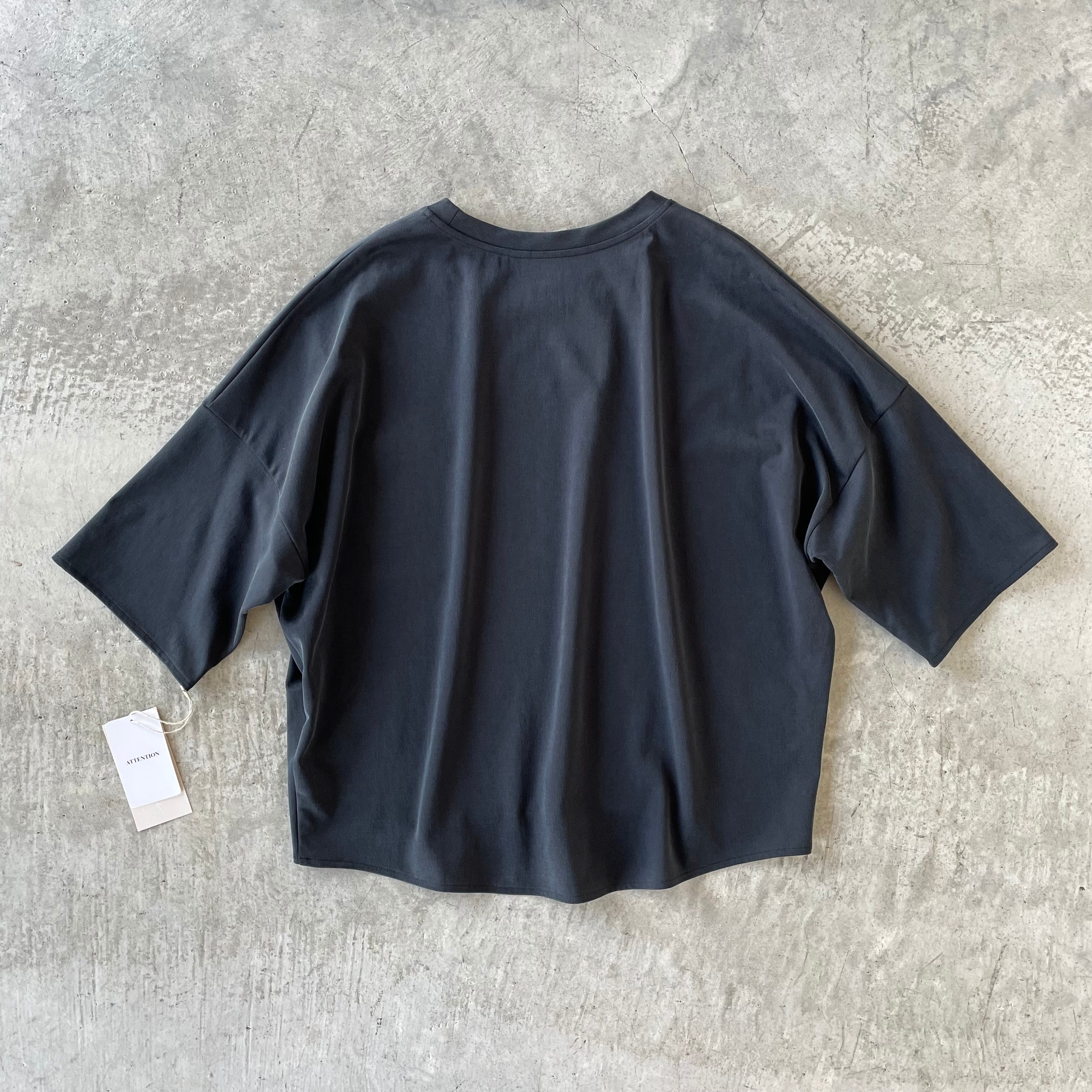 キュプラジャージーにフィブリル加工施してヴィンテージサテンのような生地感に仕上げた、しっとり質感のプルオーバートップス。