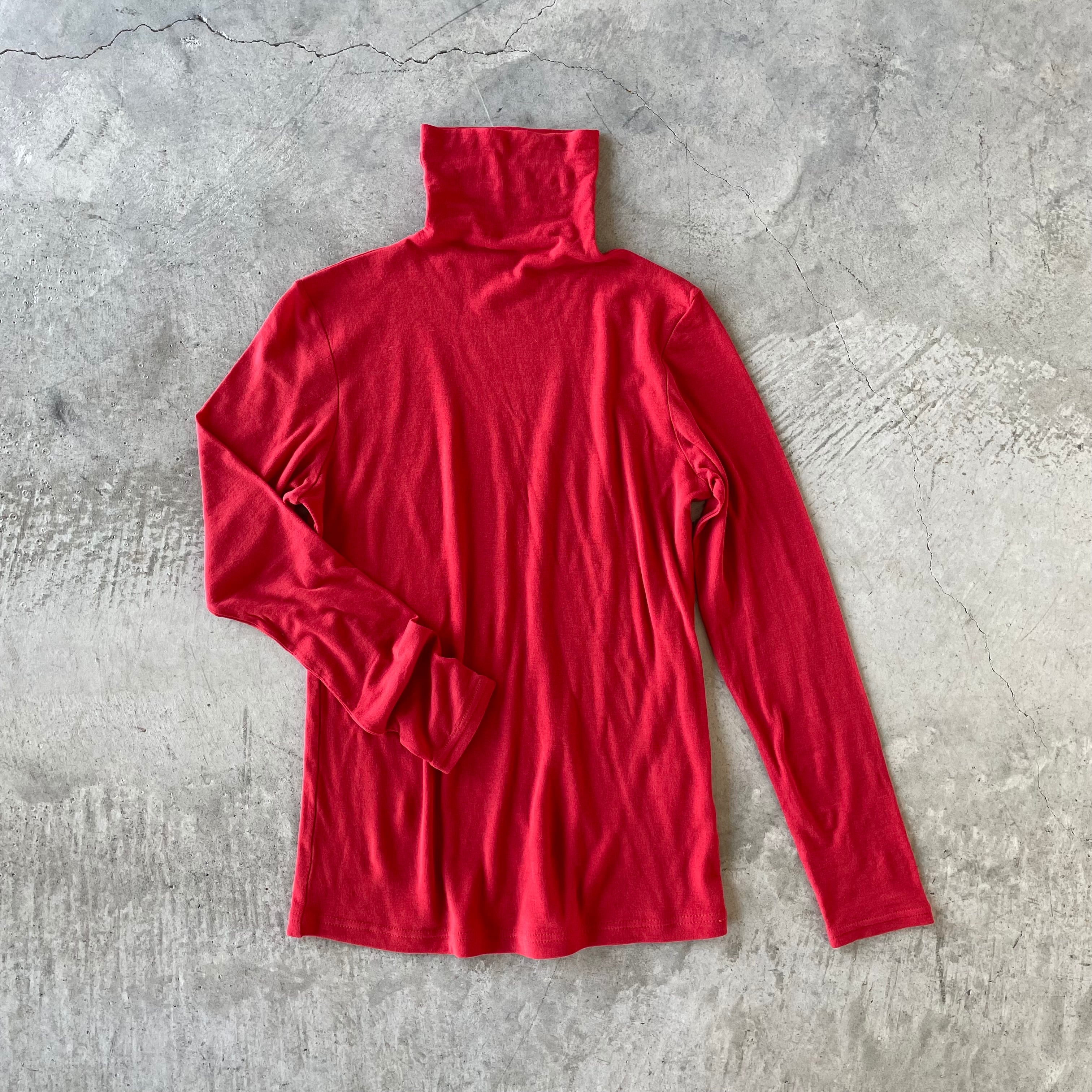 "赤"で魅せる!いつものコーデにピリっとスパイスを♪ コットンシフォン タートルネックカットソーです。