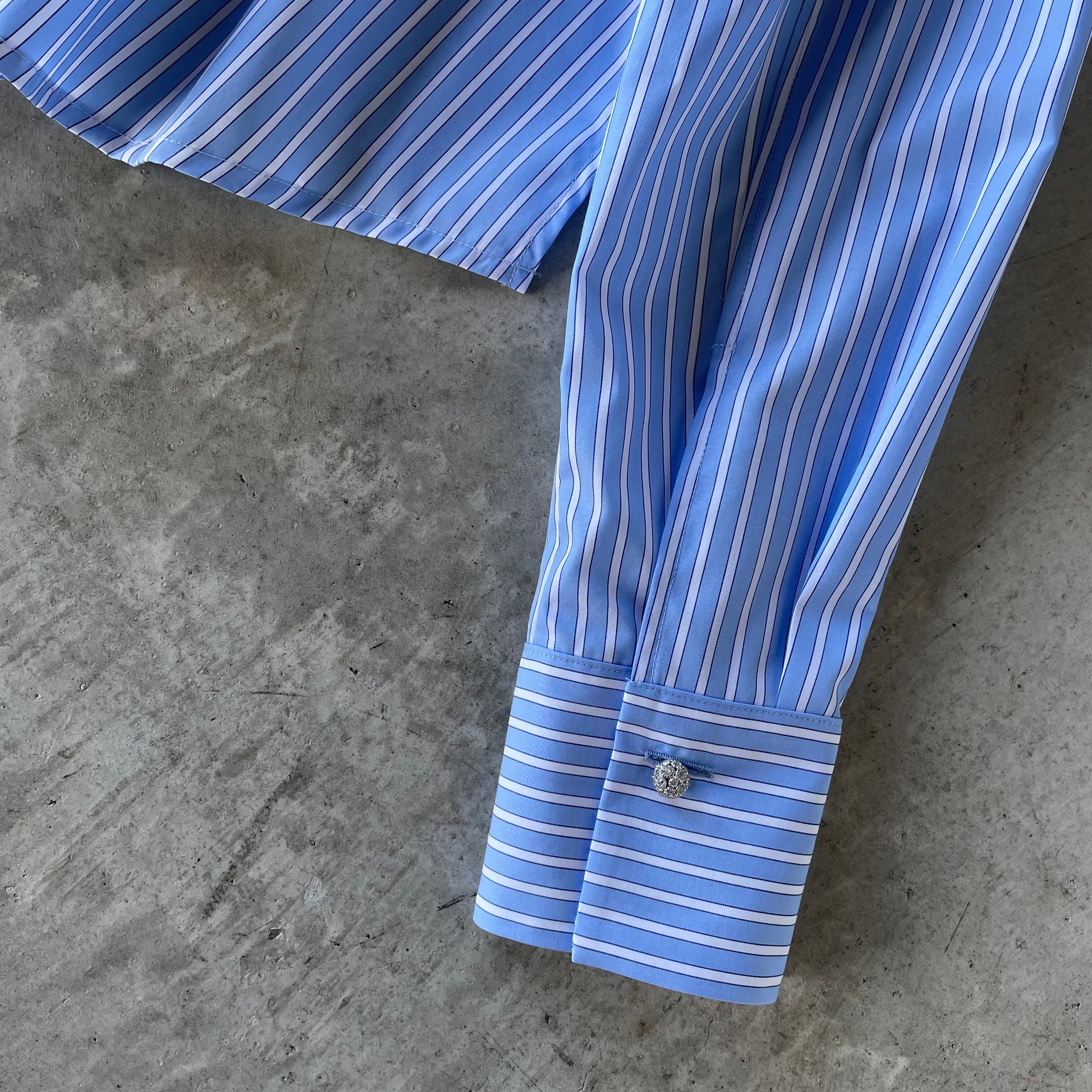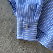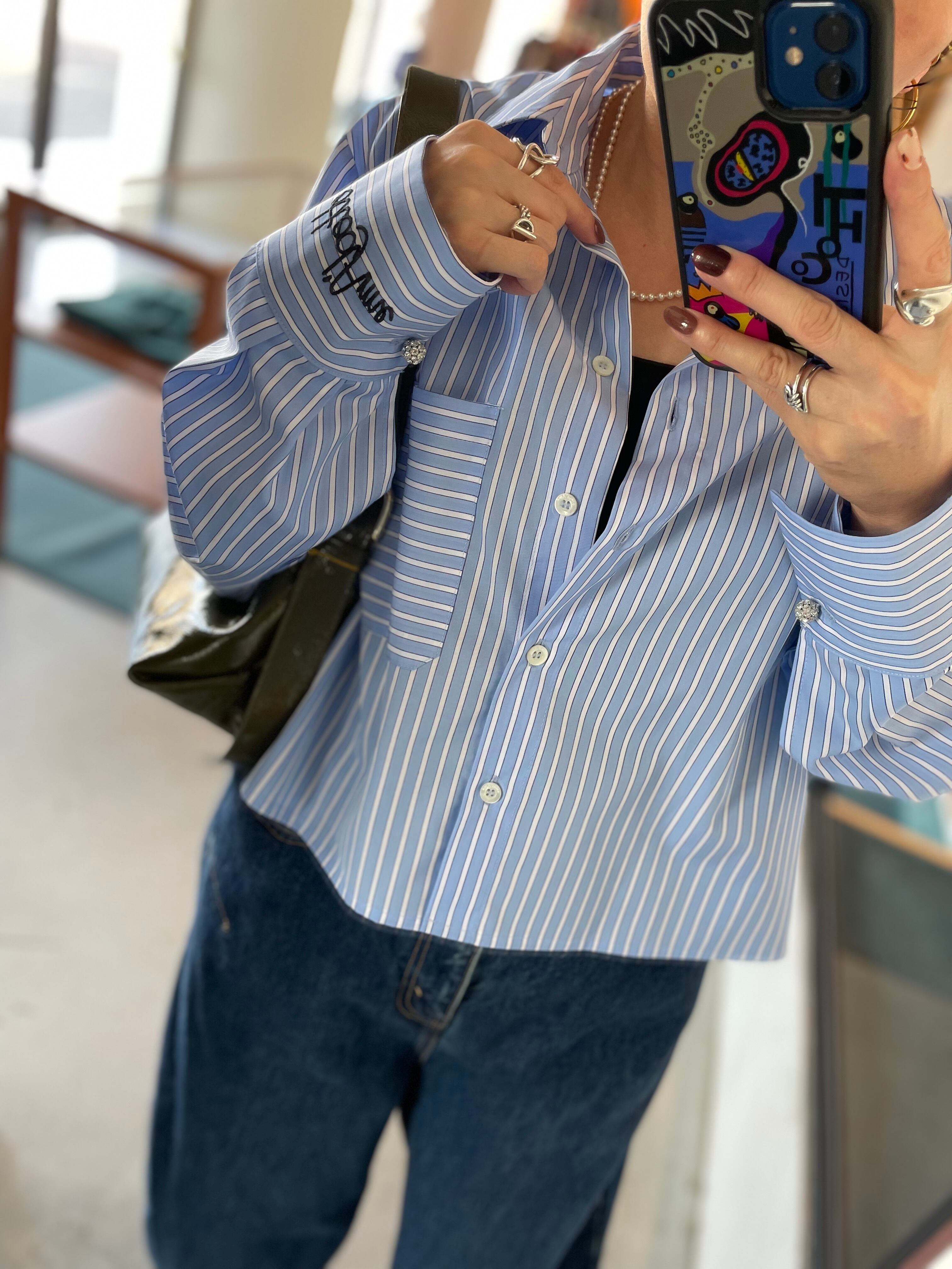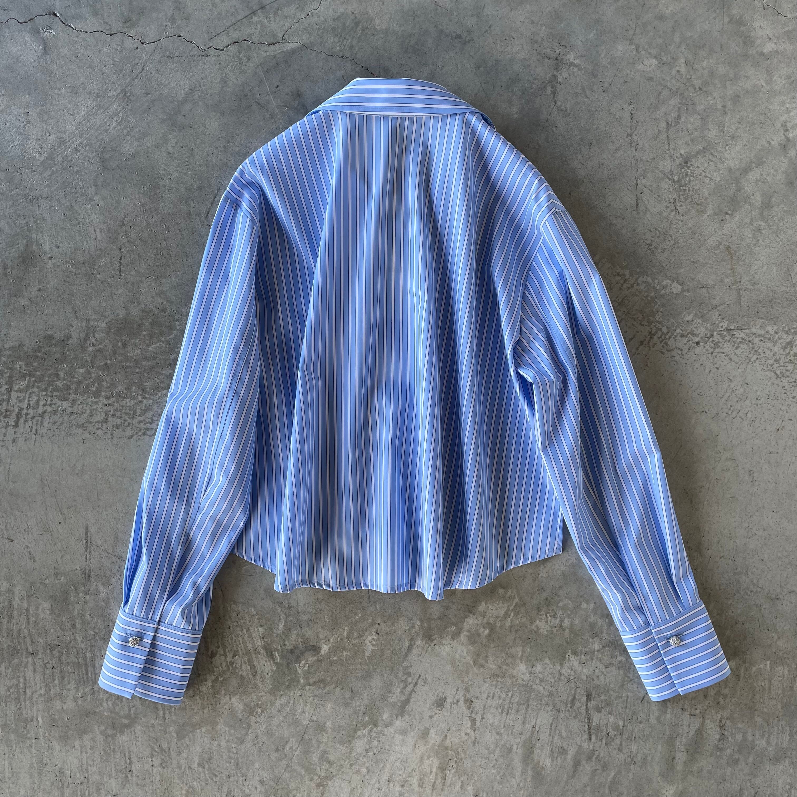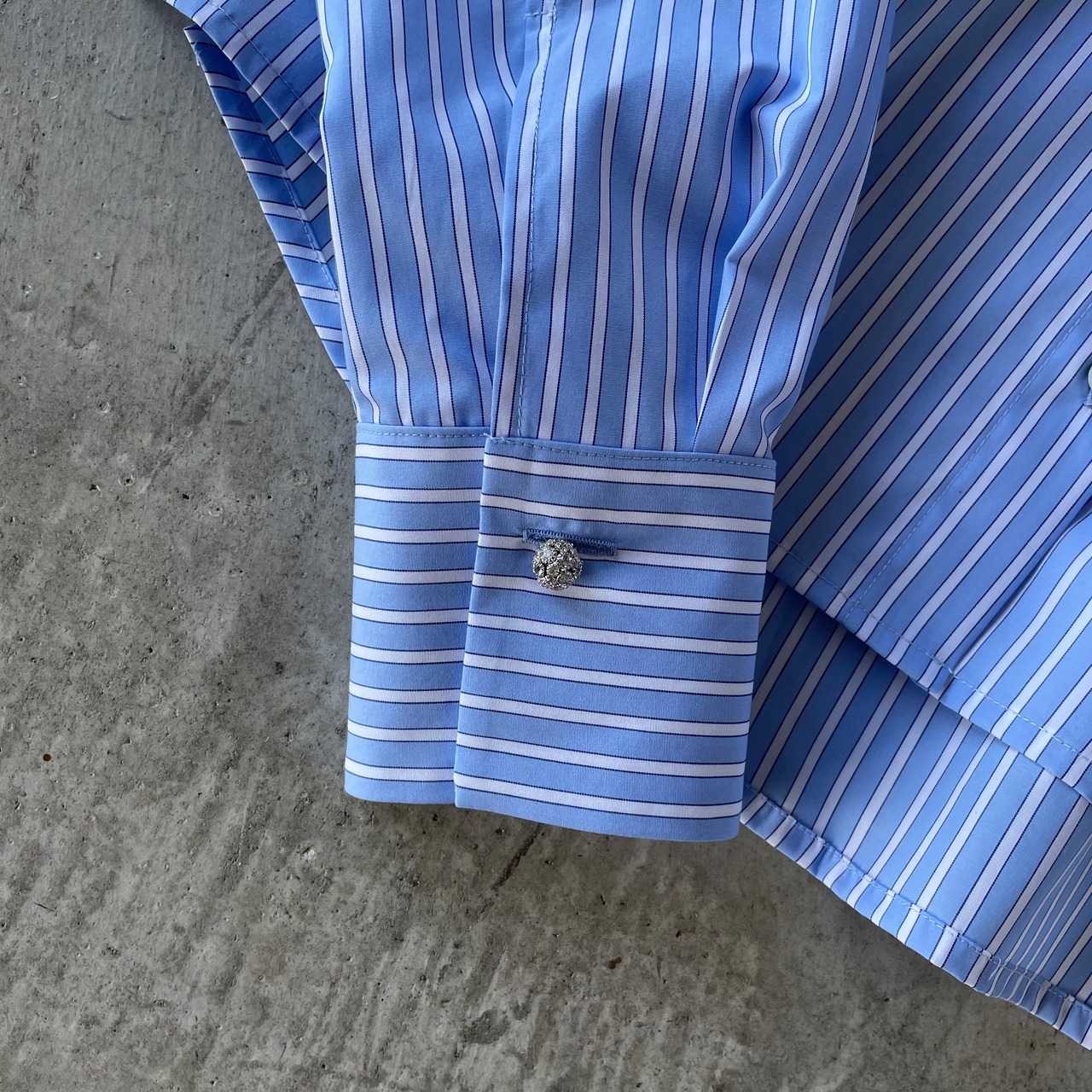 細部まで"こだわり"たっぷり♪ 袖刺繍ロゴス トライプショート丈シャツブラウス/ottod'Ame オットダム