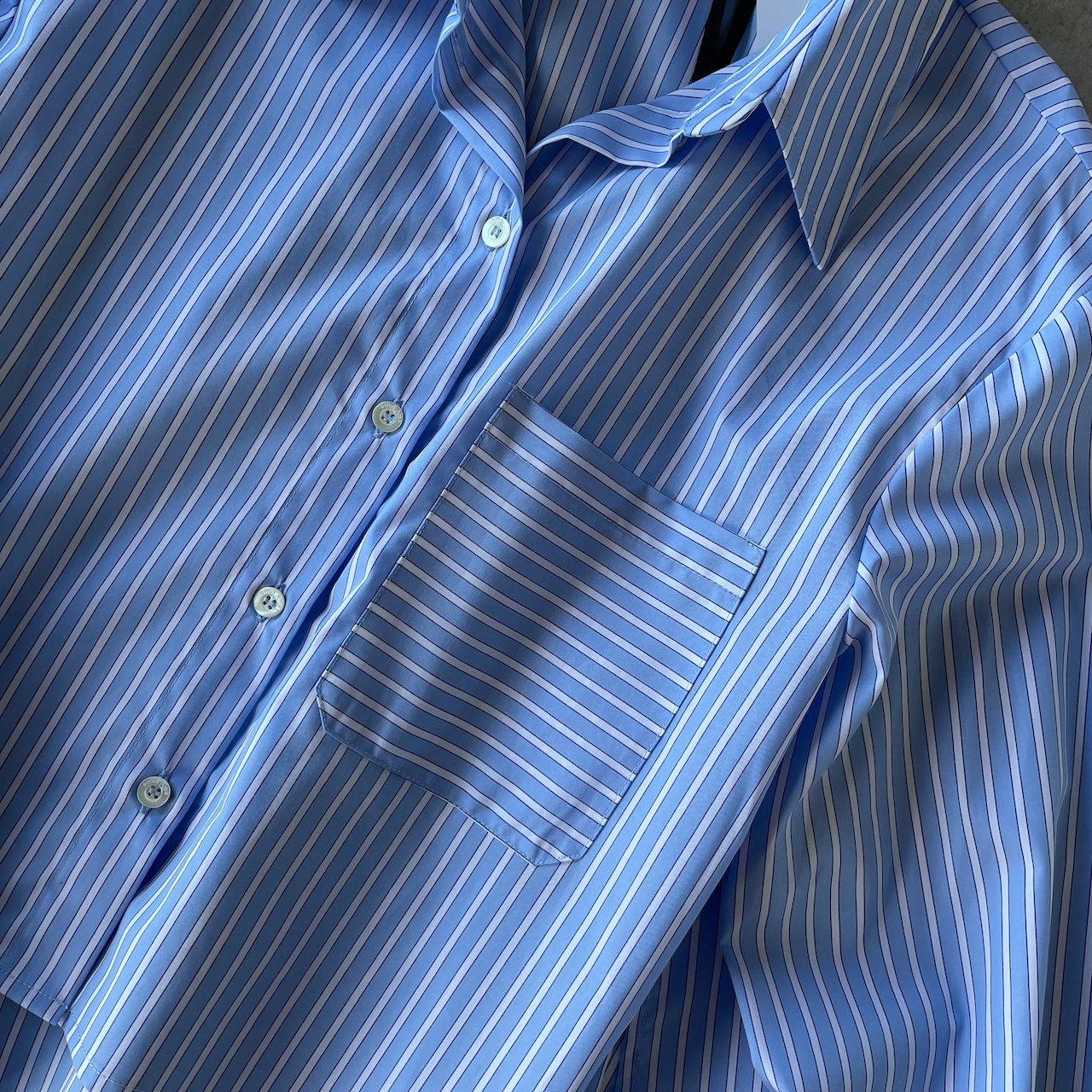 さらっとした綿素材で着心地も良く、シーズン問わず主役アイテムにオススメな、ストライプシャツブラウスです。