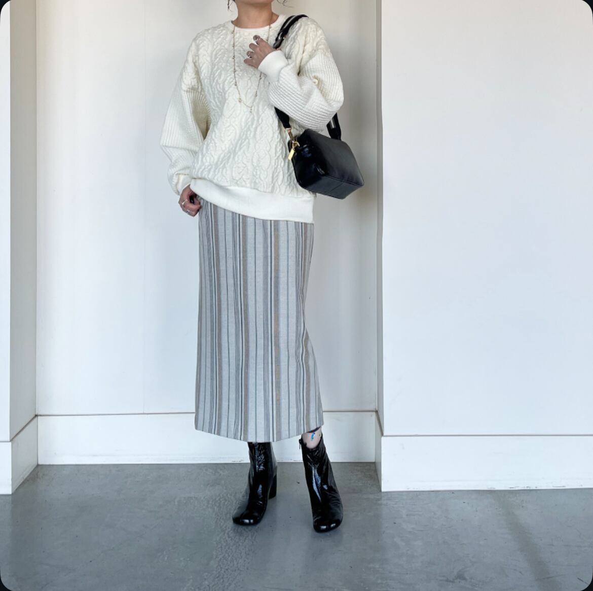 キレイめパンツにパンプスを合わせた上品なカジュアルスタイルや、タイトスカートにブーツのキレイめなスタイリングにも活用いただけます。