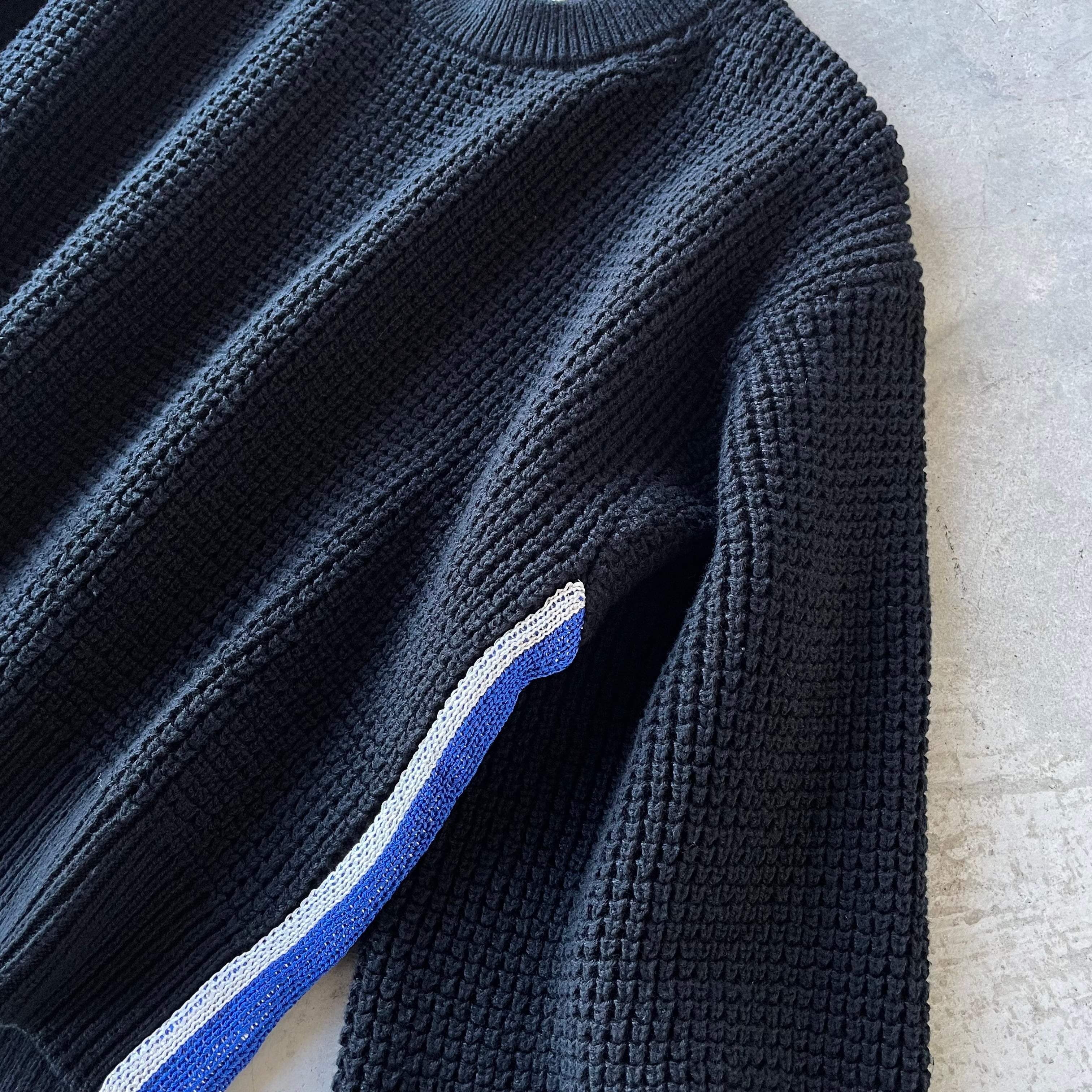 サイドの"ライン"使いがコーディネートのアクセントに♪ コットンニット ショート丈プルオーバーです。