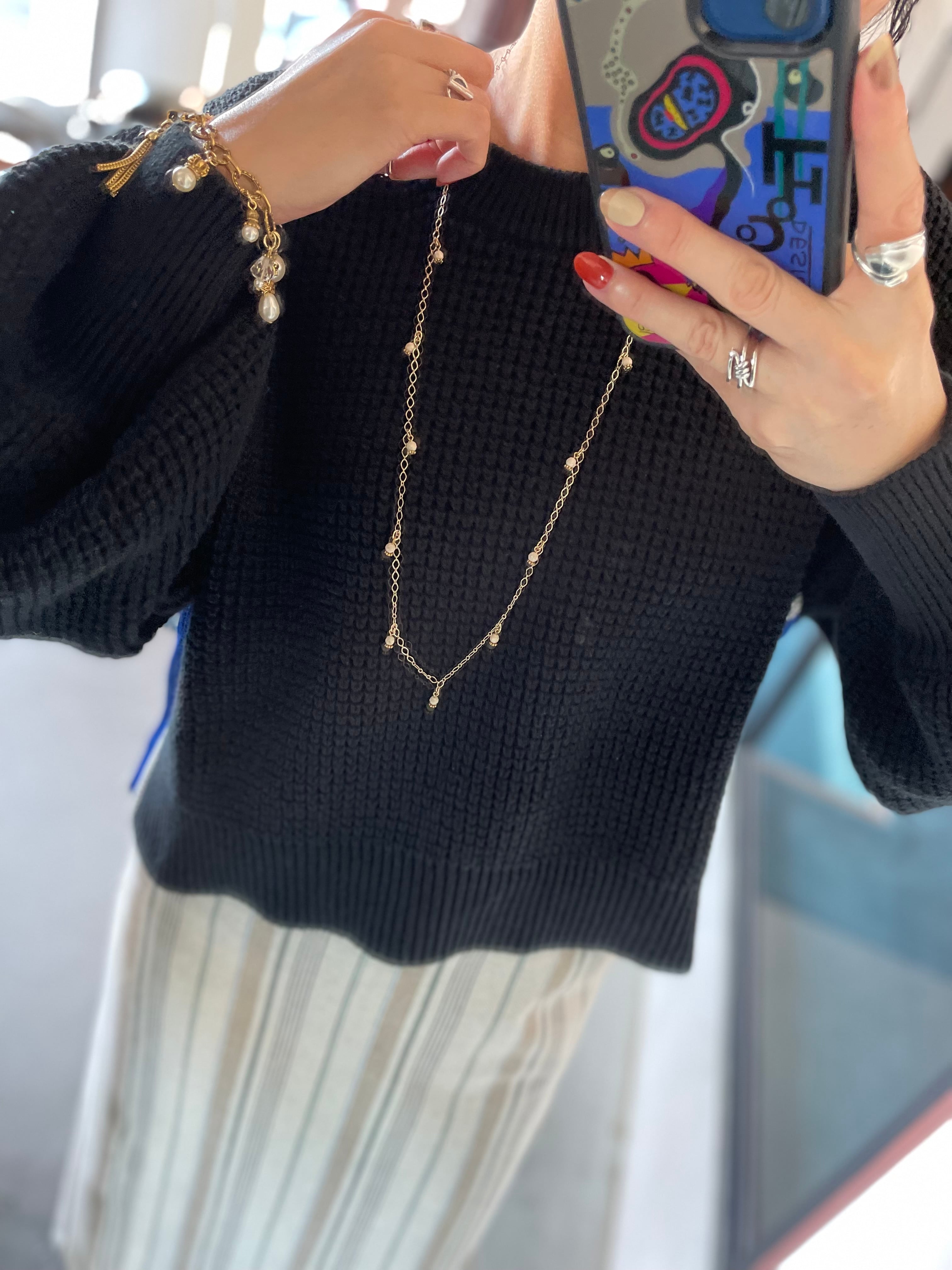 サイドの"ライン"使いがコーディネートのアクセントに♪ コットンニット ショート丈プルオーバー/LILY LYNQUE リリーリーン | いつでも輝いていたい!そんな女性の為のセレクトショップm.sple《エムスプレ》