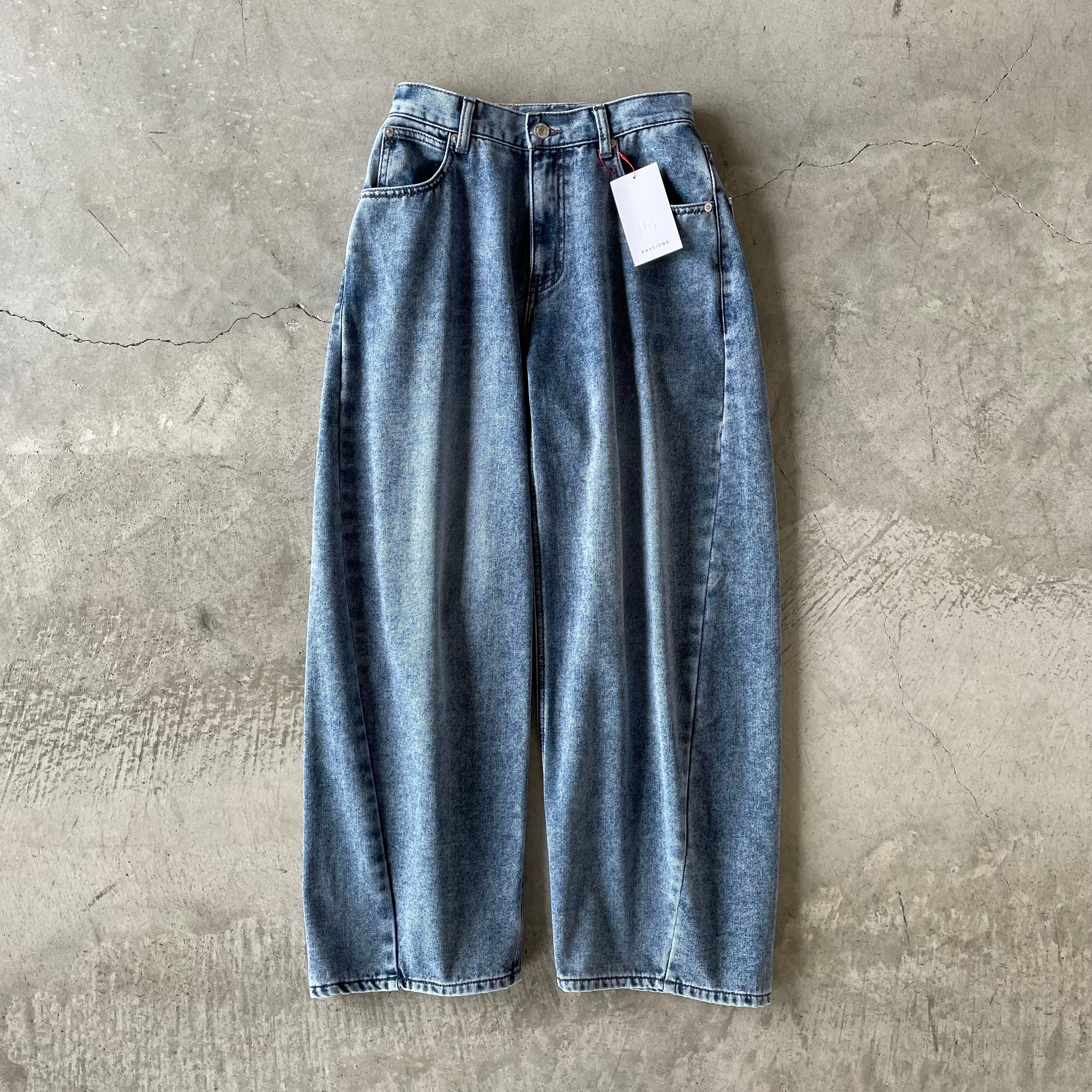 お尻周りは安心のゆったり安心のカーブデザインデニムパンツ。