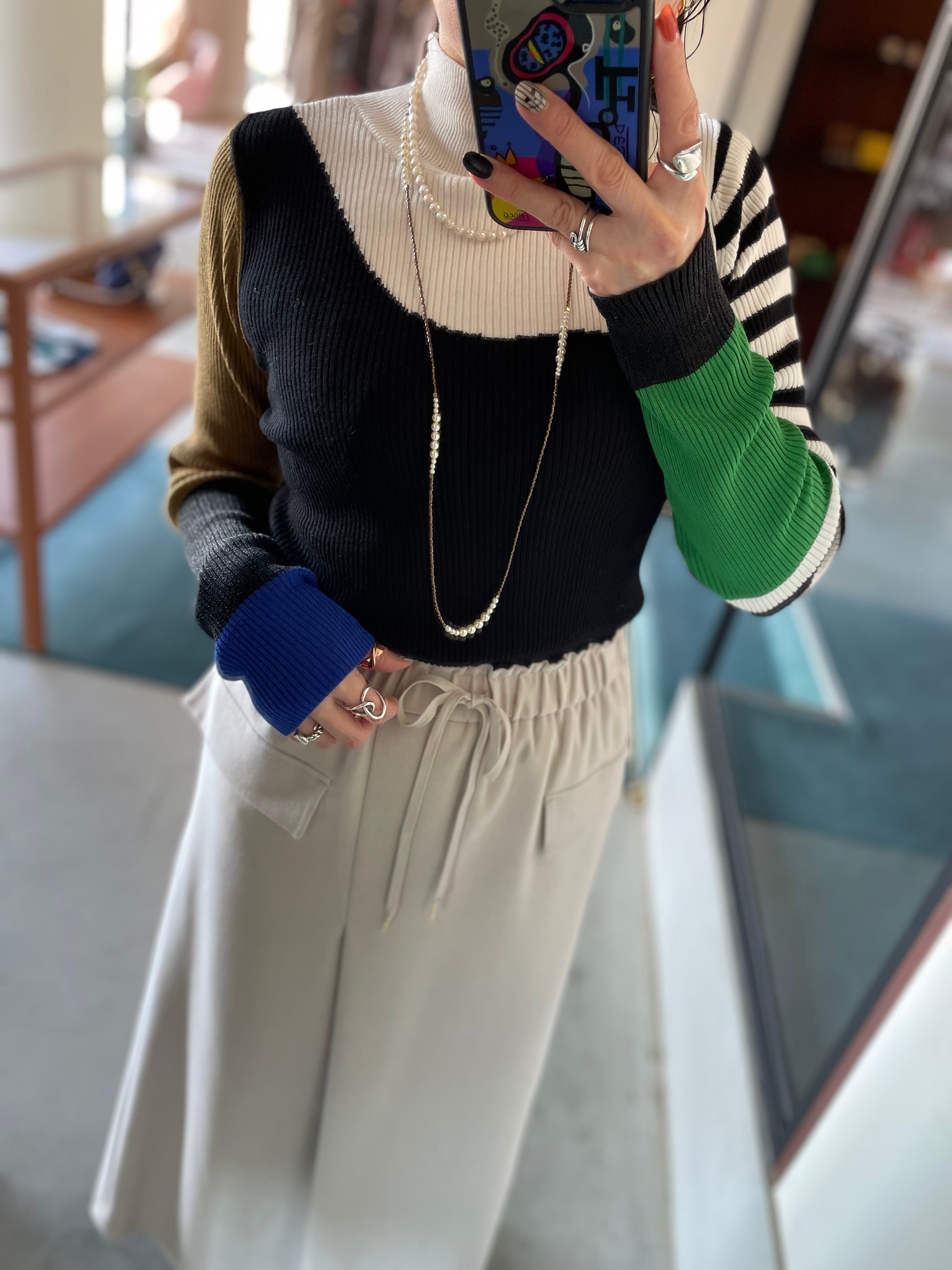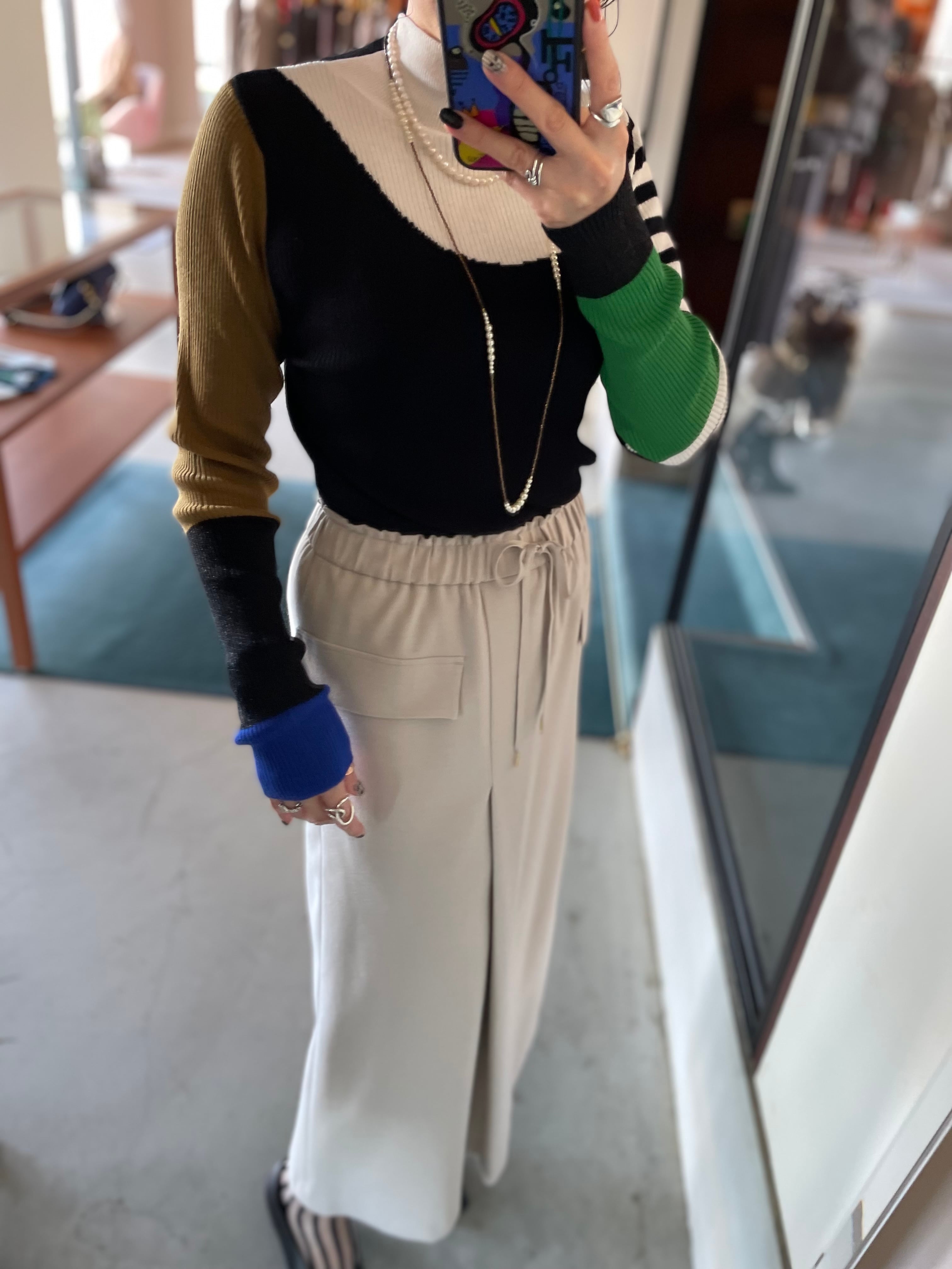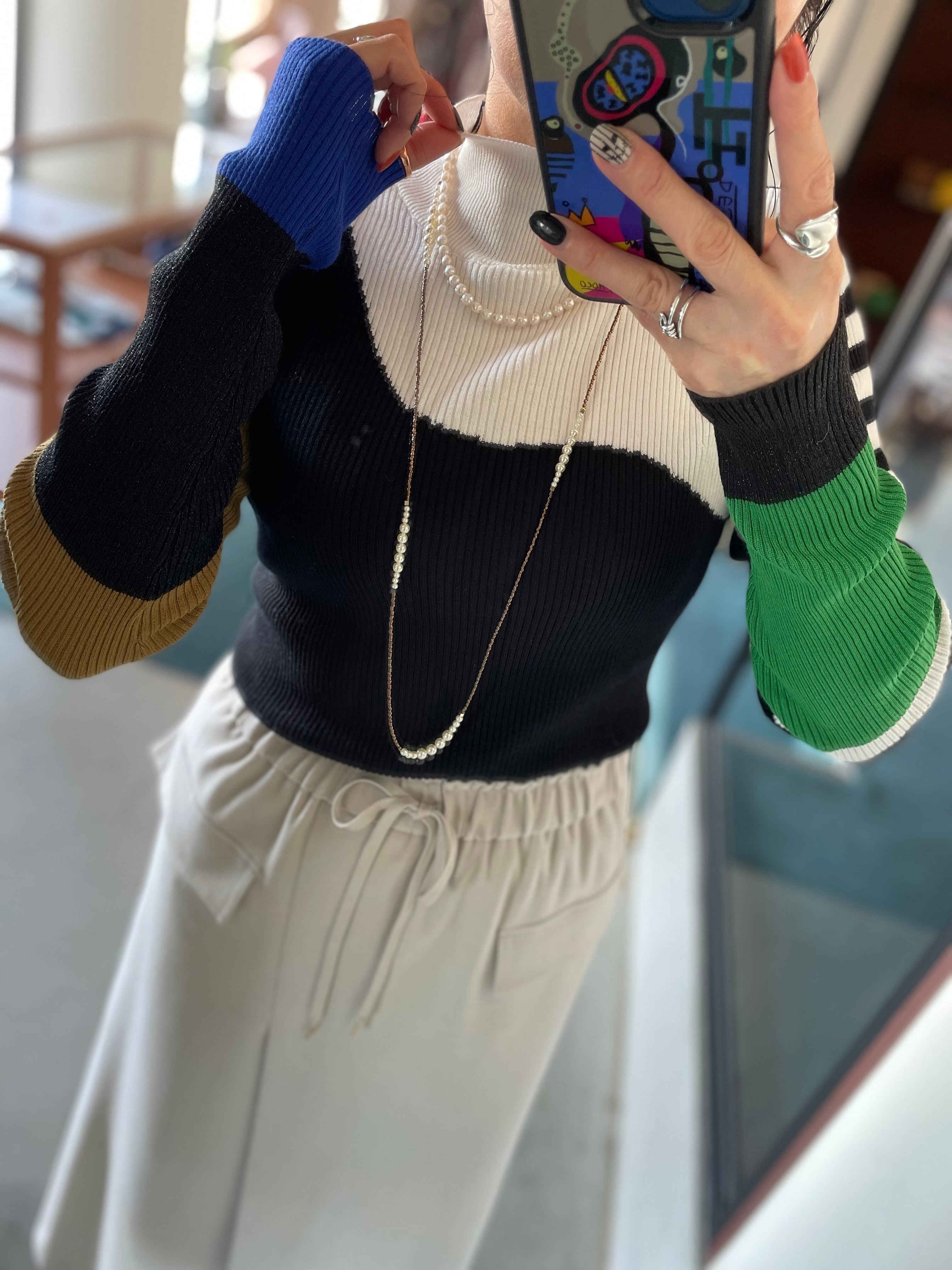 前後着用OK⭐︎バイカラー切替でコーデの幅も広がる♪バイカラープルオーバーリブニットです。