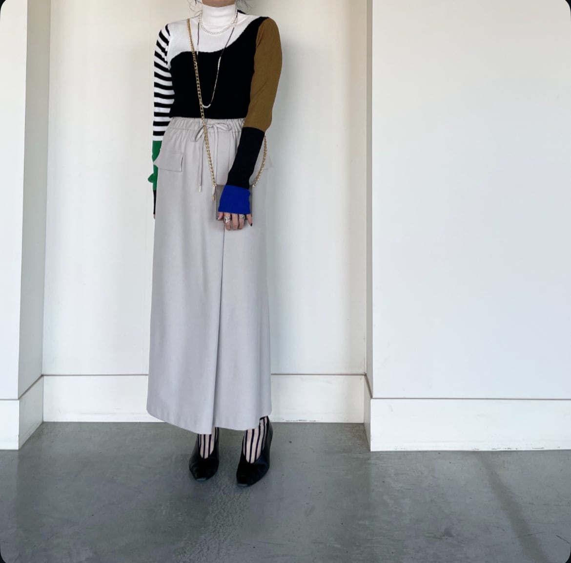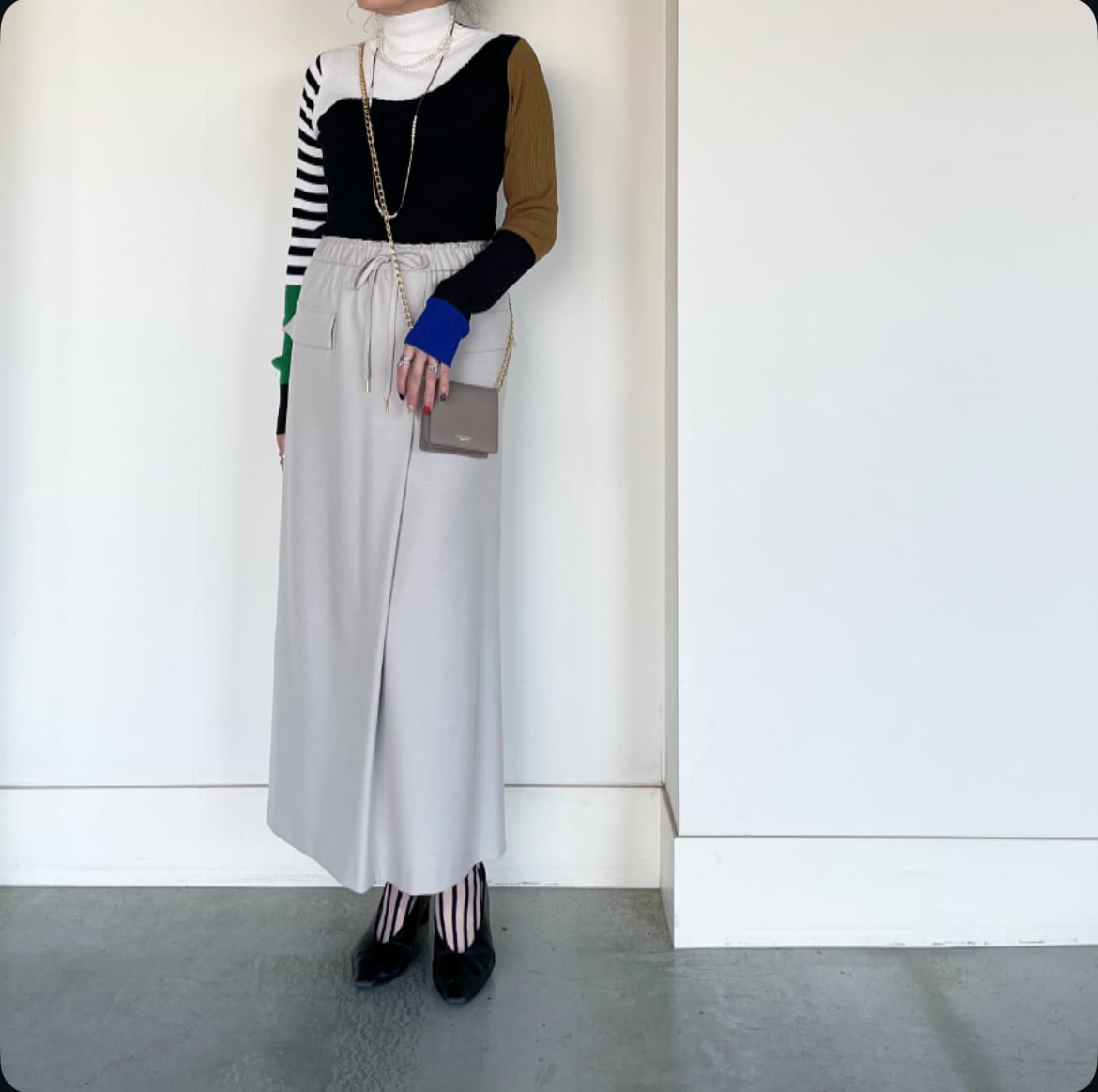 斬新なバイカラー切替で暗くなりがちな冬コーデも華やかに♪