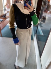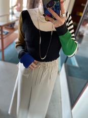 ブルゾンやベスト、ジレなどのインナーとしても重宝間違いなしなオススメニットトップスです。