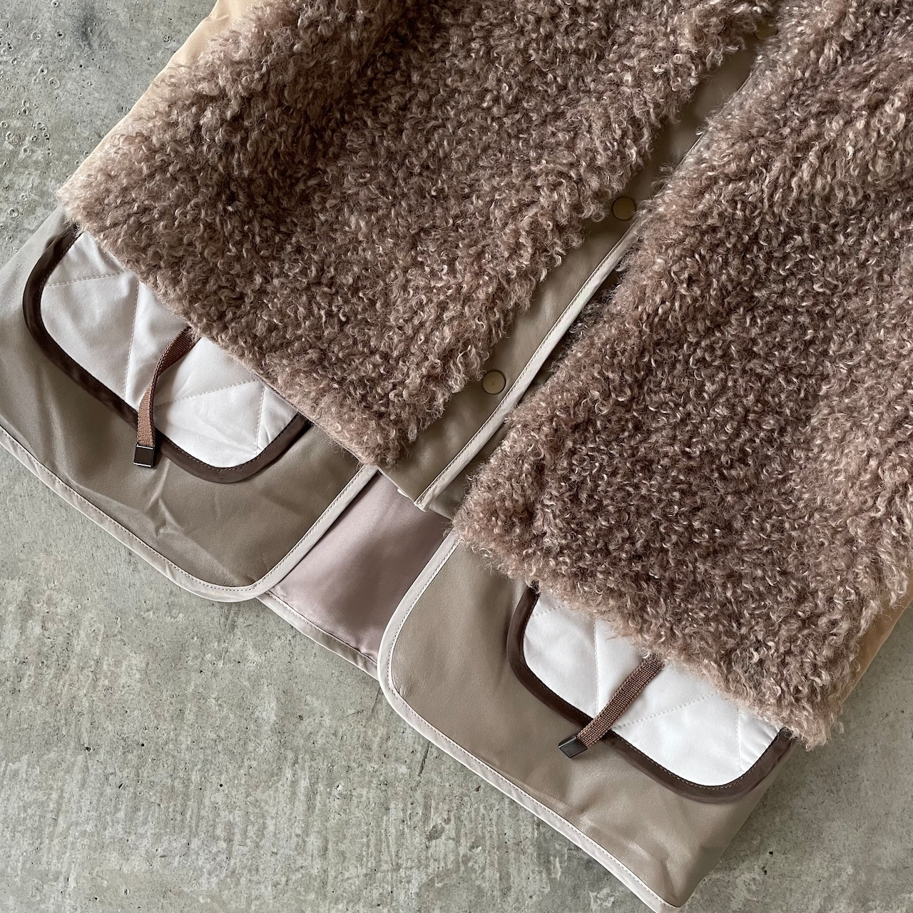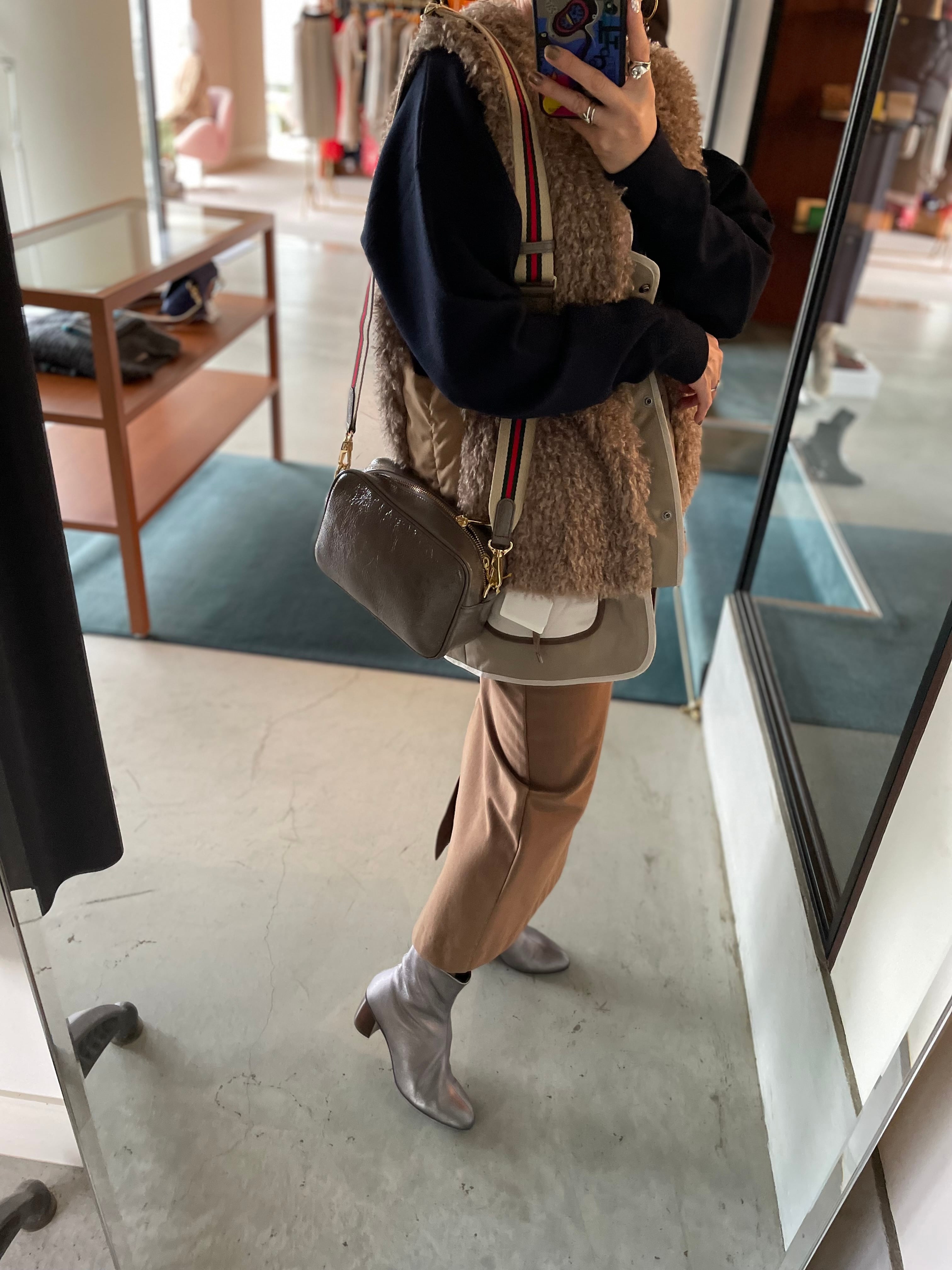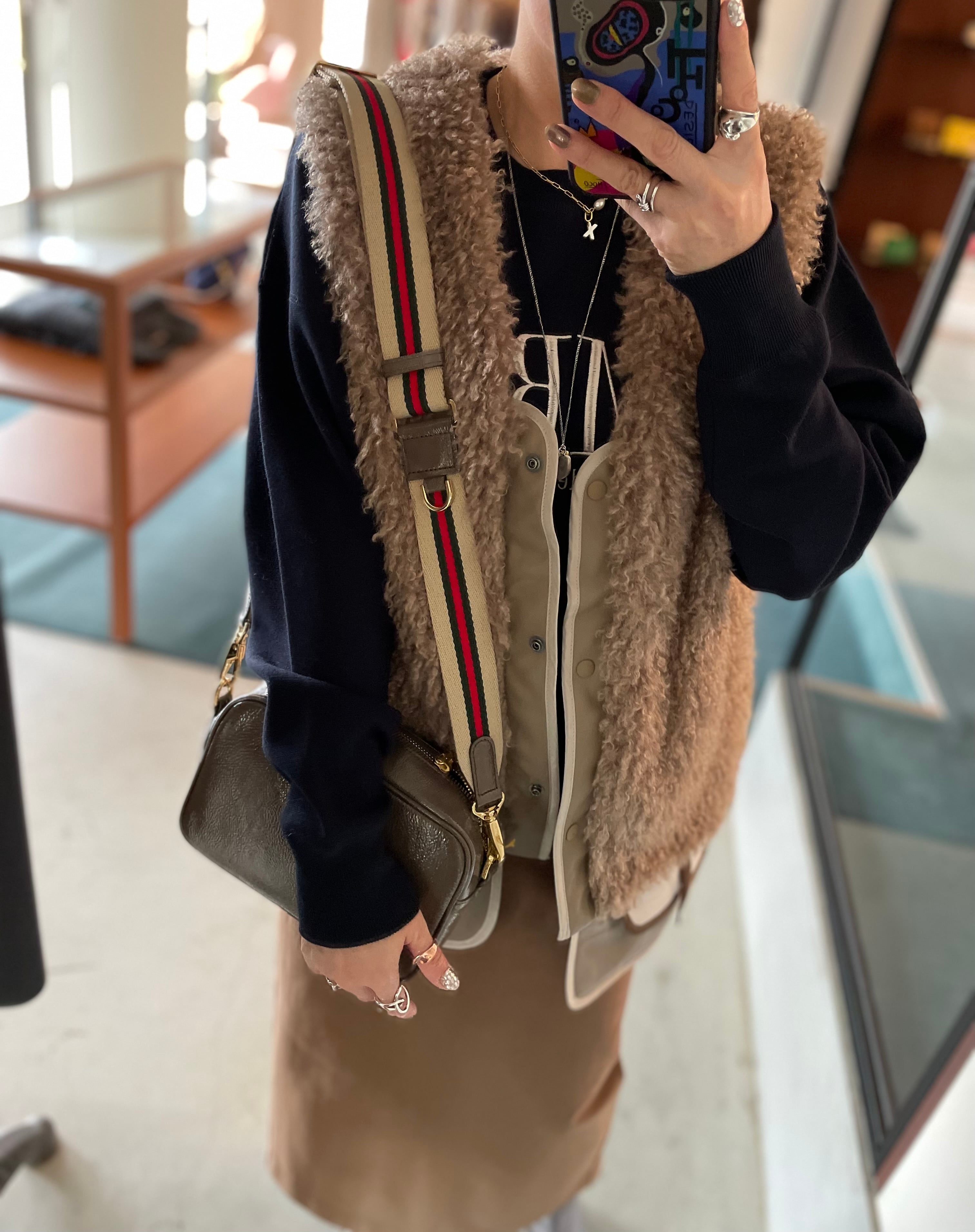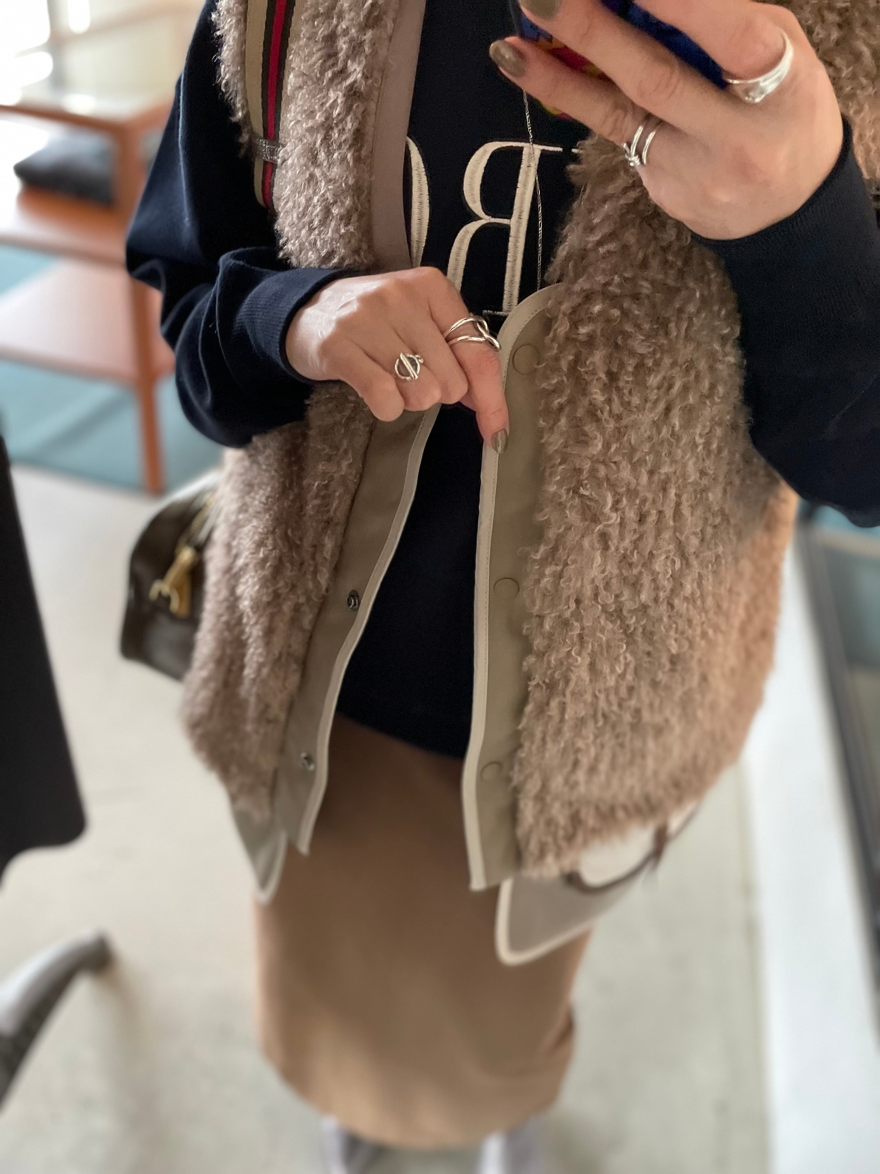 お好みでショート丈にも変身しちゃう⭐︎ふわっと軽〜い暖かさが自慢です♪ デタッチヘムエコムートンファーベストです。