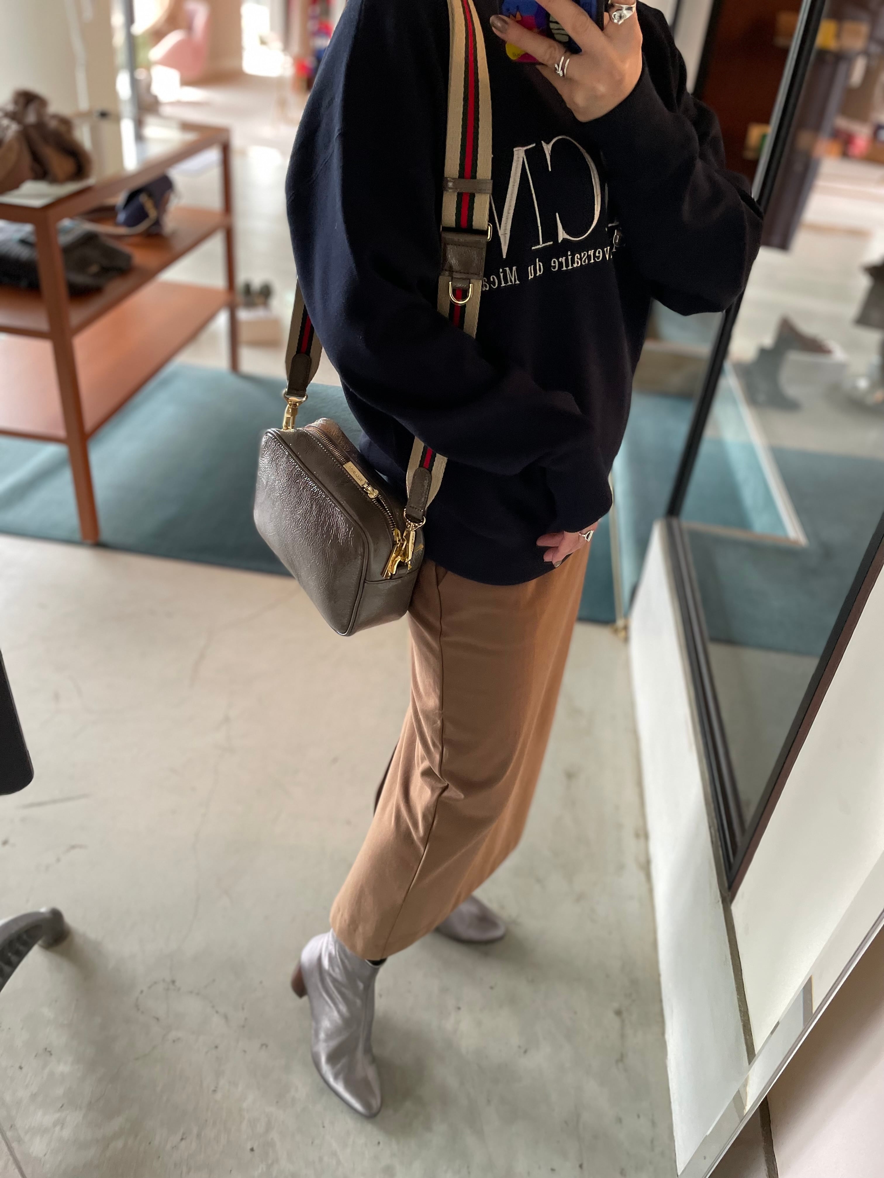 ボトムはすっきりパンツでカジュアル合わせはもちろん、タイトスカートと合わせれば→オトナカジュアルな着こなしもOK!なオススメロゴ刺繍トップスです。