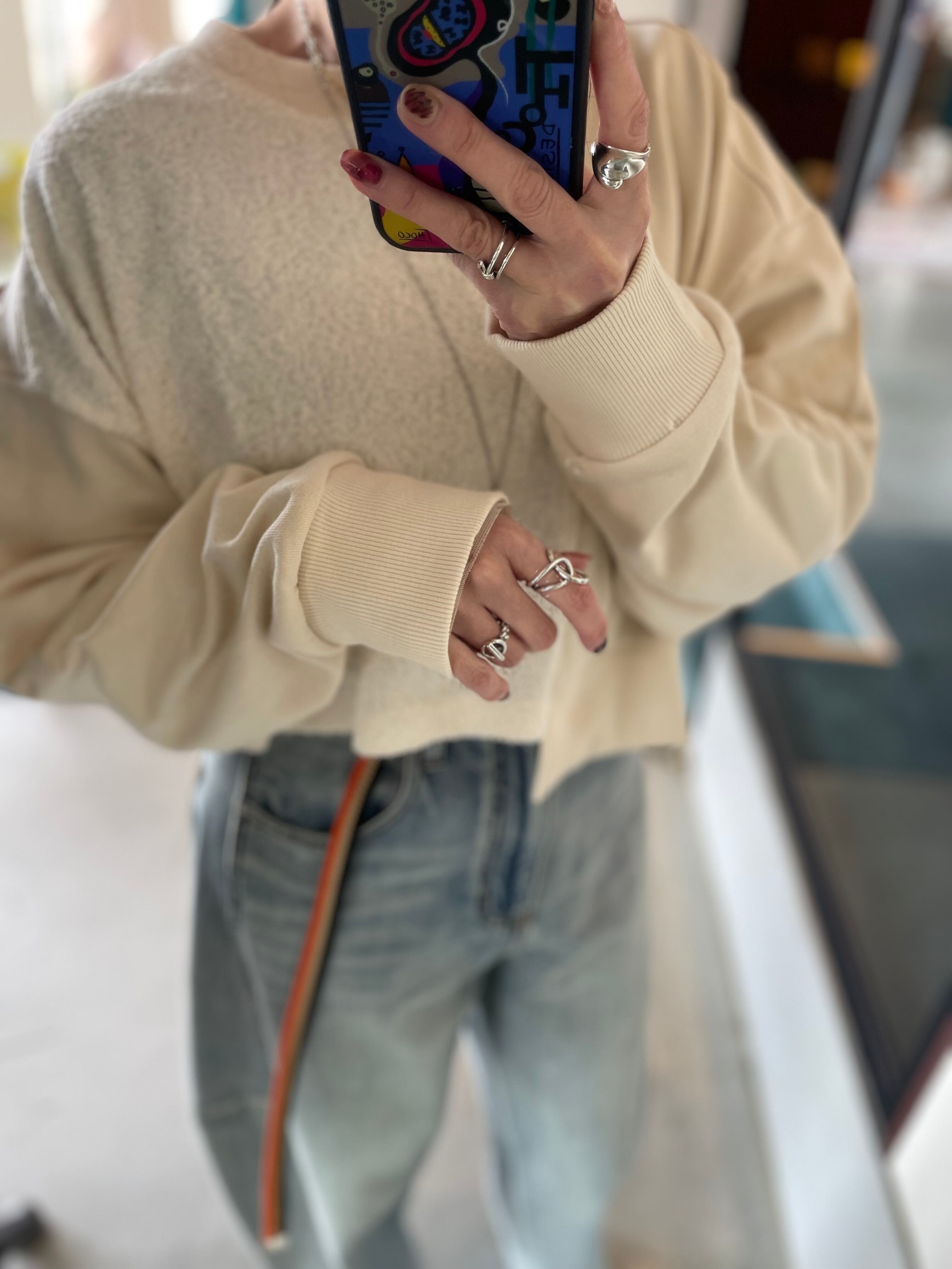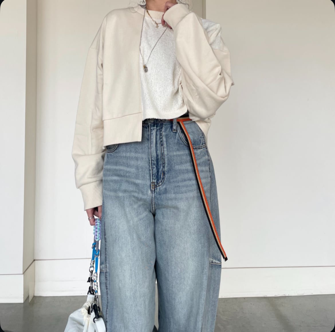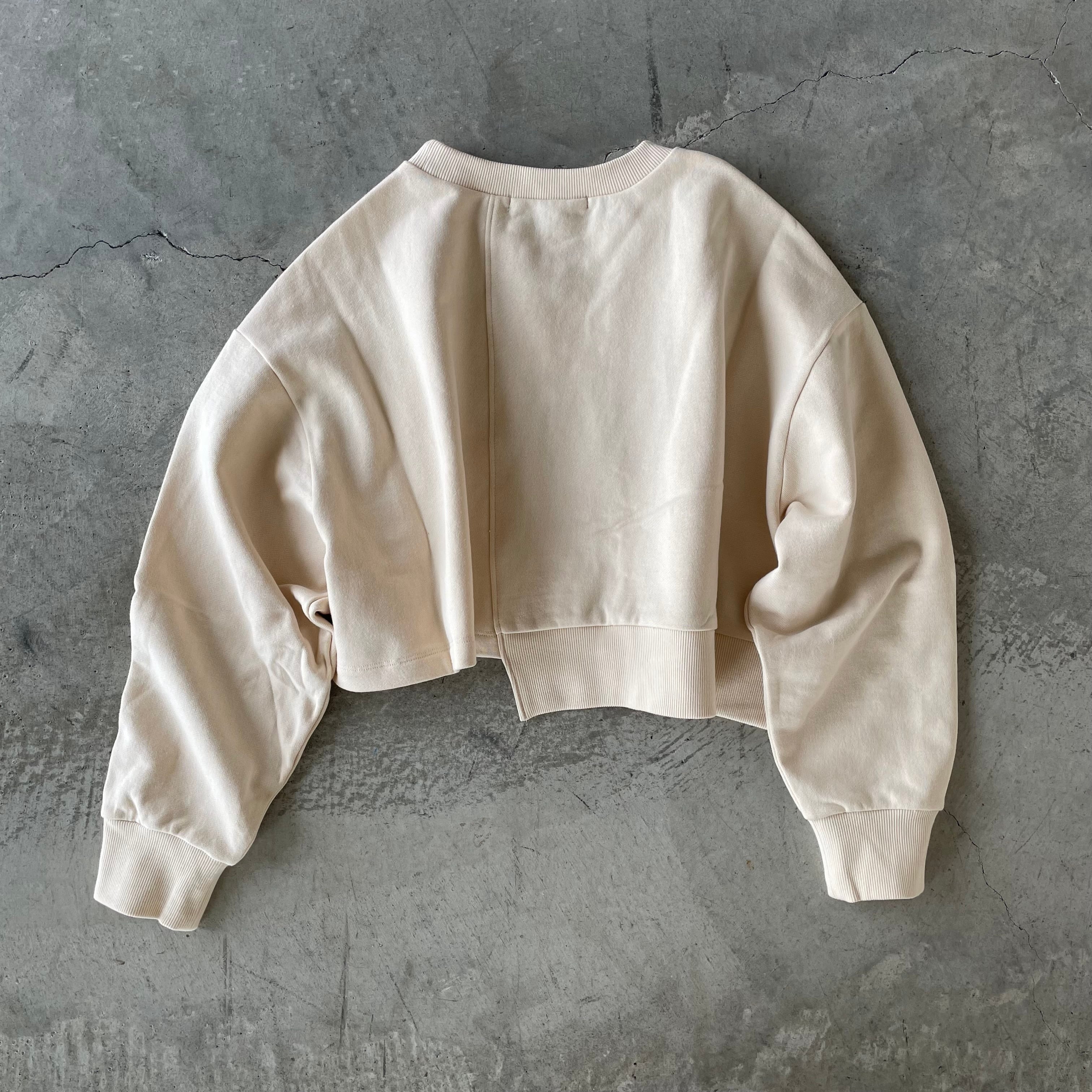レイヤードも楽しめる⭐︎アシメなショート丈が可愛い♪ 裏毛×チンチラアシンメトリースウェットです。