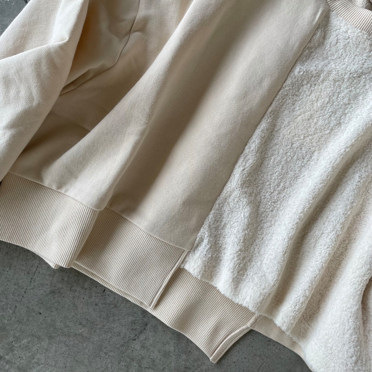 フロントの左身頃側のみ起毛感のあるフリース素材で切り替え、まだ寒い初春シーズンらしいアクセントもプラス!