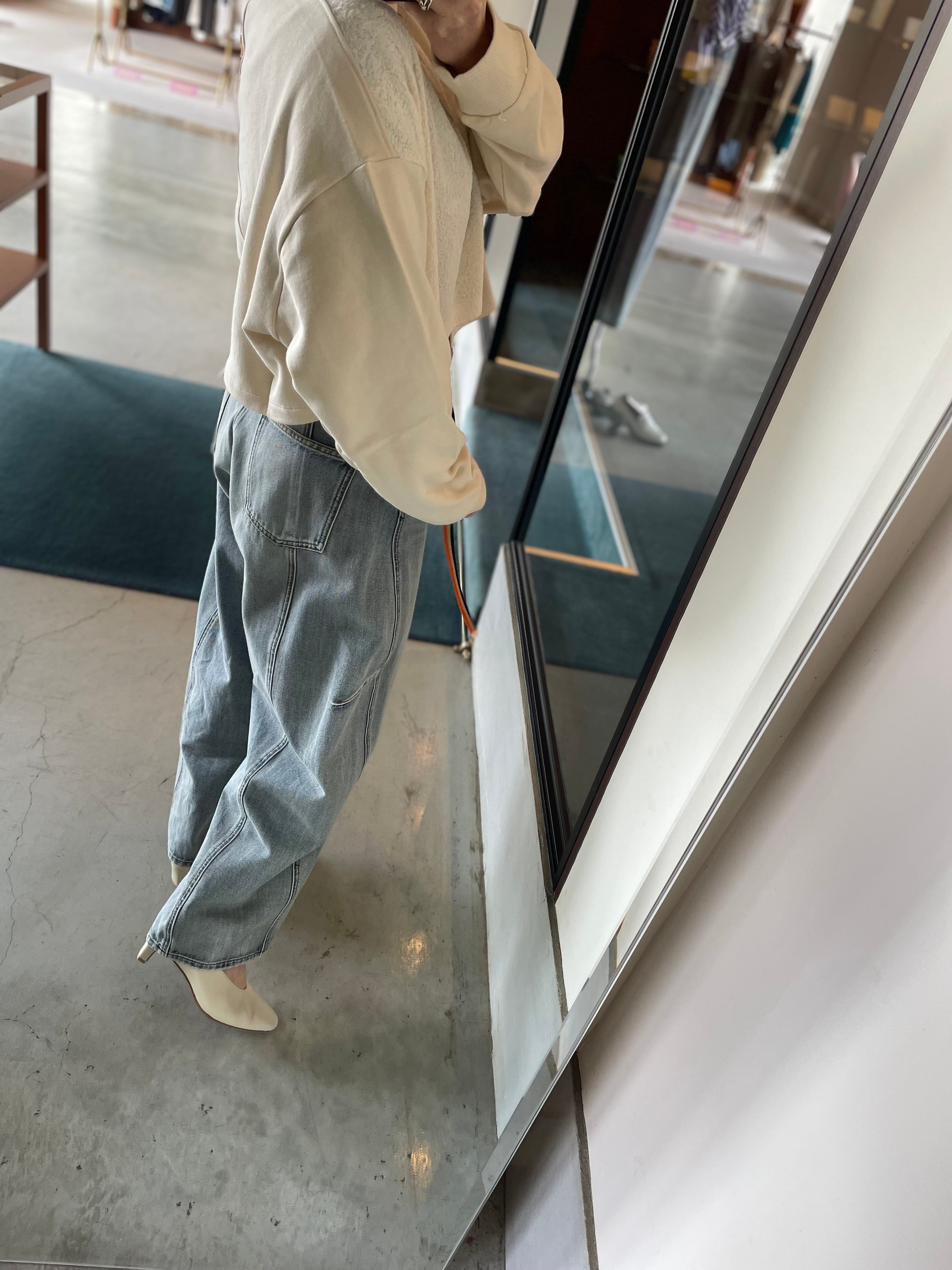 右身頃側は裾にリブ付き、左身頃側はすっきりと二つ折りでショート丈に♪