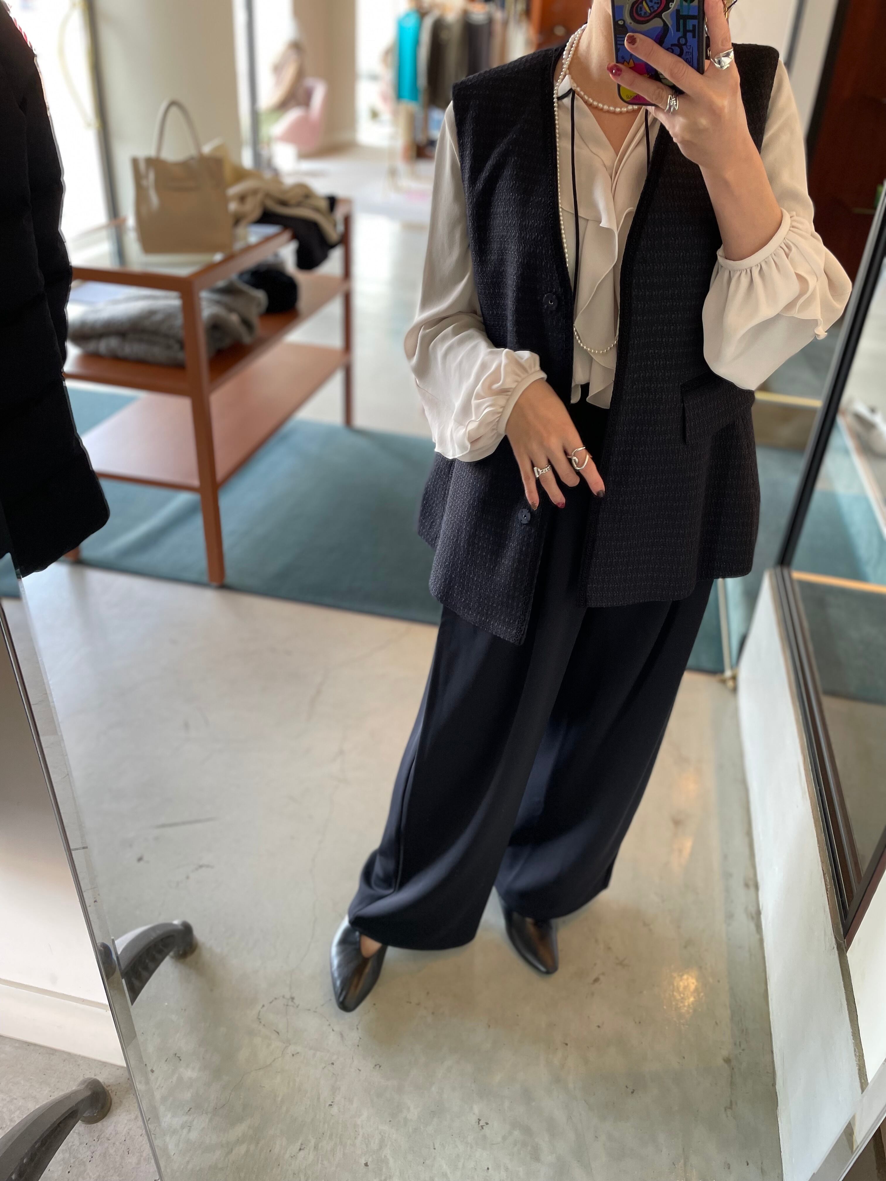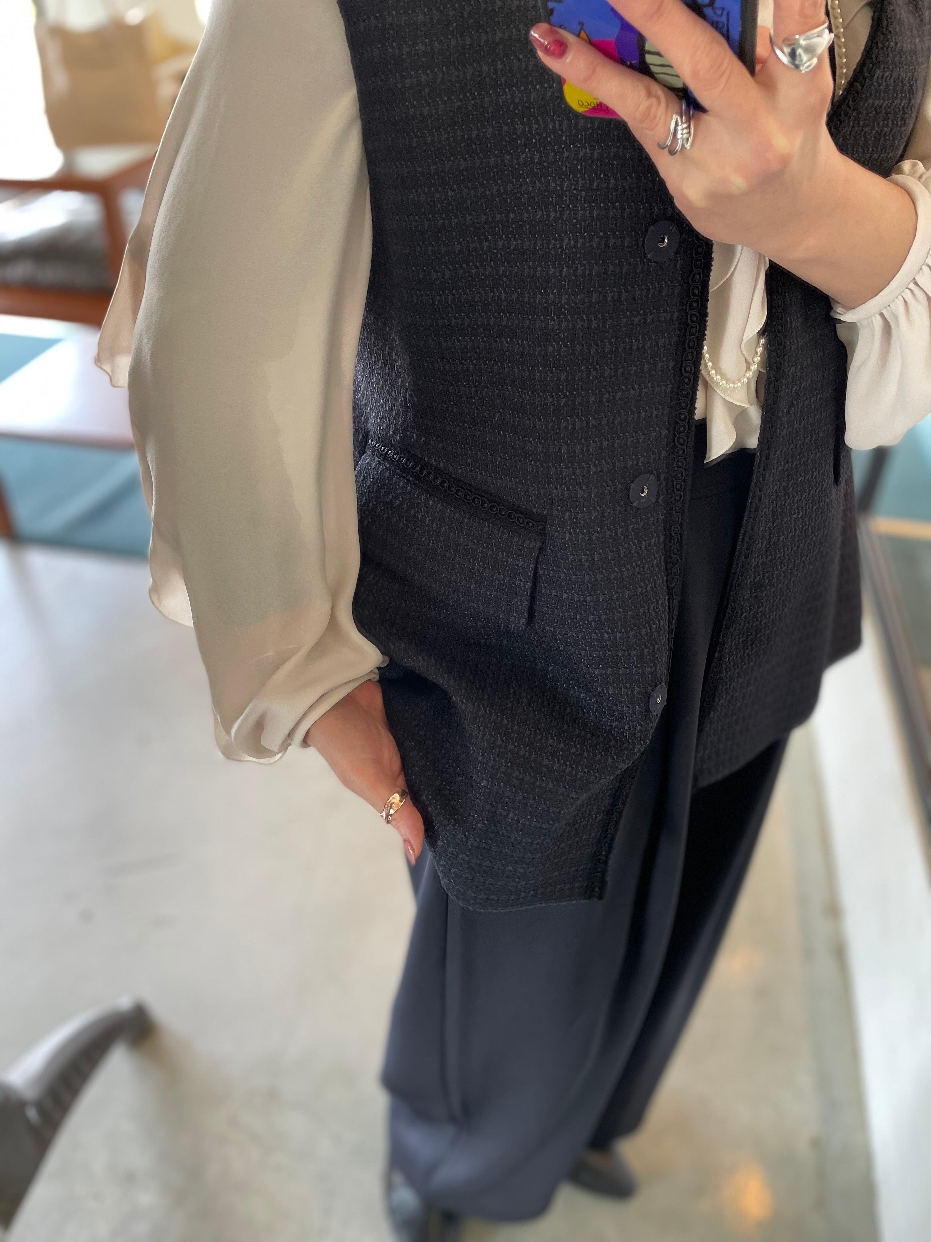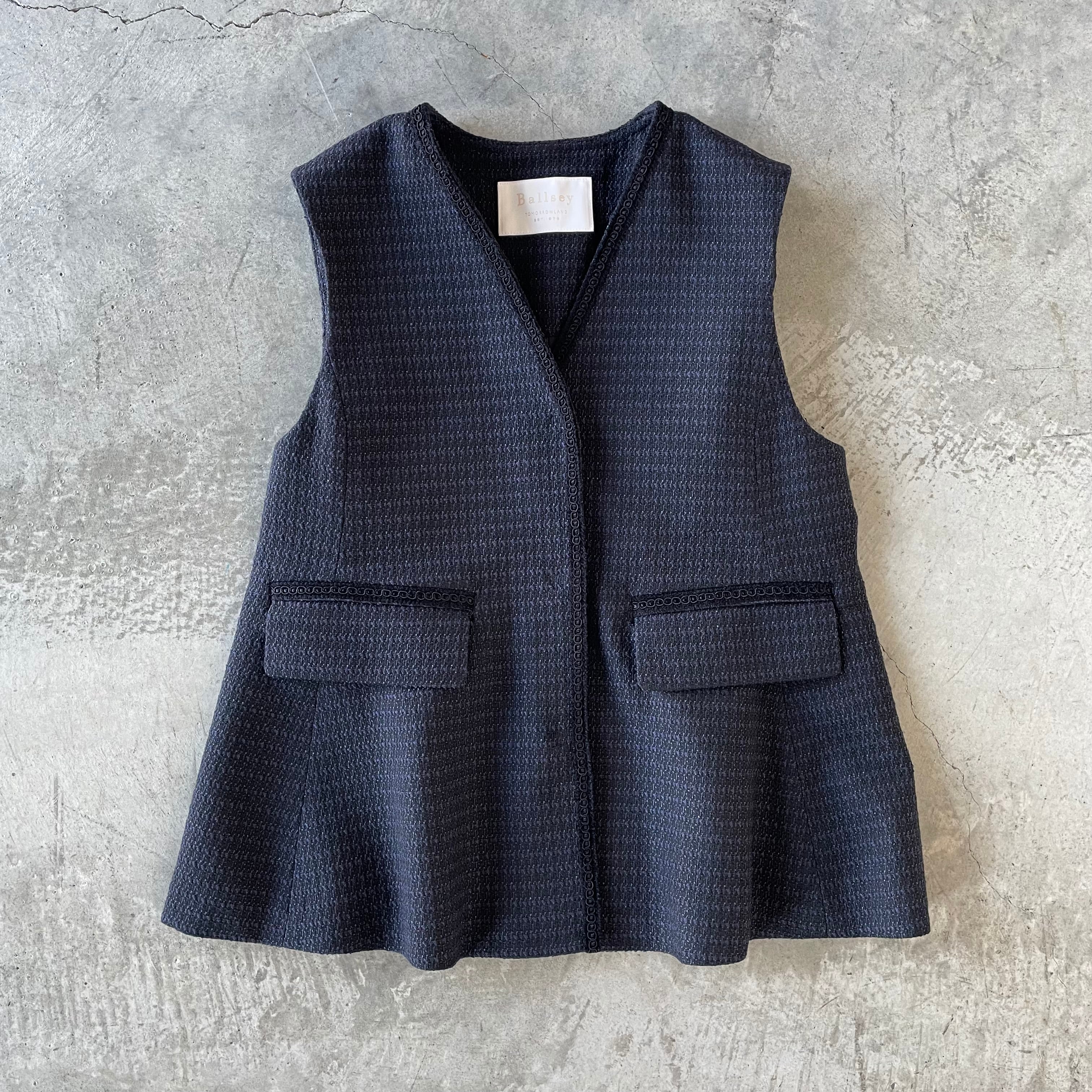 上品で高級感のあるツイード素材を使用したペプラムシルエットがキレイなジレベスト。