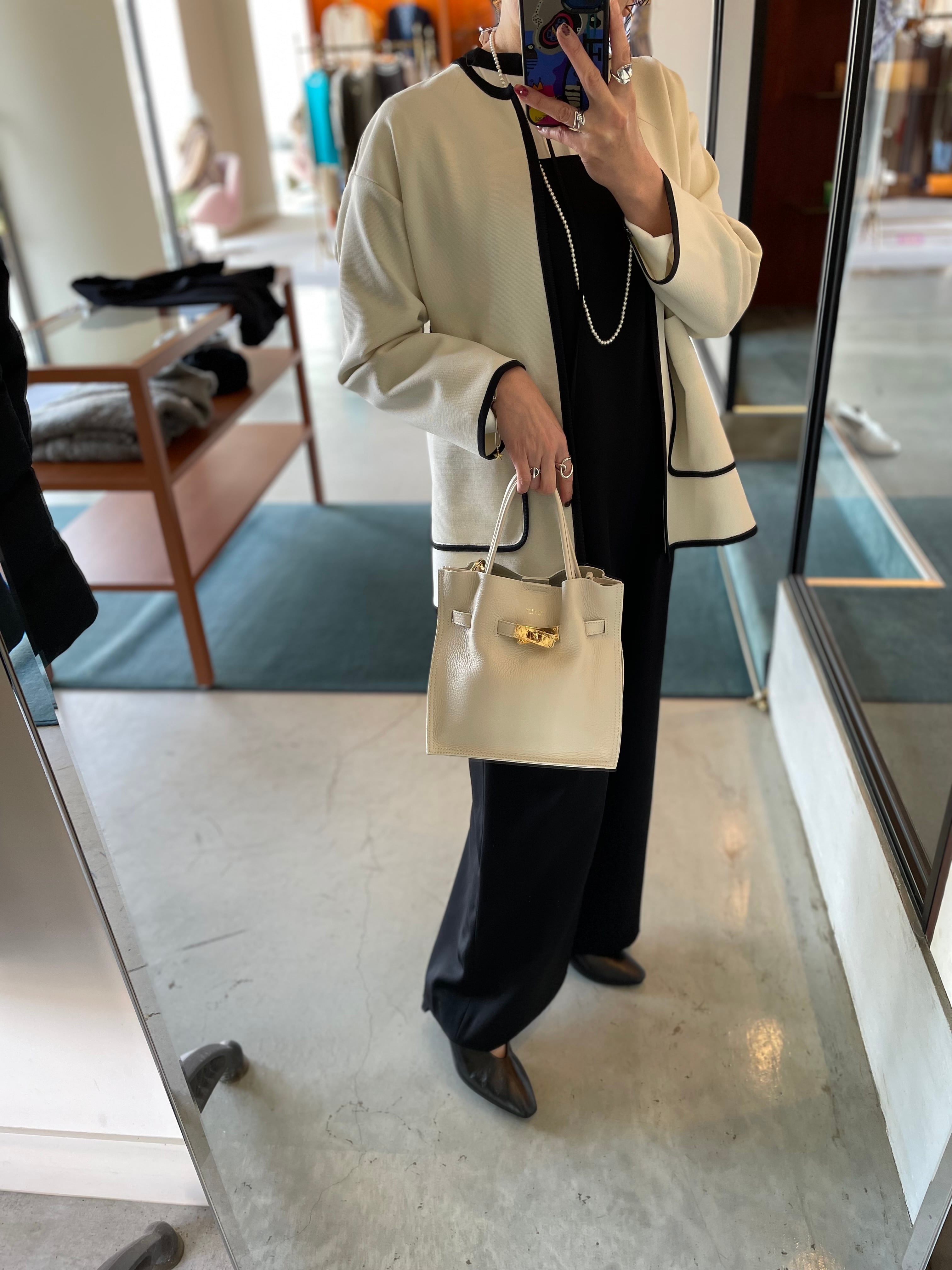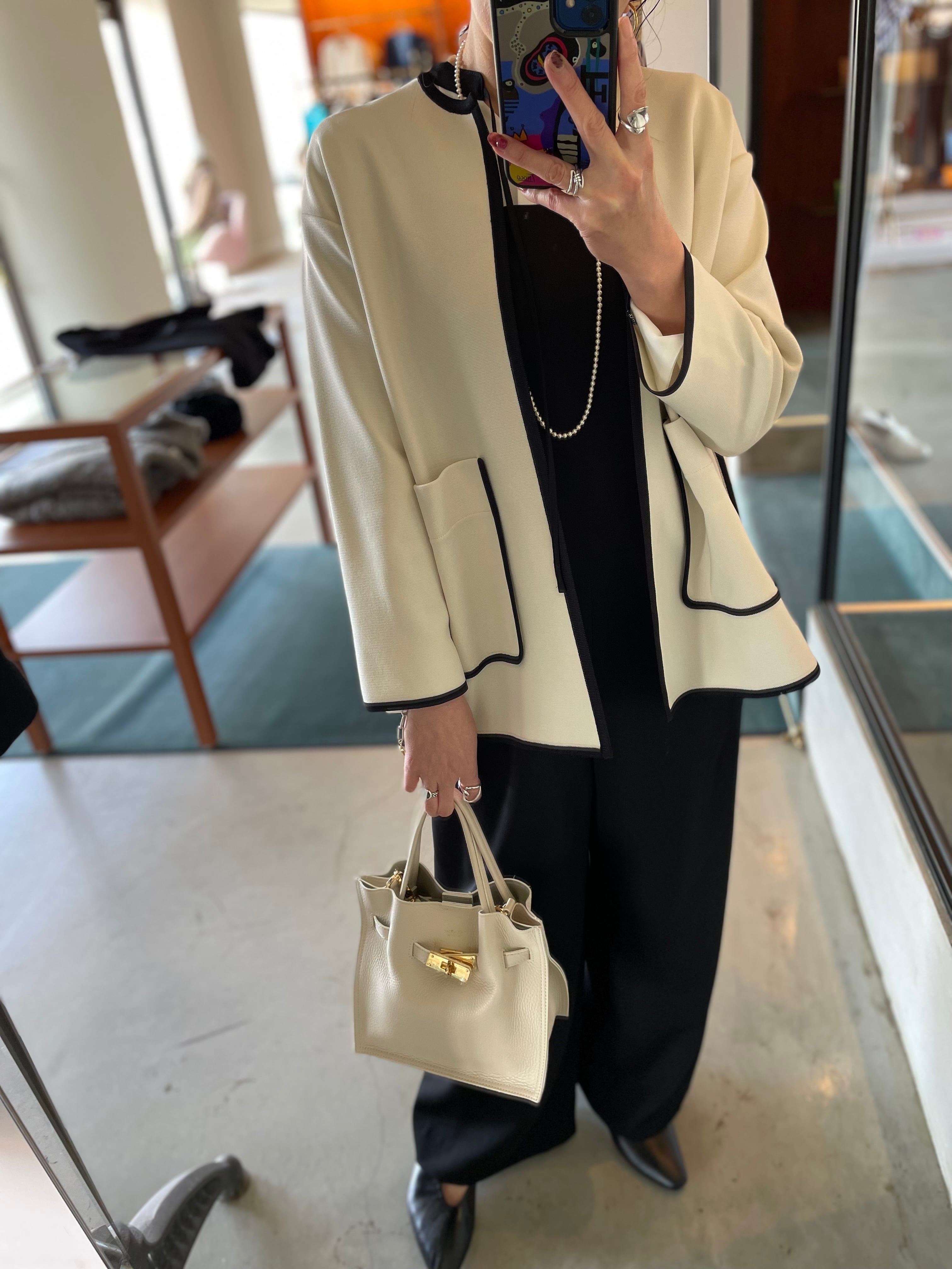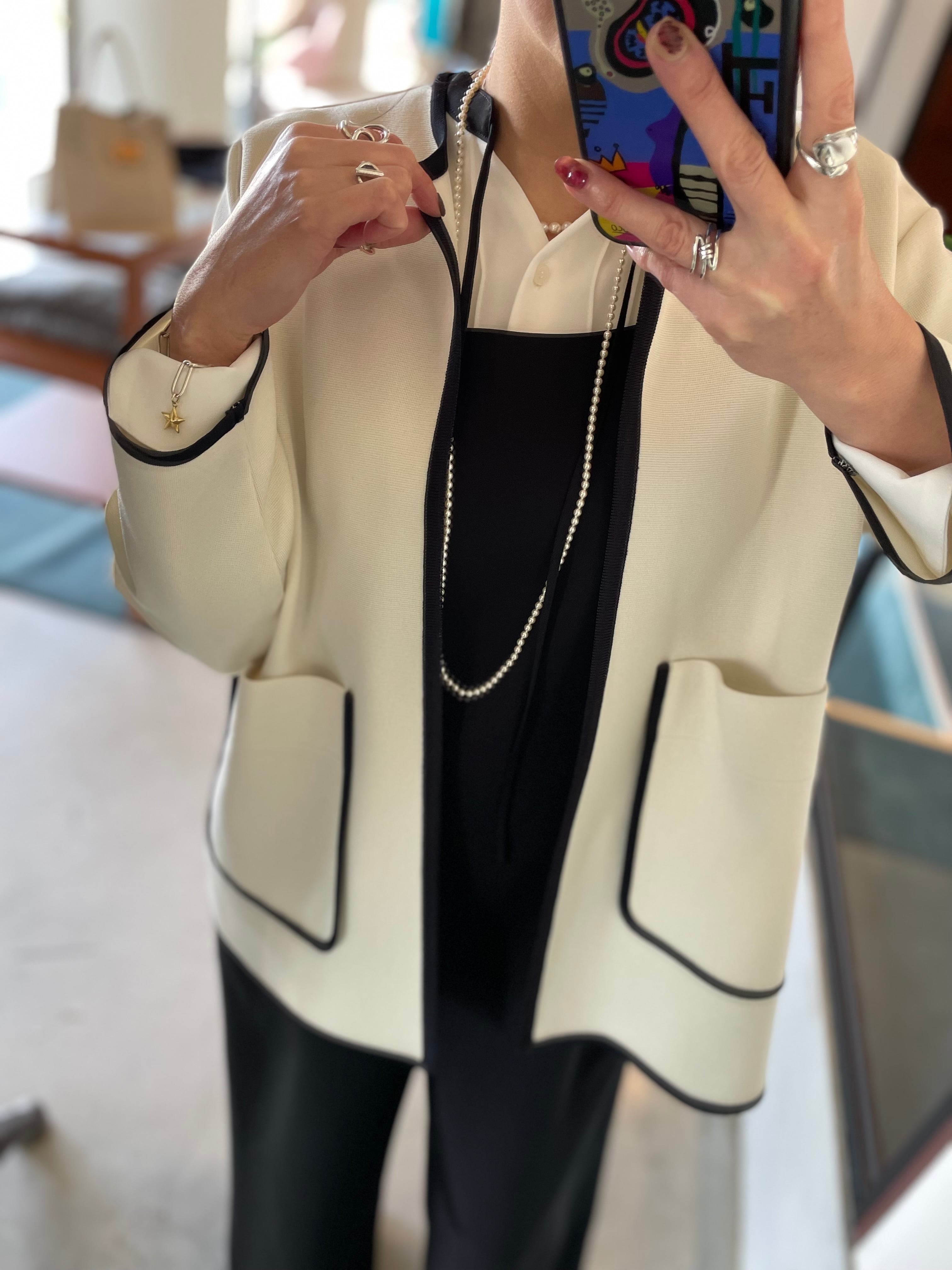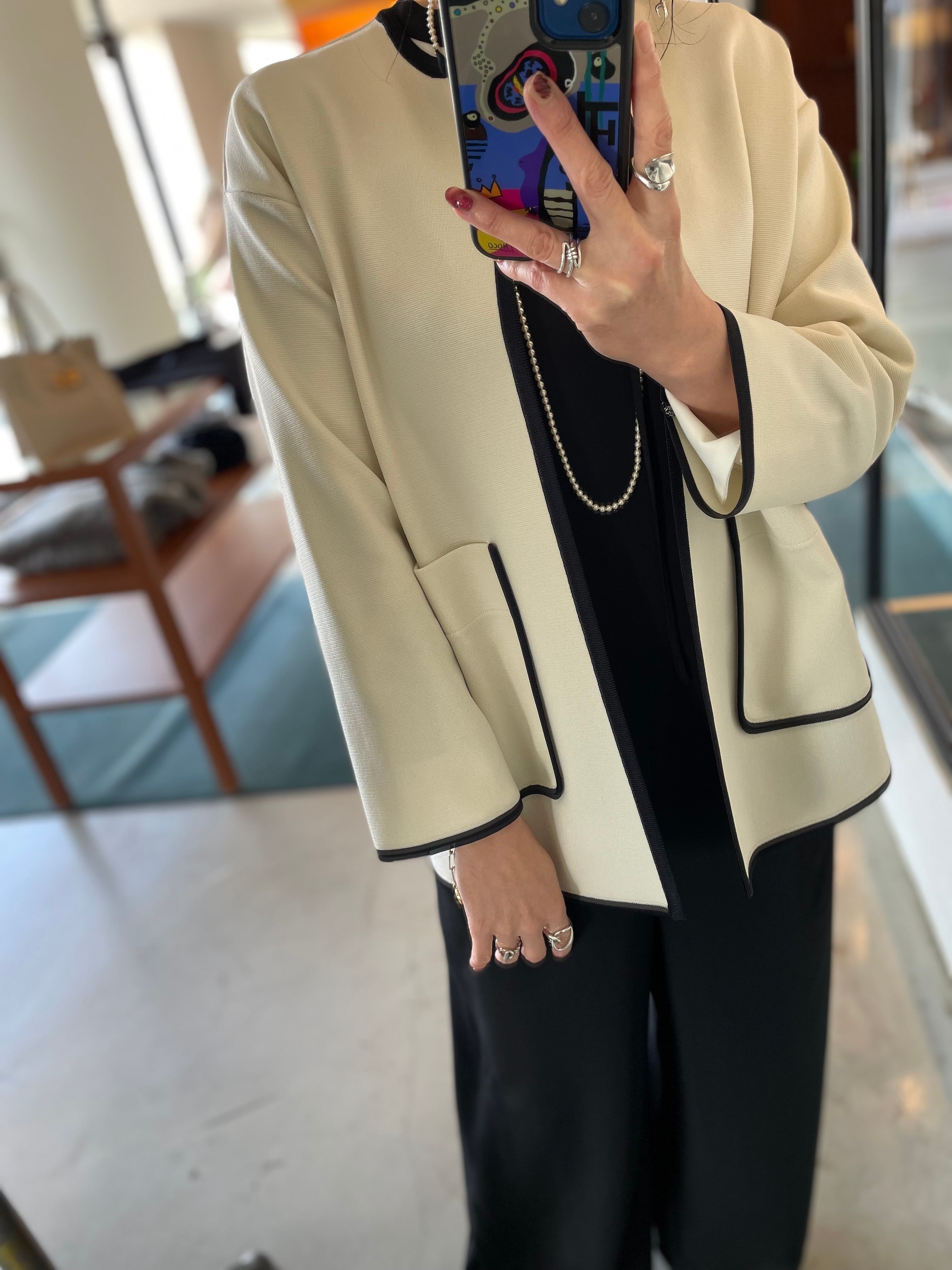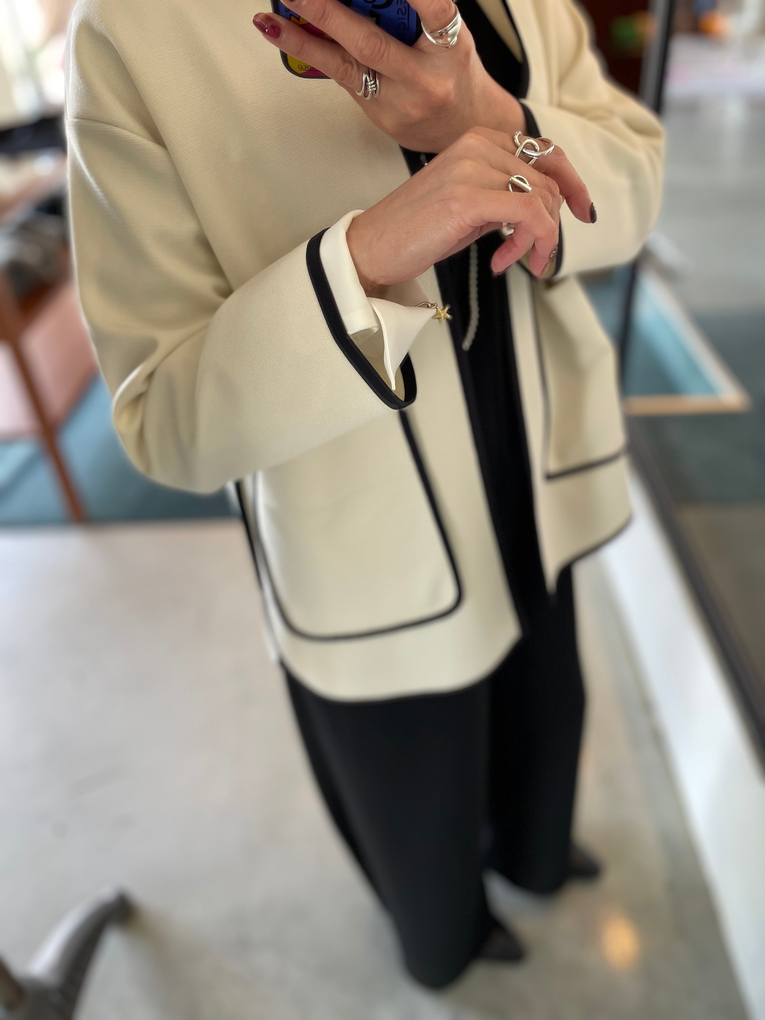 ブラウスを合わせてきれいめに着こなすのはもちろん、カットソーやデニムとのカジュアルなスタイリングもバッチリキマる◎オススメニットジャケットです。