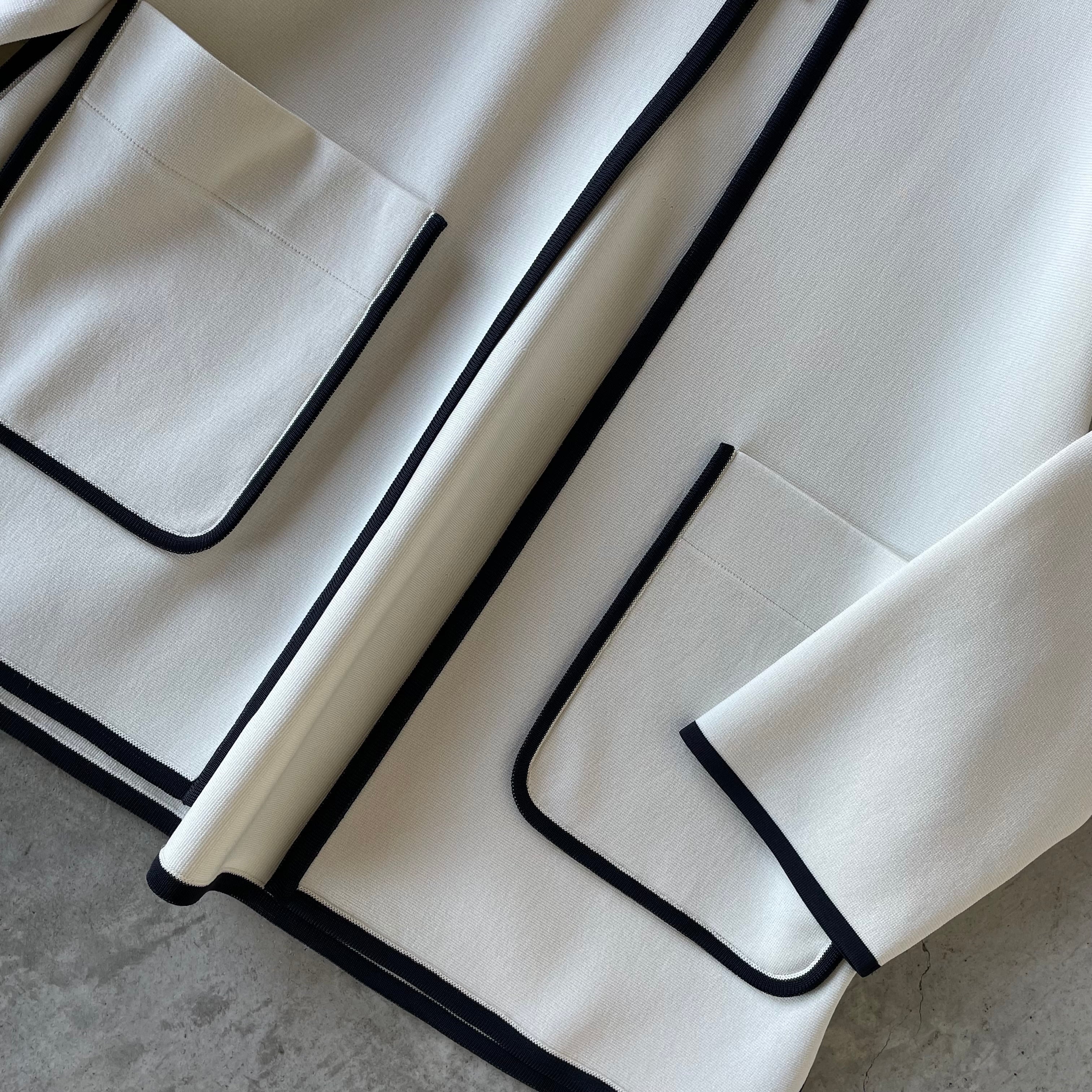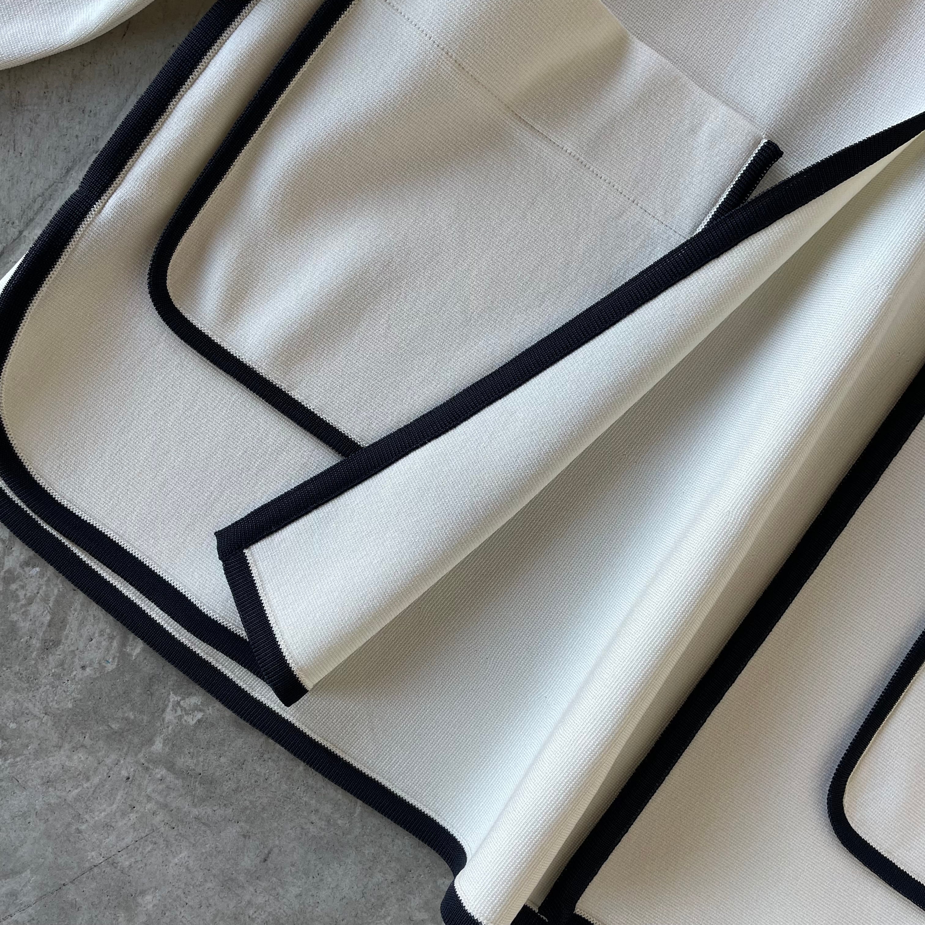 日常使いからちょっとしたお出かけにも活躍し、軽めのジャケット感覚でご着用いただけるニットジャケット。