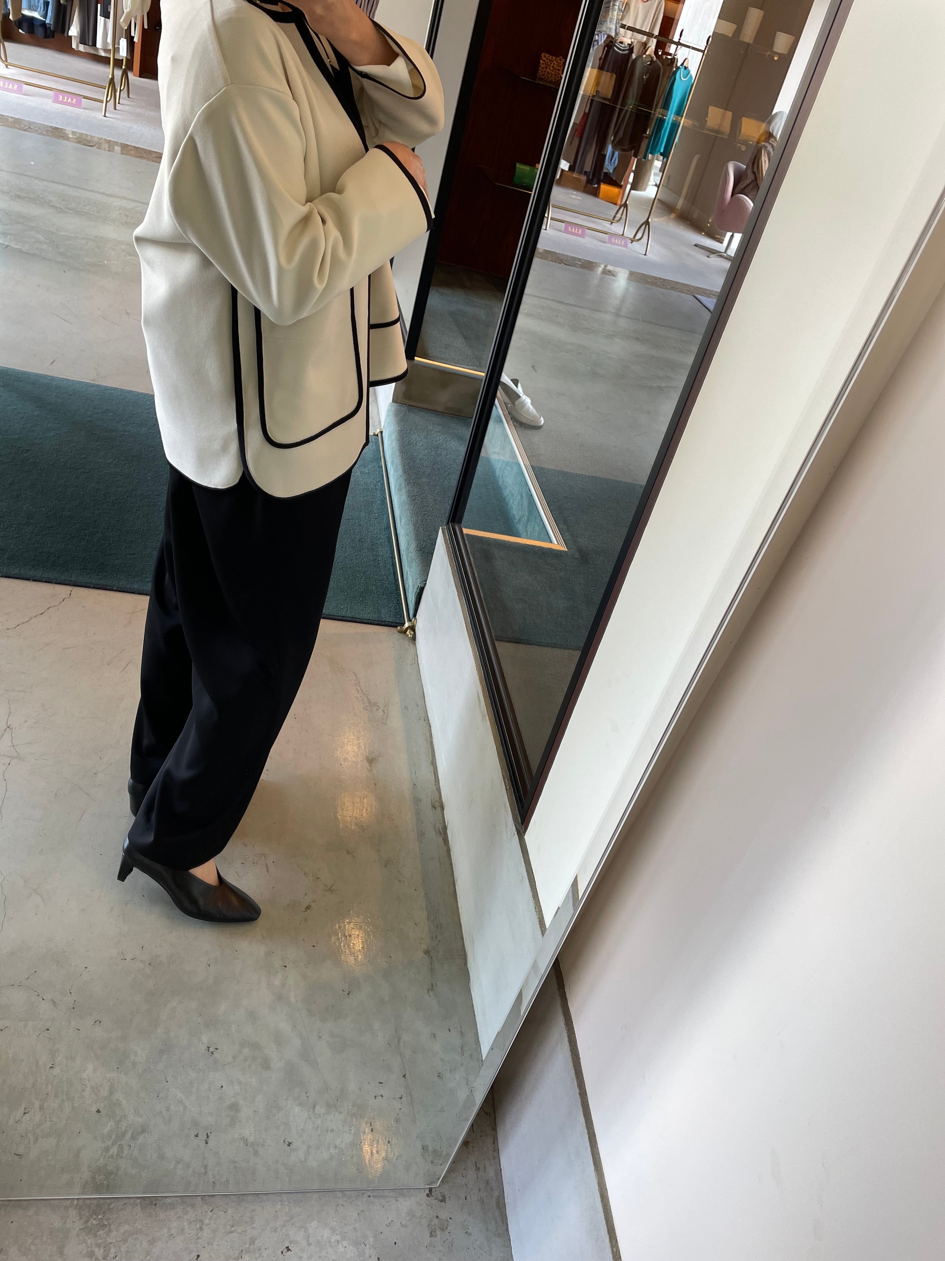配色のパイピングと後ろ身頃のボリューム感がデザインポイントですよ♪