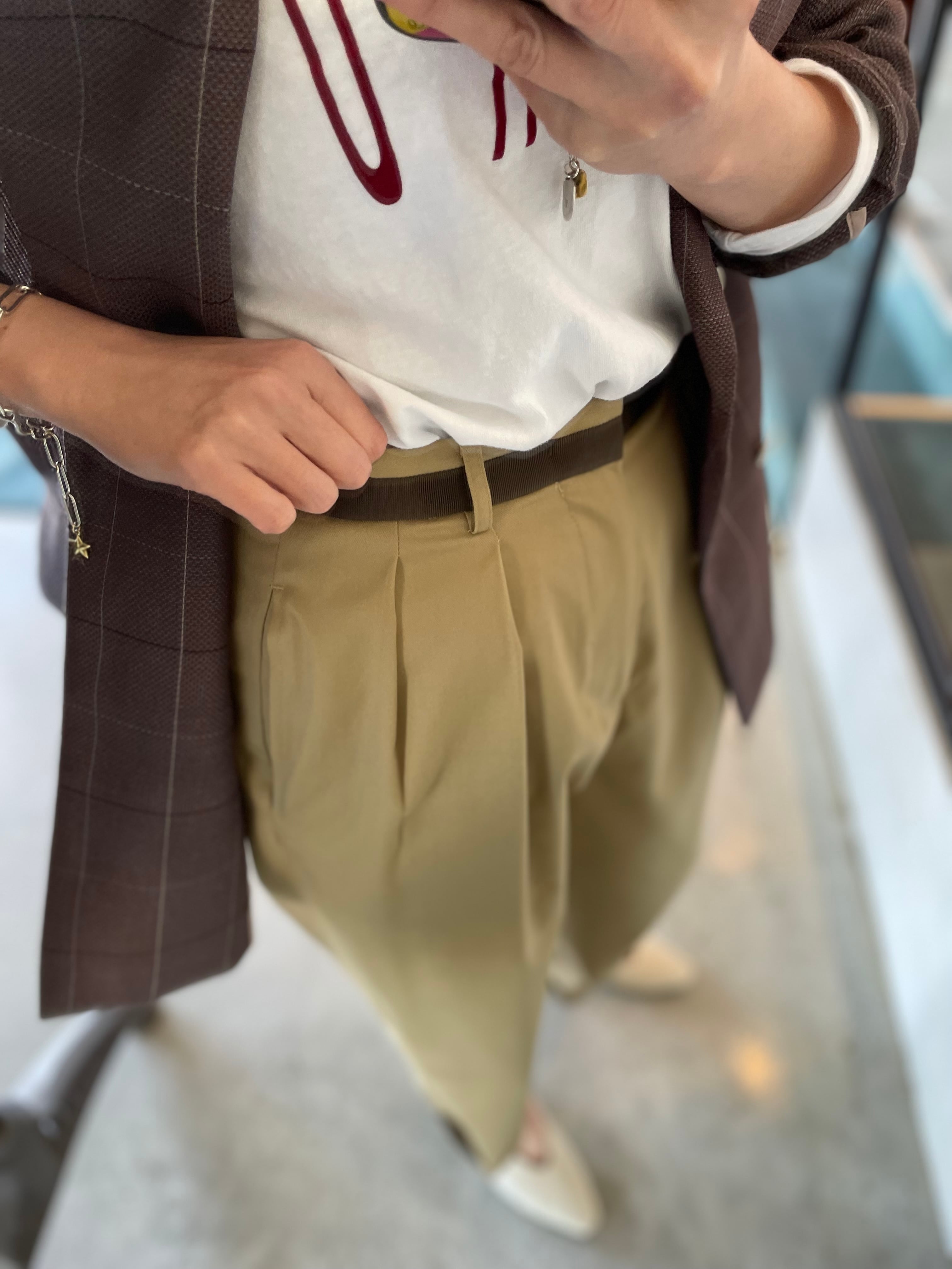 このパンツ1本あれば、お手持ちのトップスとのコーデもイマドキコーデにアップデート出来ちゃう♪オススメチノパンツです。