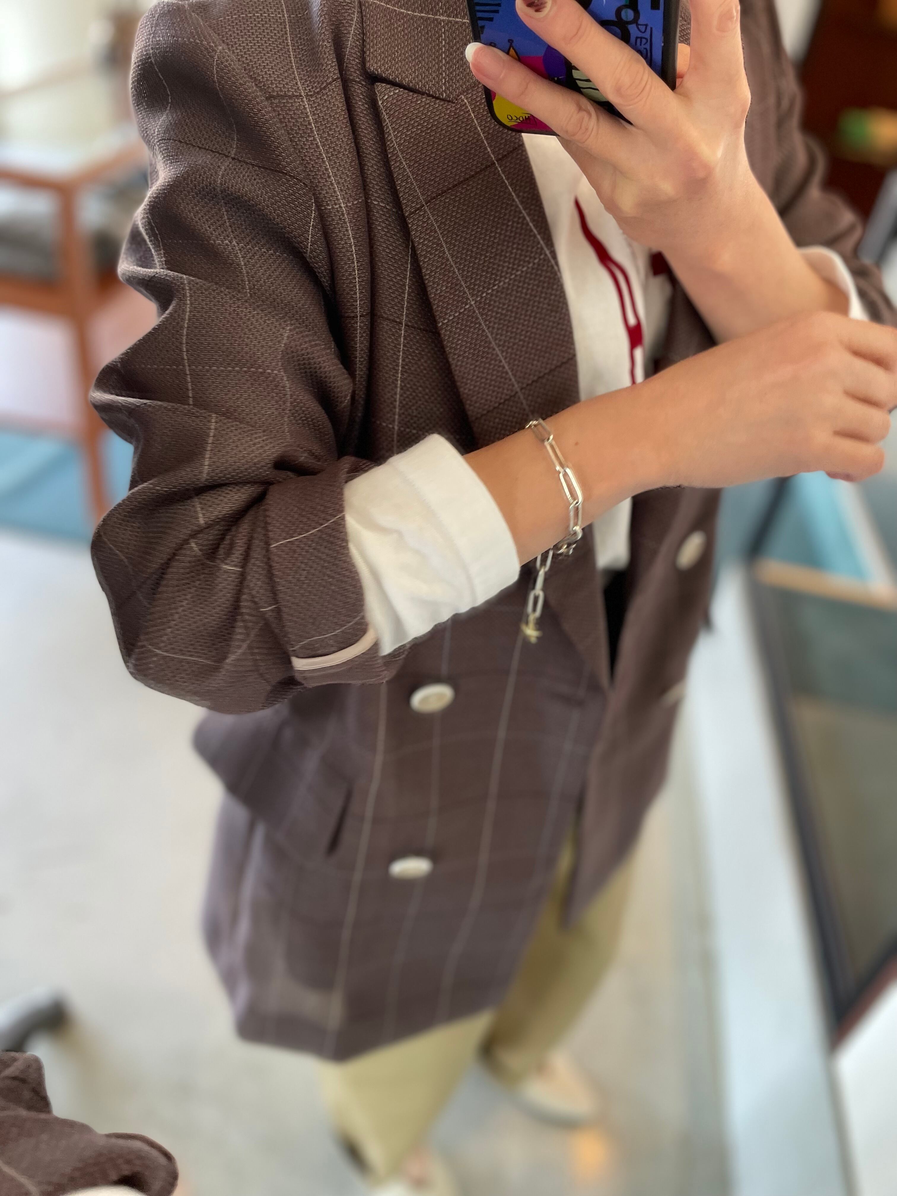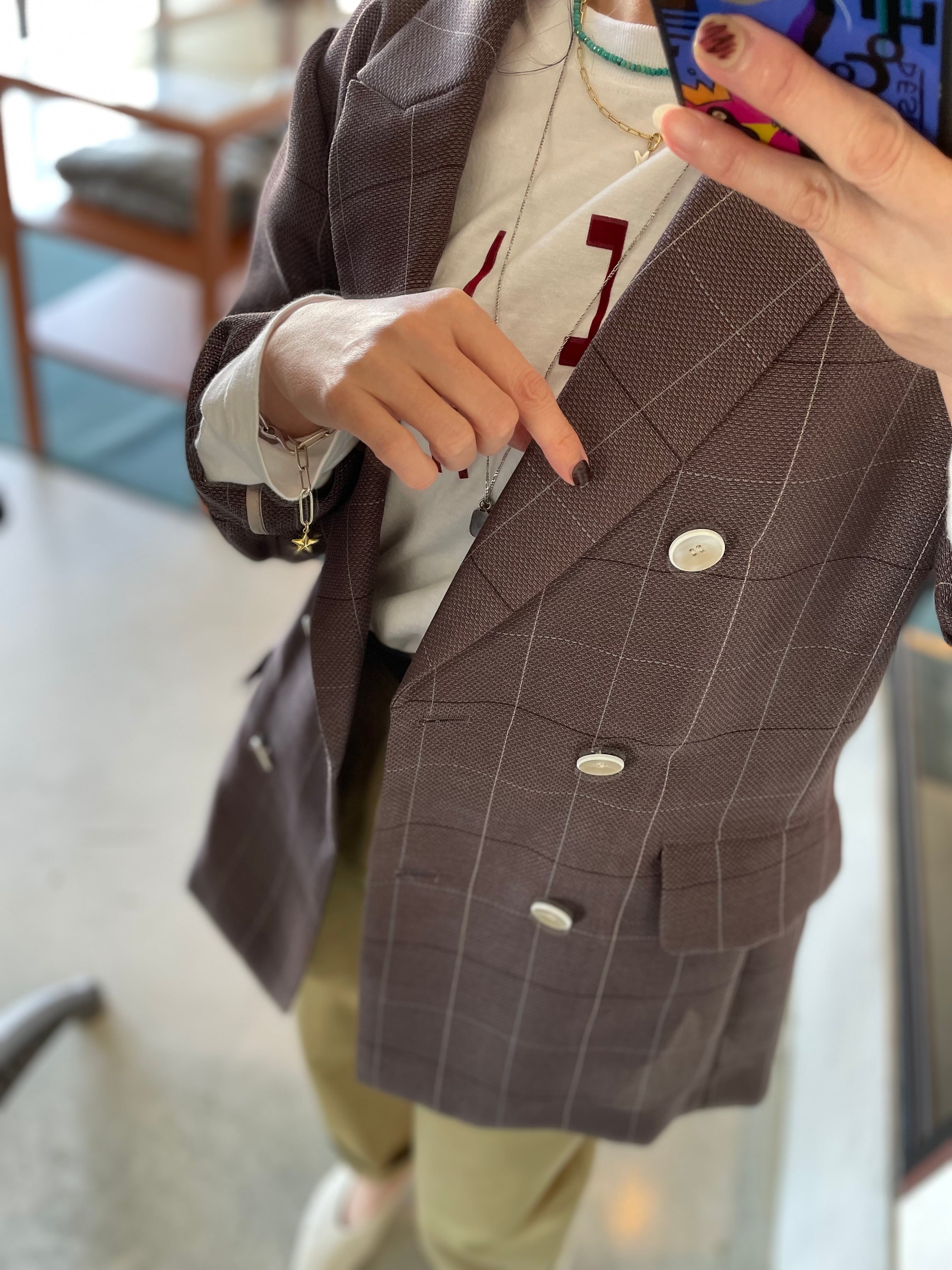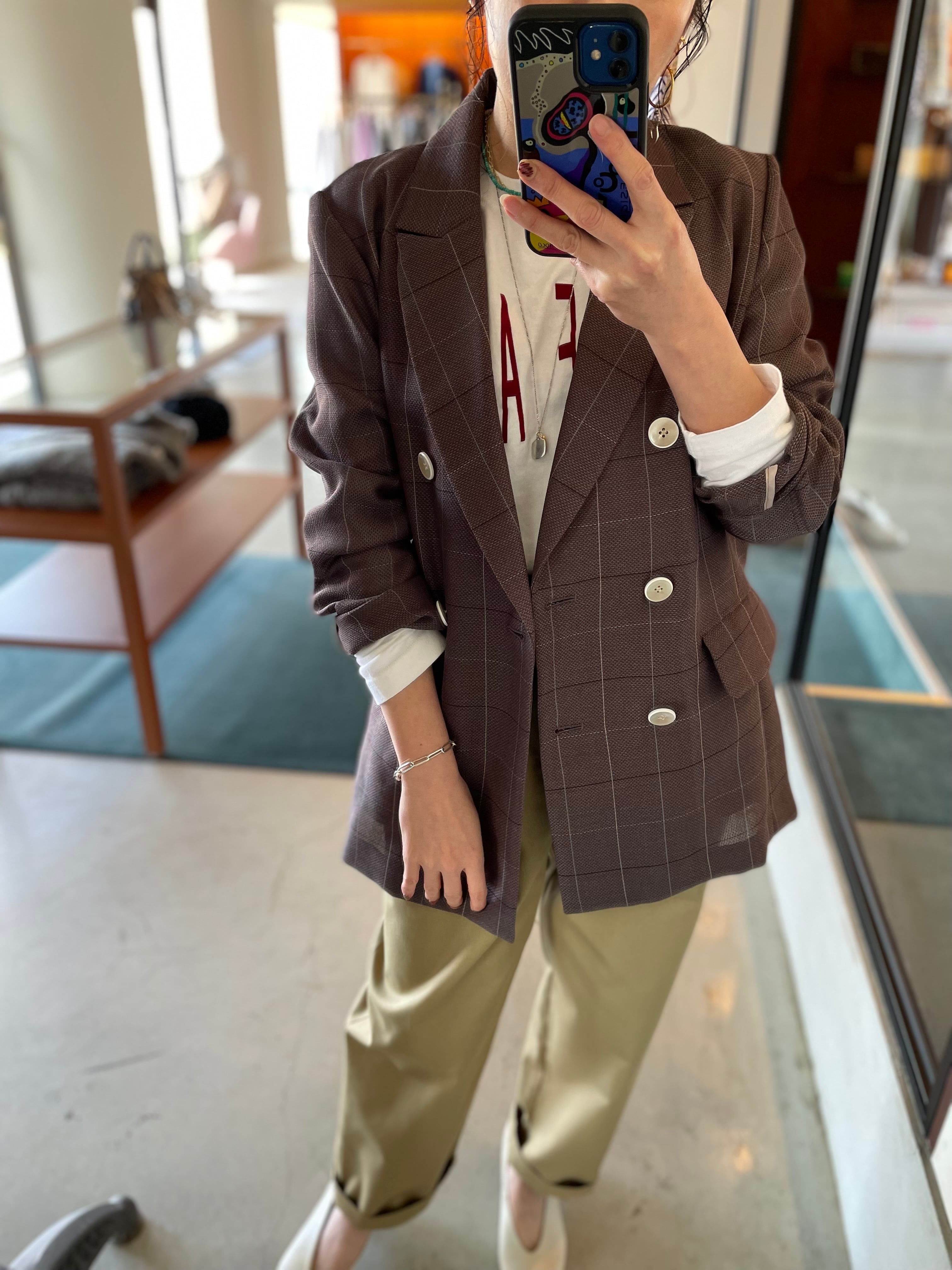 カジュアルコーデもピリッと締まる⭐︎オトナチェックなこなれジャケット♪ チェックメッシュダブルジャケットです。