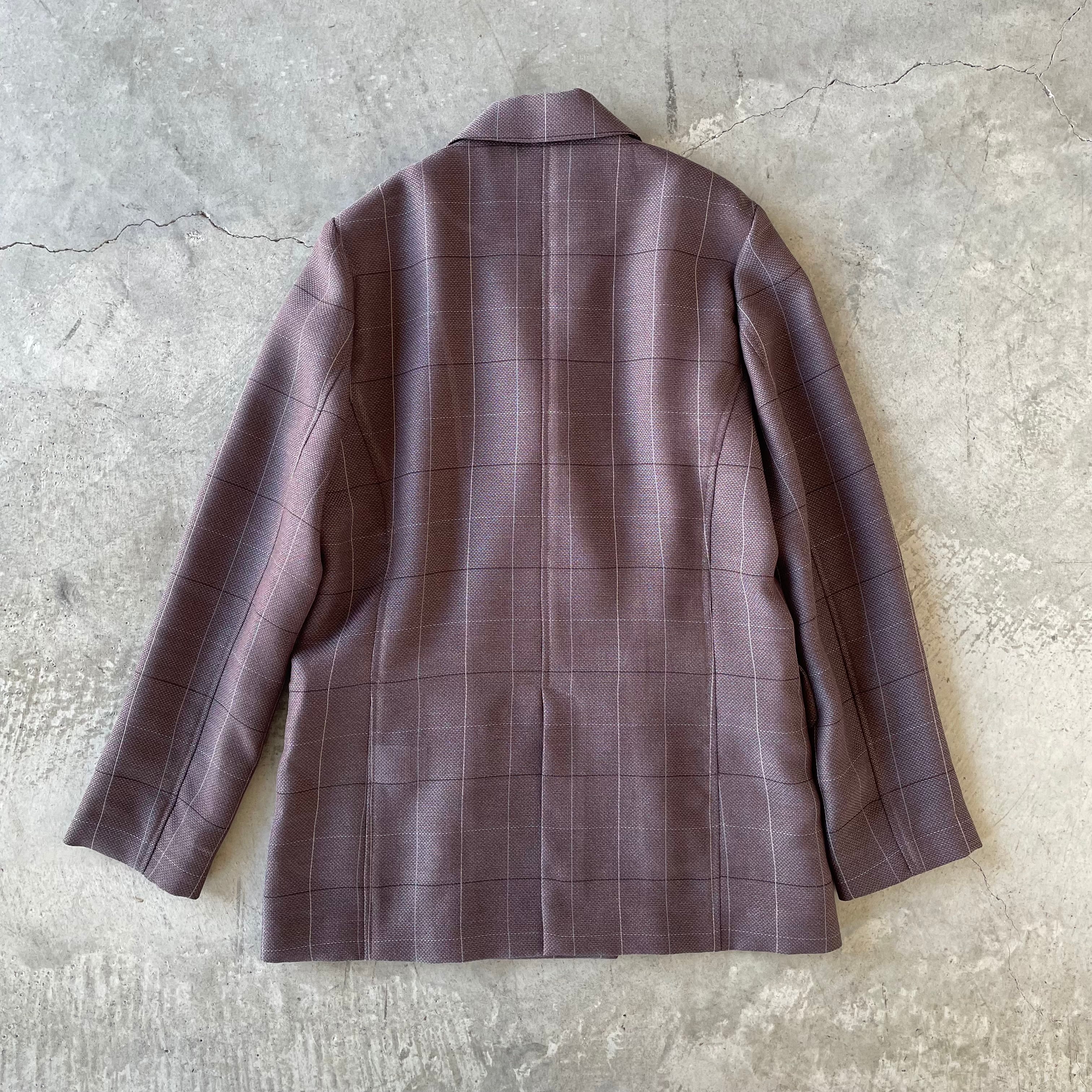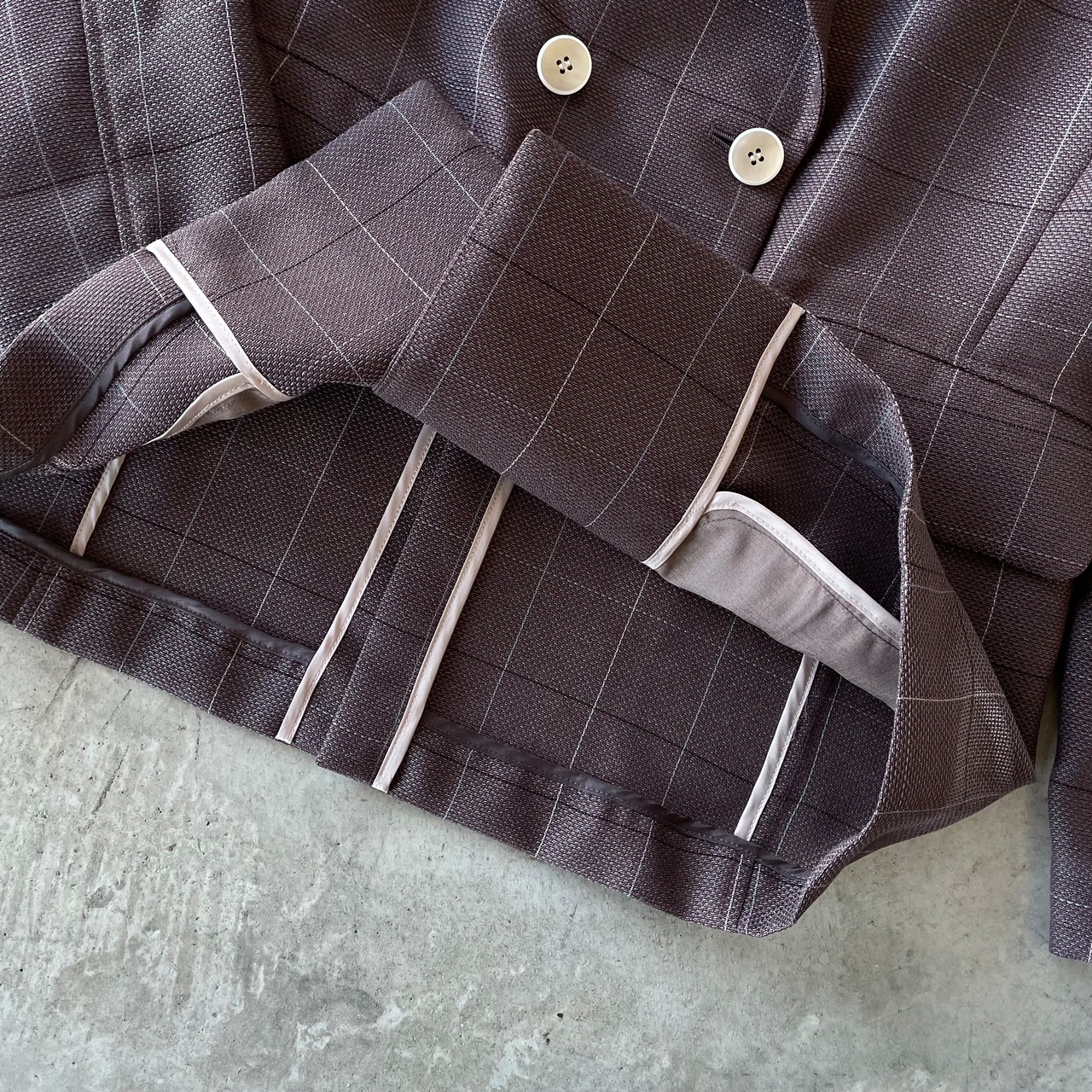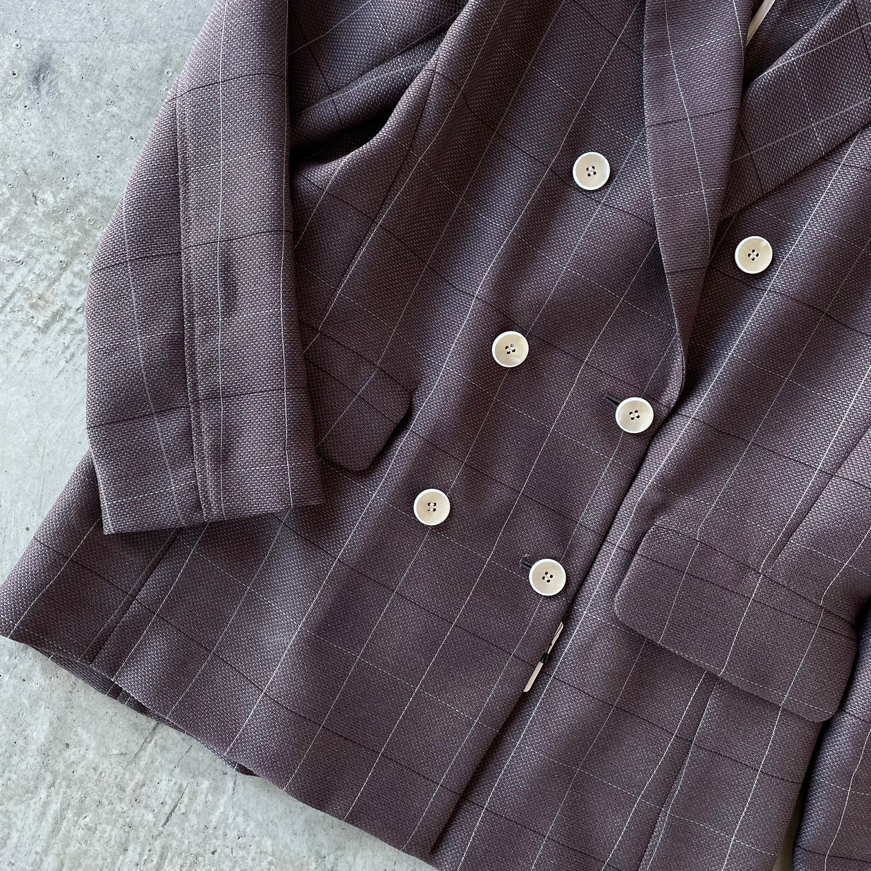 抜け感のあるシアーのカラミ織り風メッシュ素材を使用したテーラードダブルジャケット。
