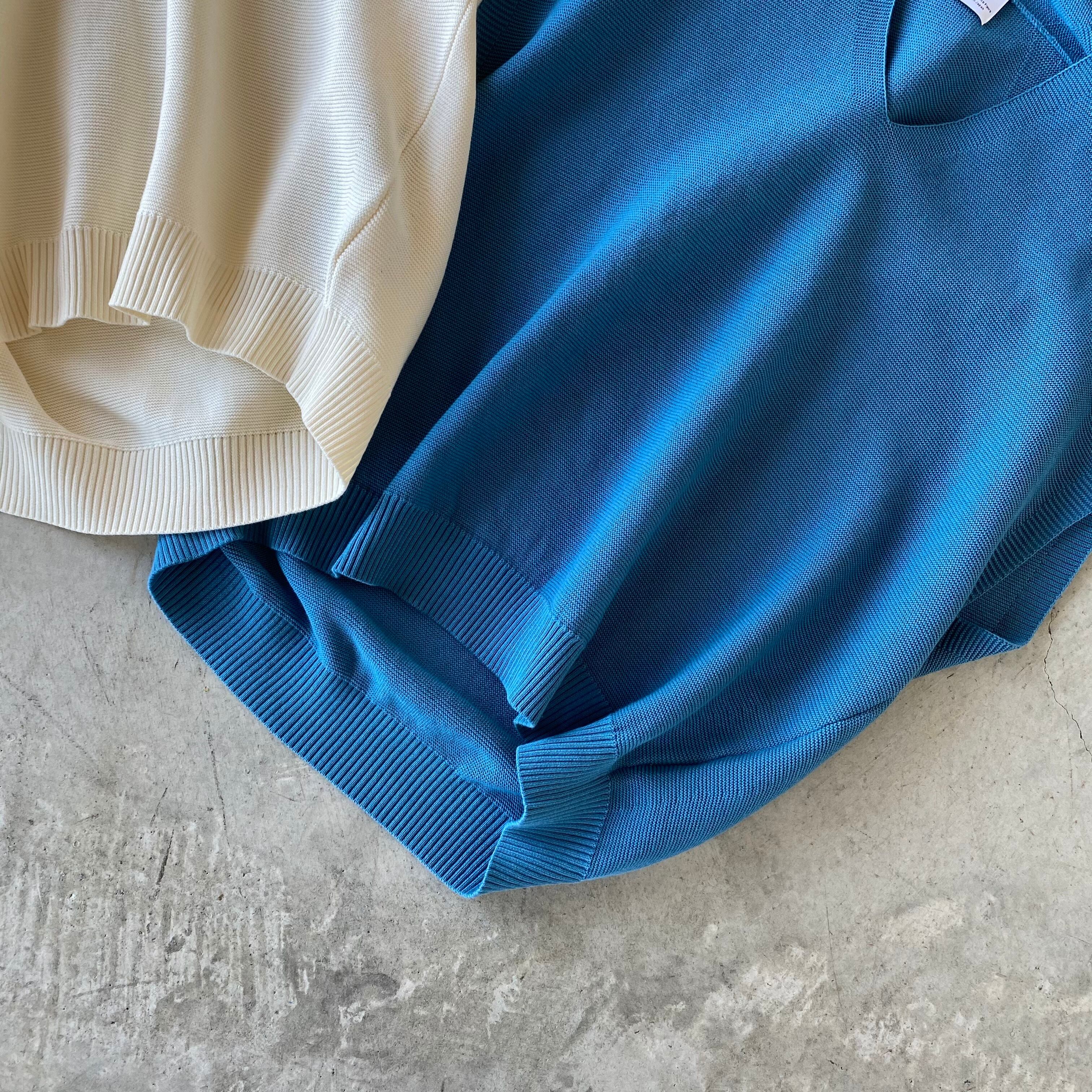 触ったときに「シャリっ」とした手触りになる、春夏向きのニット素材が特徴の1枚着でもベストとしても◎なプルオーバーニット。