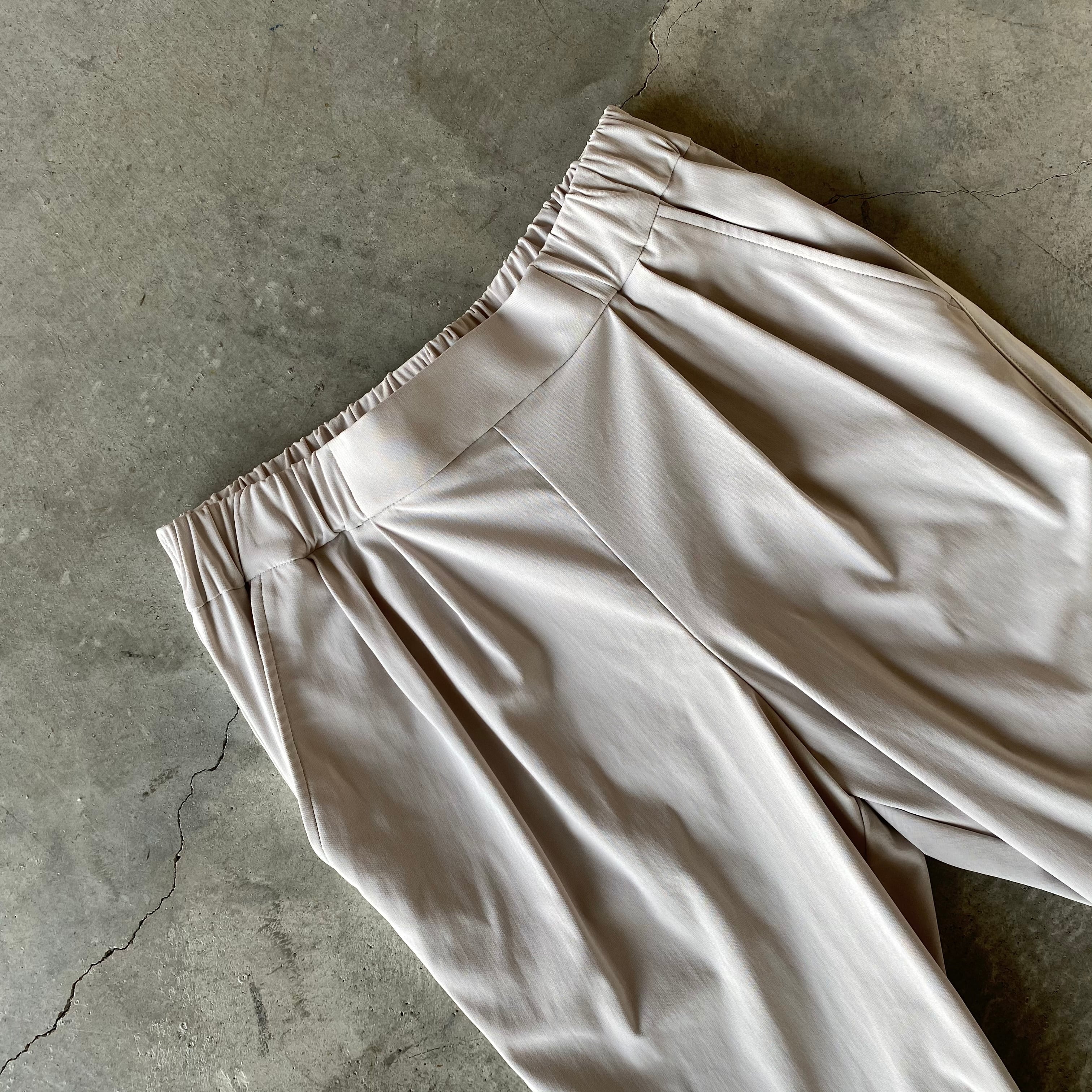 裾にかけてキュッと細身なシルエット。お尻周りにはタックを入れ、ふんわりと綺麗にカバーしてくれます。