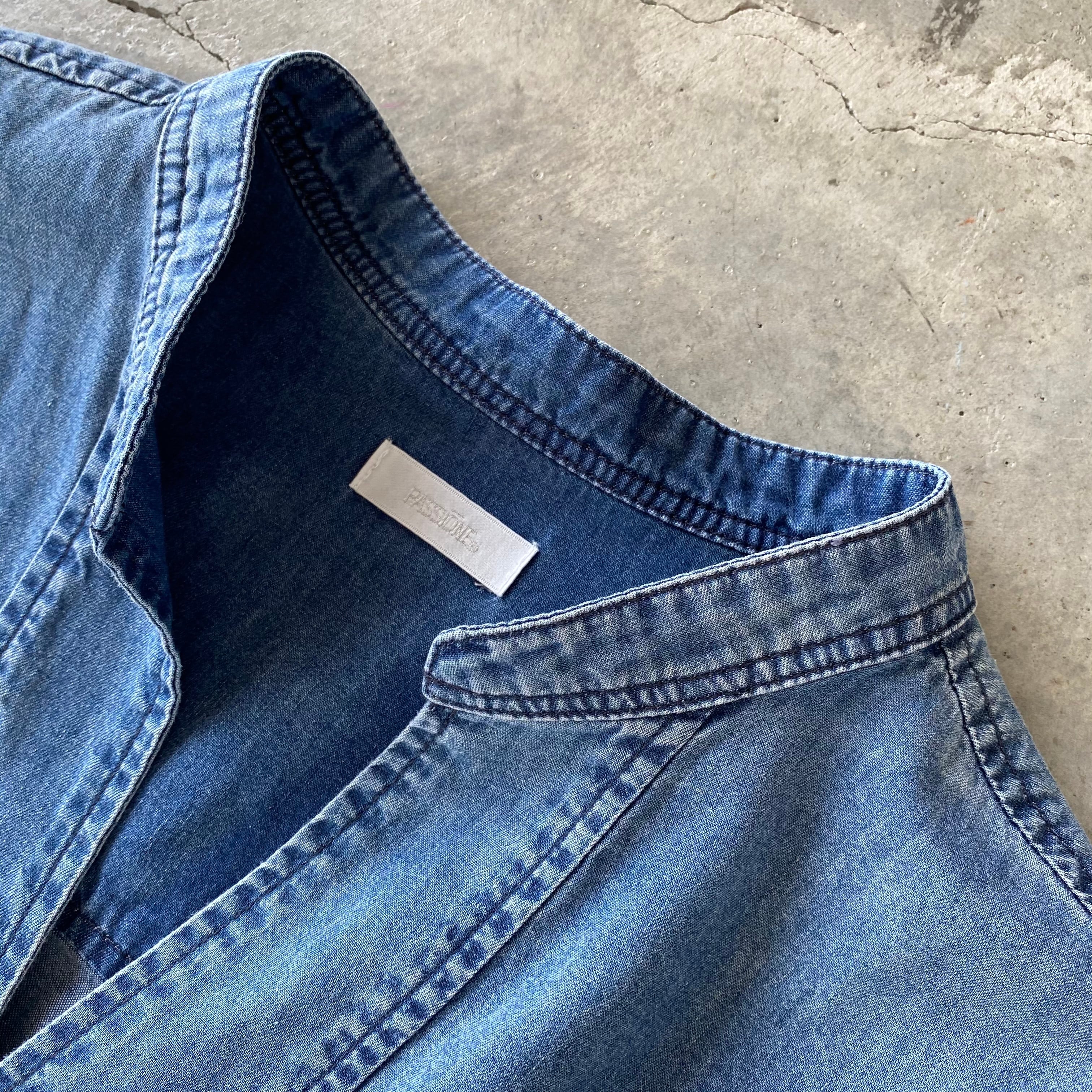 PASSIONE パシオーネ "ダンガリー"が今の気分♪一枚で着映えするリラックスシャツ! サイドスリットダンガリーシャツブラウス