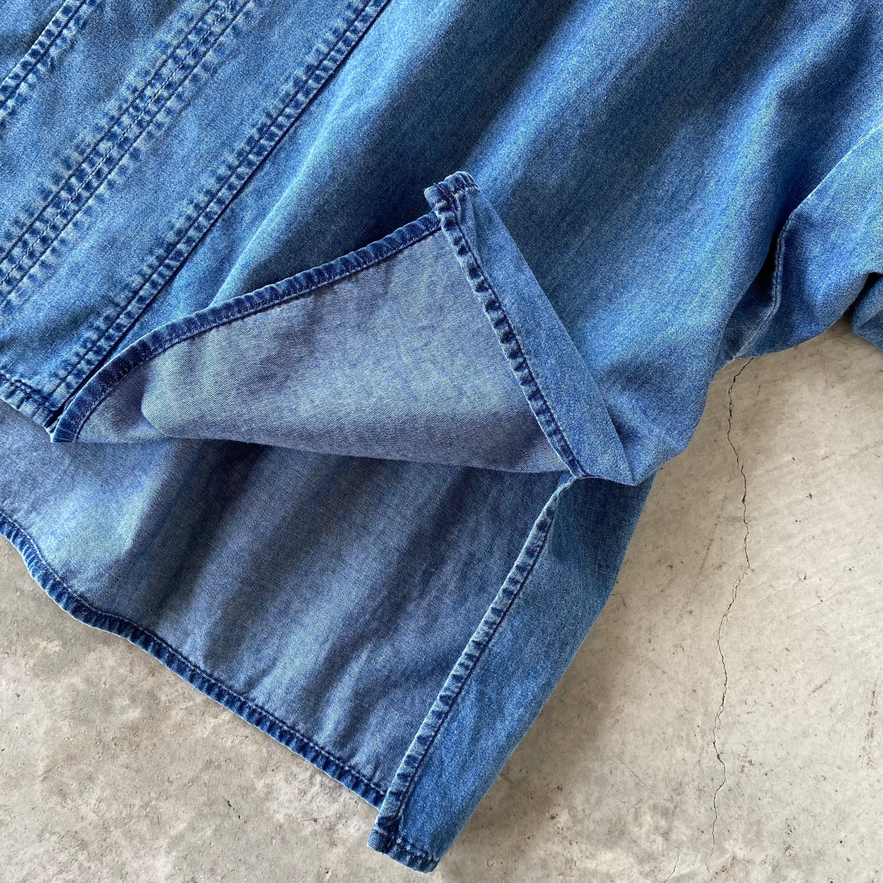 "ダンガリー"が今の気分♪一枚で着映えするリラックスシャツ! サイドスリットダンガリーシャツブラウスです。