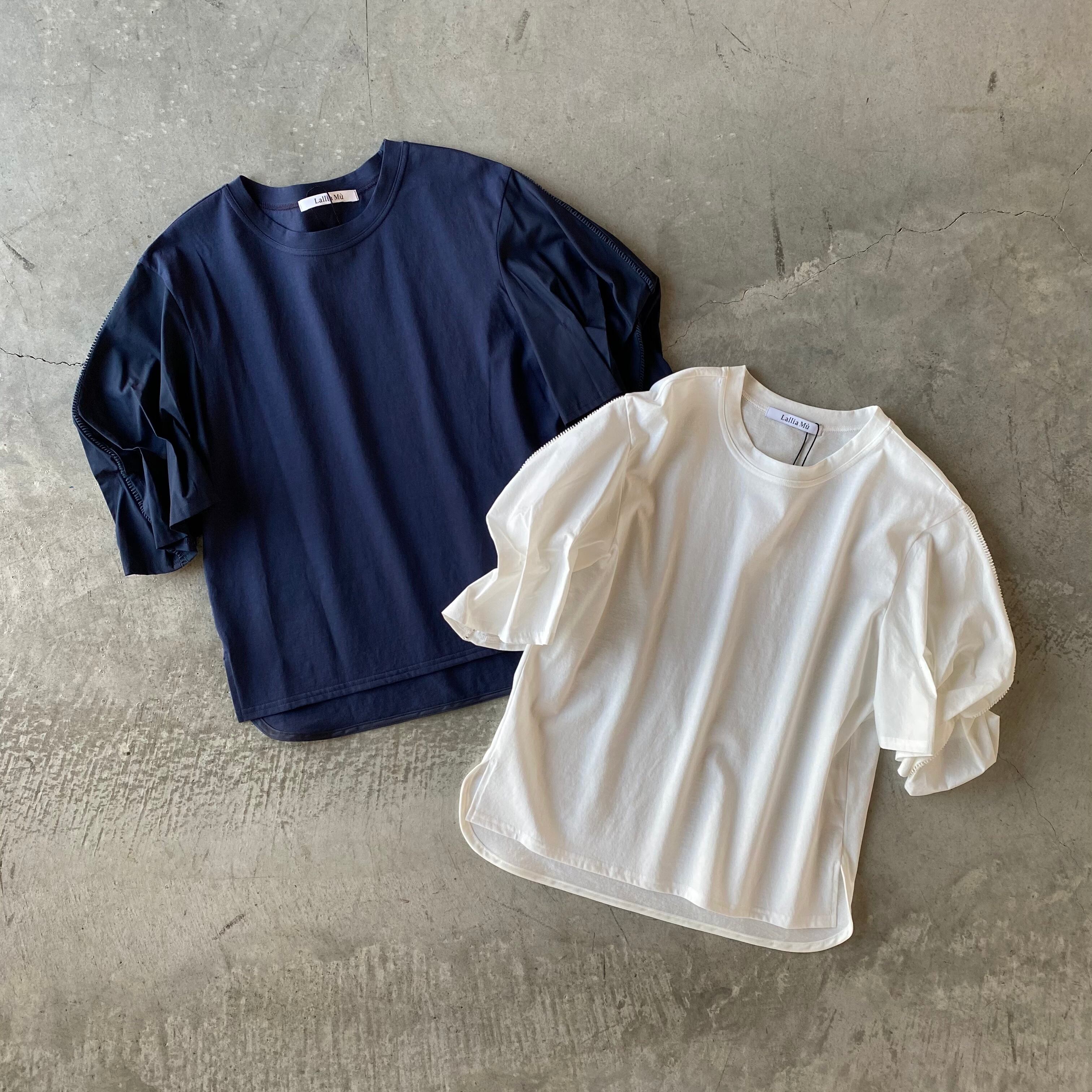 Lallia Mu ラリアムー フェミニンになりすぎない!カジュアルさもプラスした"袖コンシャス"トップス♪ タフタスリーブカットソープルオーバー
