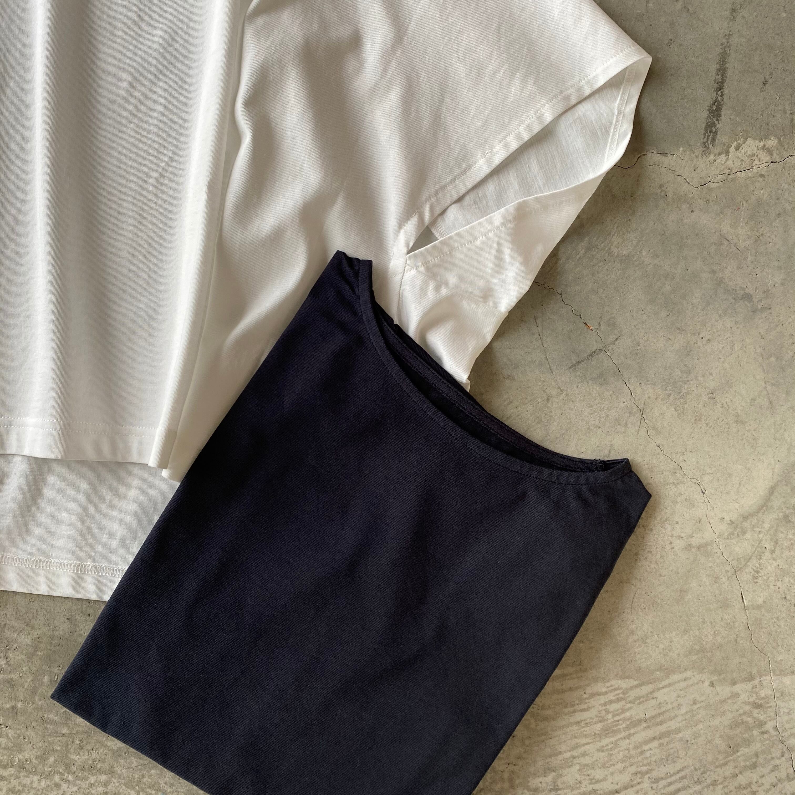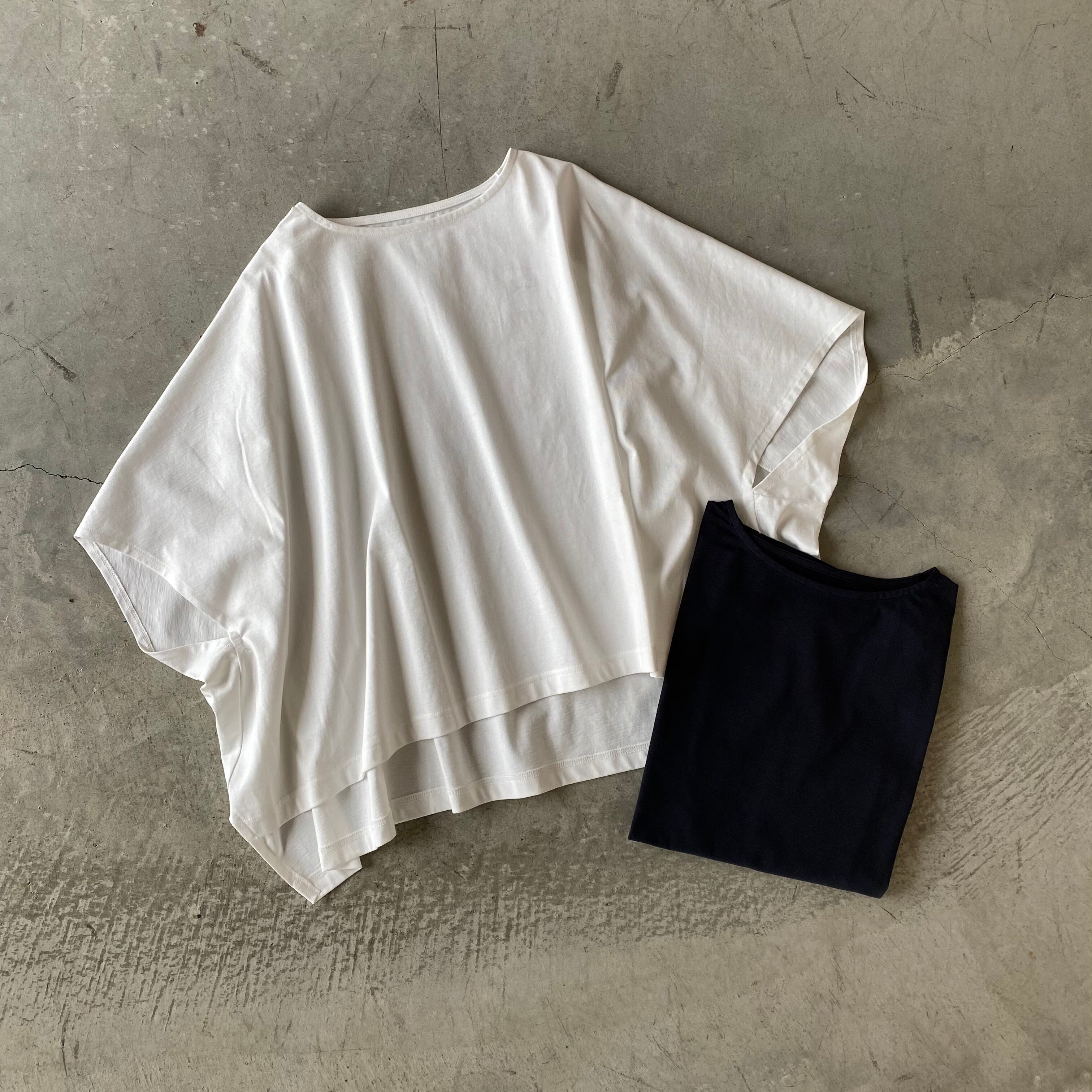 ゆったりとしたシルエットながら、落ち感のある素材ですっきりと着こなせるプルオーバーTシャツ。