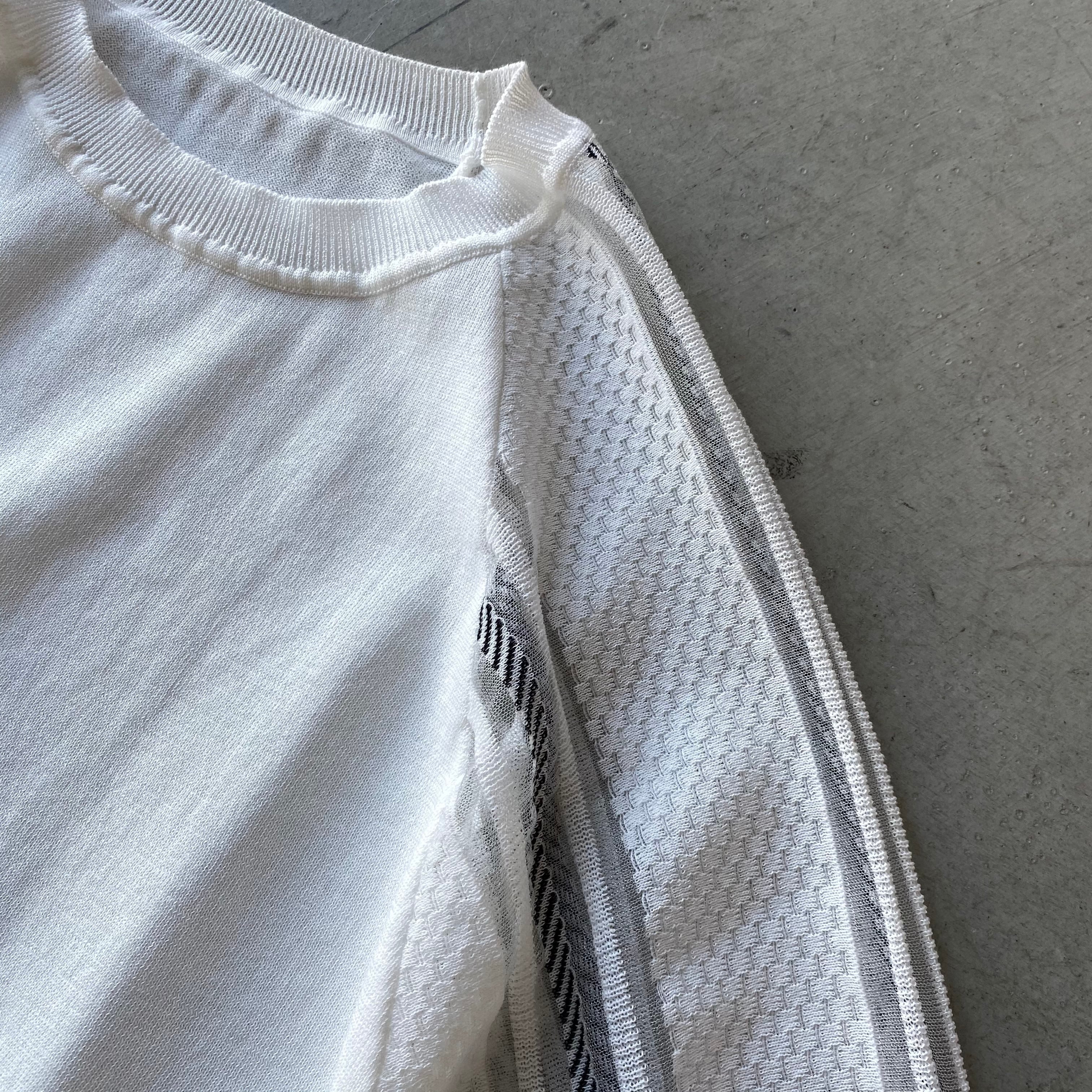 シースルースリーブで軽やかさと女性らしさをプラス♪ ストライプシースルースリーブニットです。