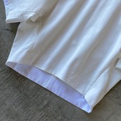 前後差をつけた着丈は、前身ごろを短く設定する事でレイヤードスタイルや、ボトムバランスがとりやすいのがポイント♪