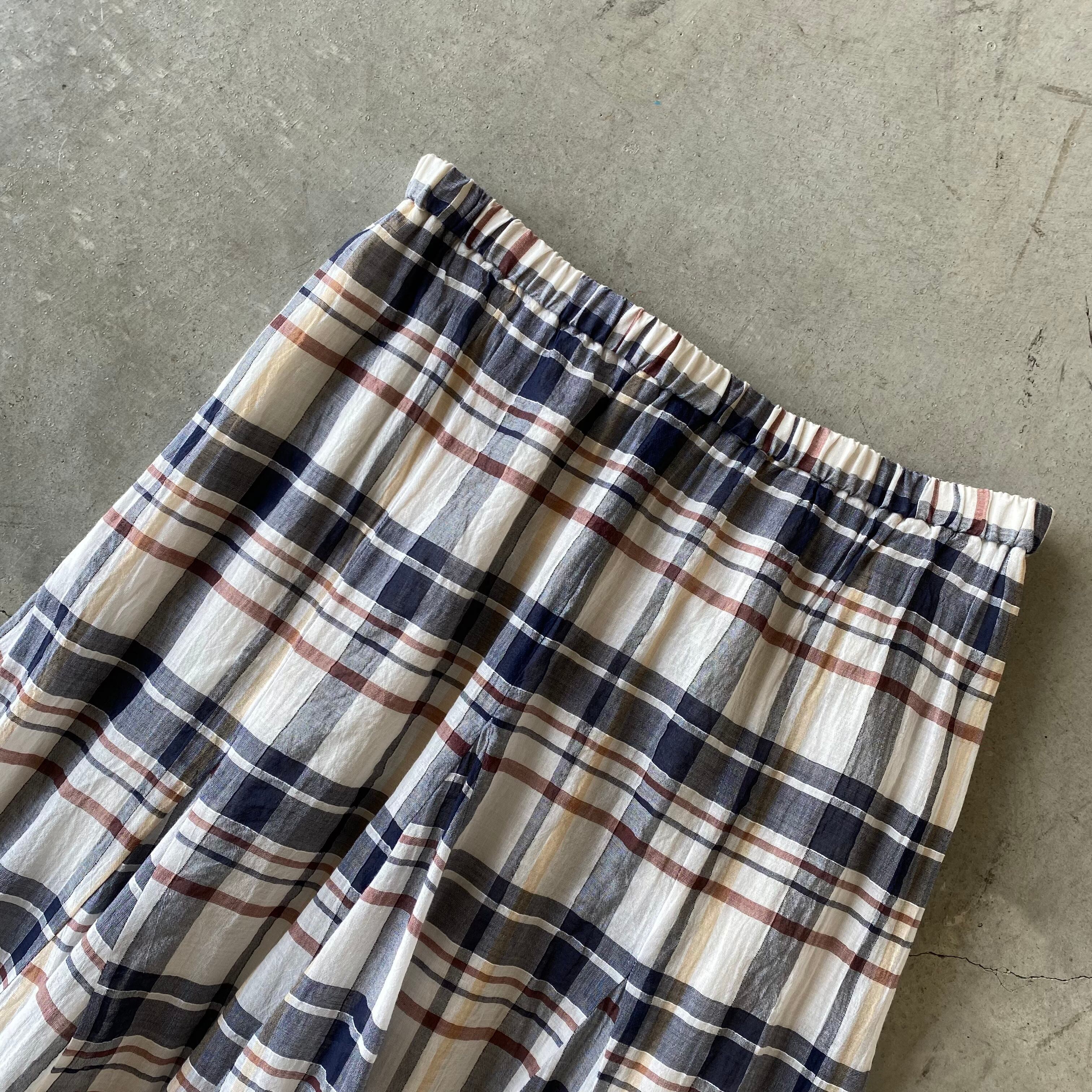 1枚でリラックスムードに♪風合い抜群のコットンシルク素材で上品さも♪ チェック柄ロングフレアスカートです。