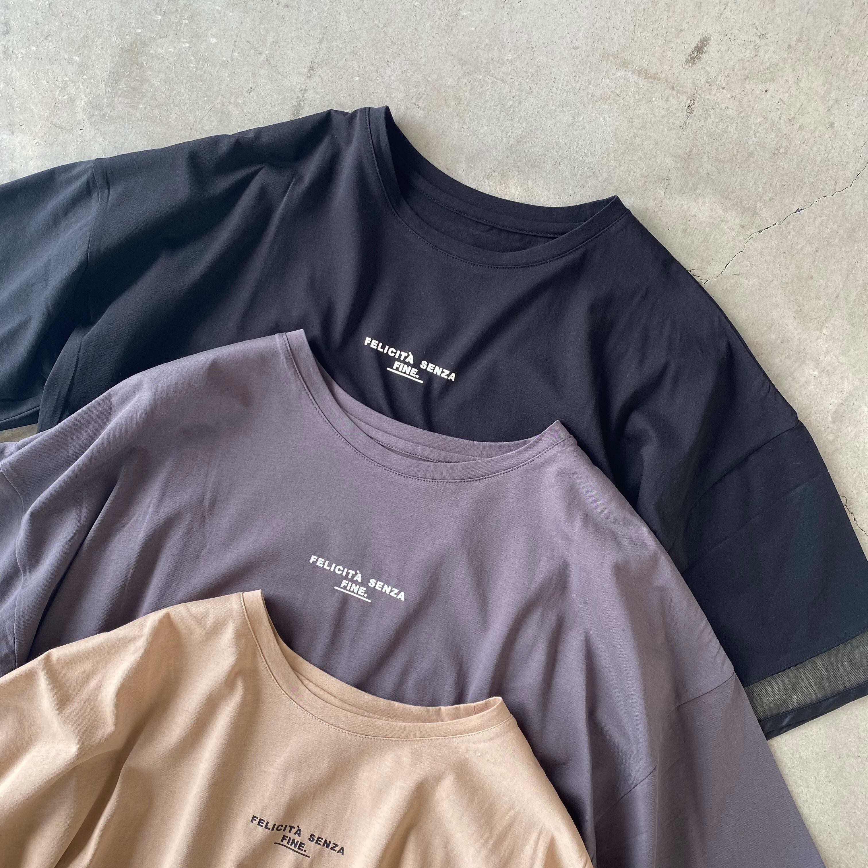 お袖と後ろ身頃の裾にシースルー素材をコンビ!!ほんのり透け感が軽やかなTシャツです。