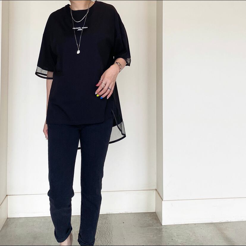 しっとりと落ち感のあるカットソー素材なので、Tシャツでもカジュアルになりすぎず大人な着こなしも叶いますよ♪