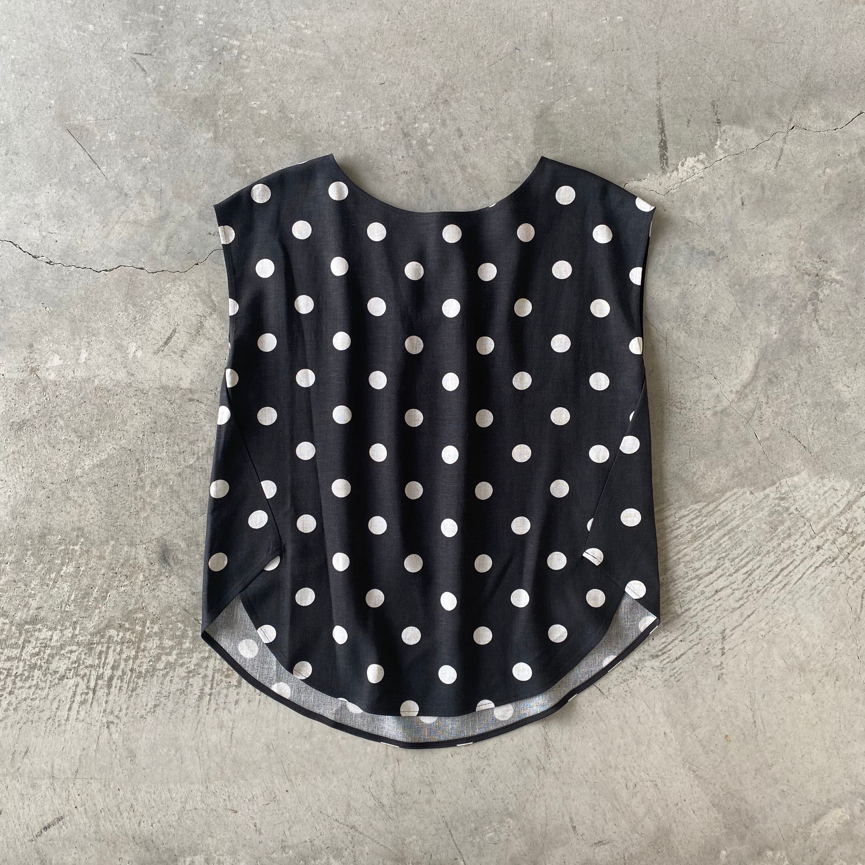 大粒のドットをあしらったレーヨンリネン素材のフレンチスリーブトップス。