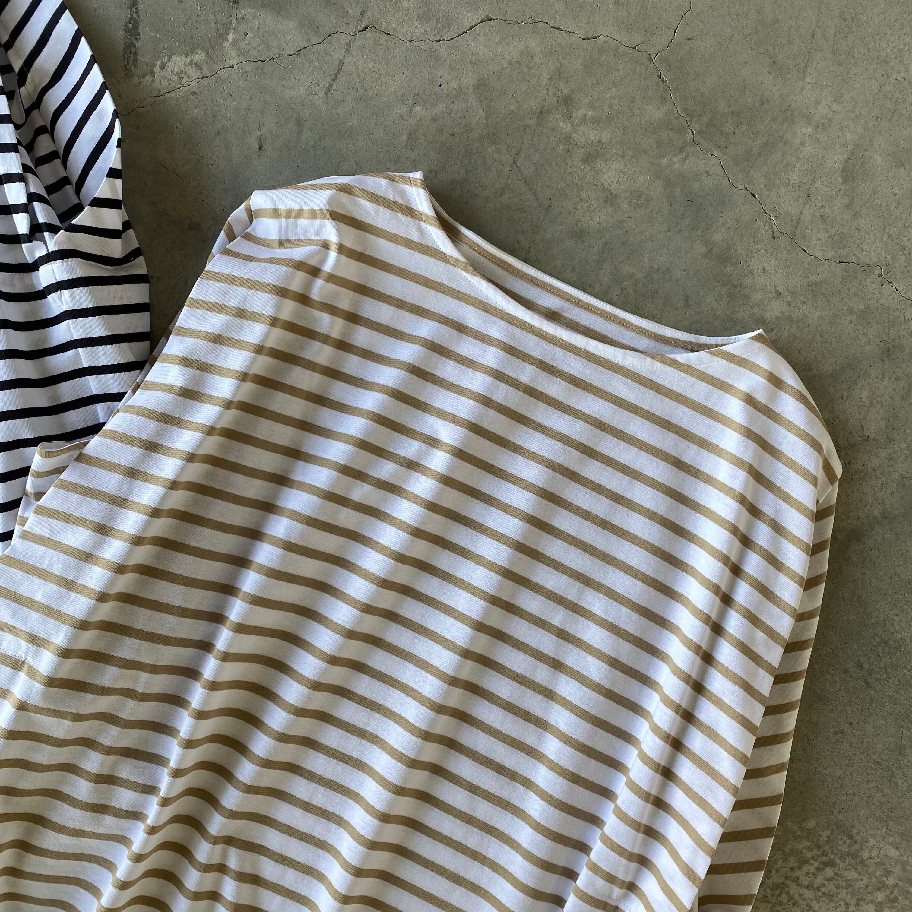 程よい肌見せが抜け感のある大人スタイルに♪ ヘムドロスト ボーダーカットソープルオーバーです。