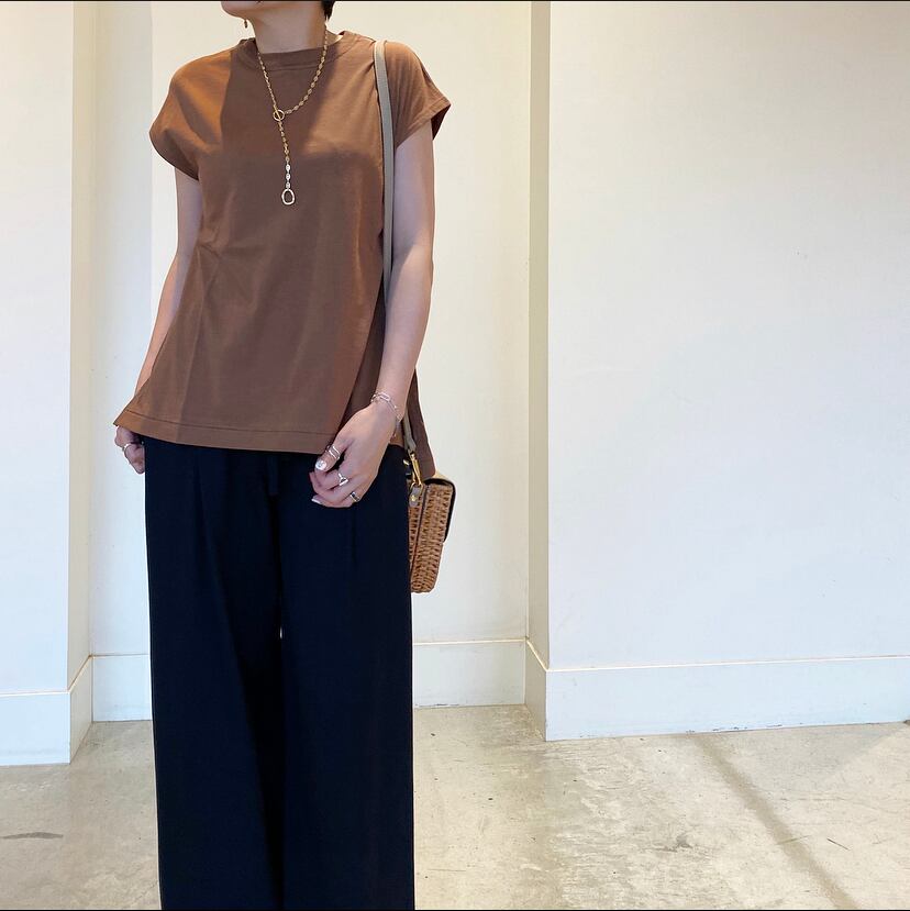 しっかりとした安心感のある生地のため、一枚でもインナー使いにも着こなしやすいアイテムです♪