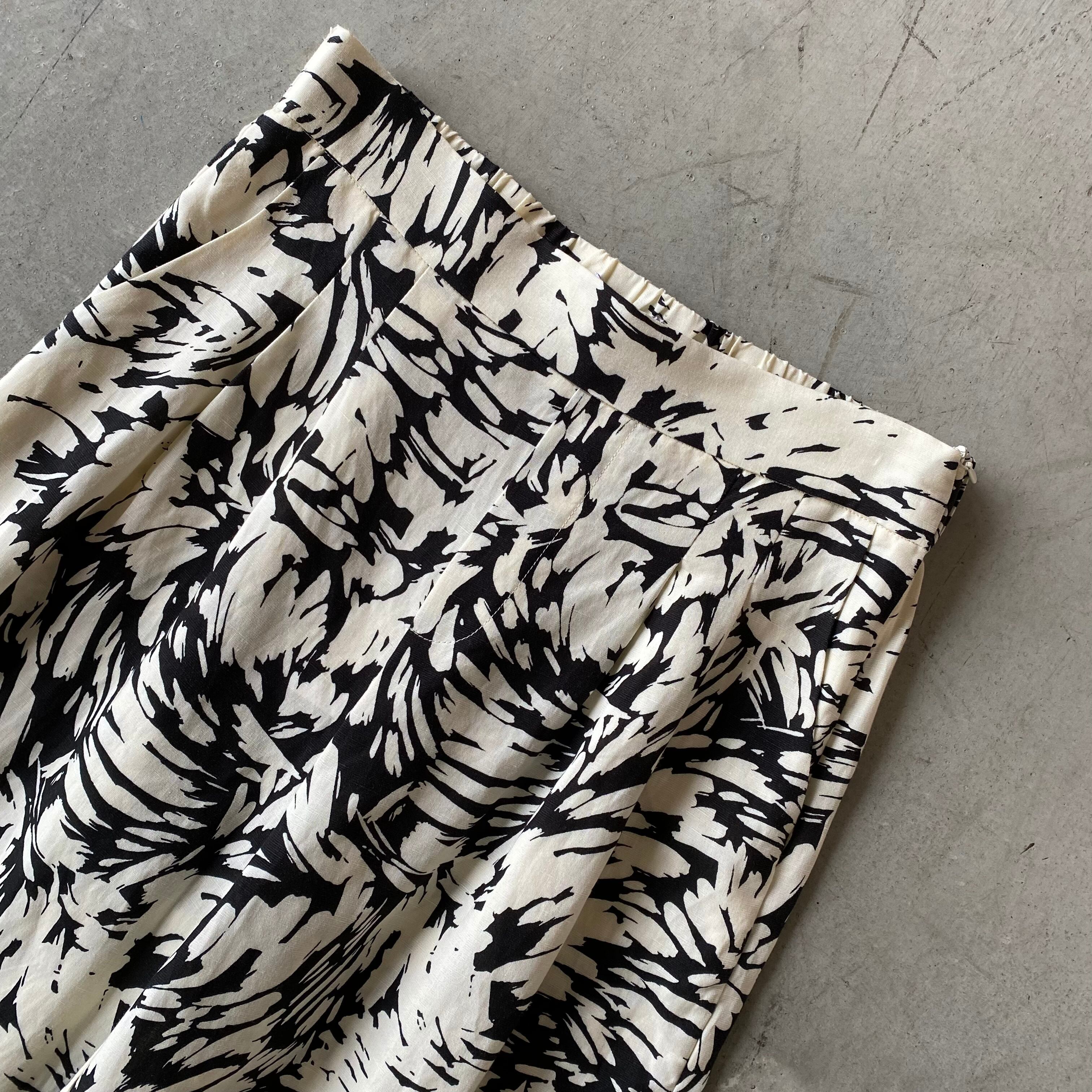 派手すぎずに大人でも取り入れやすい!モノトーンプリント タックワイドパンツです。