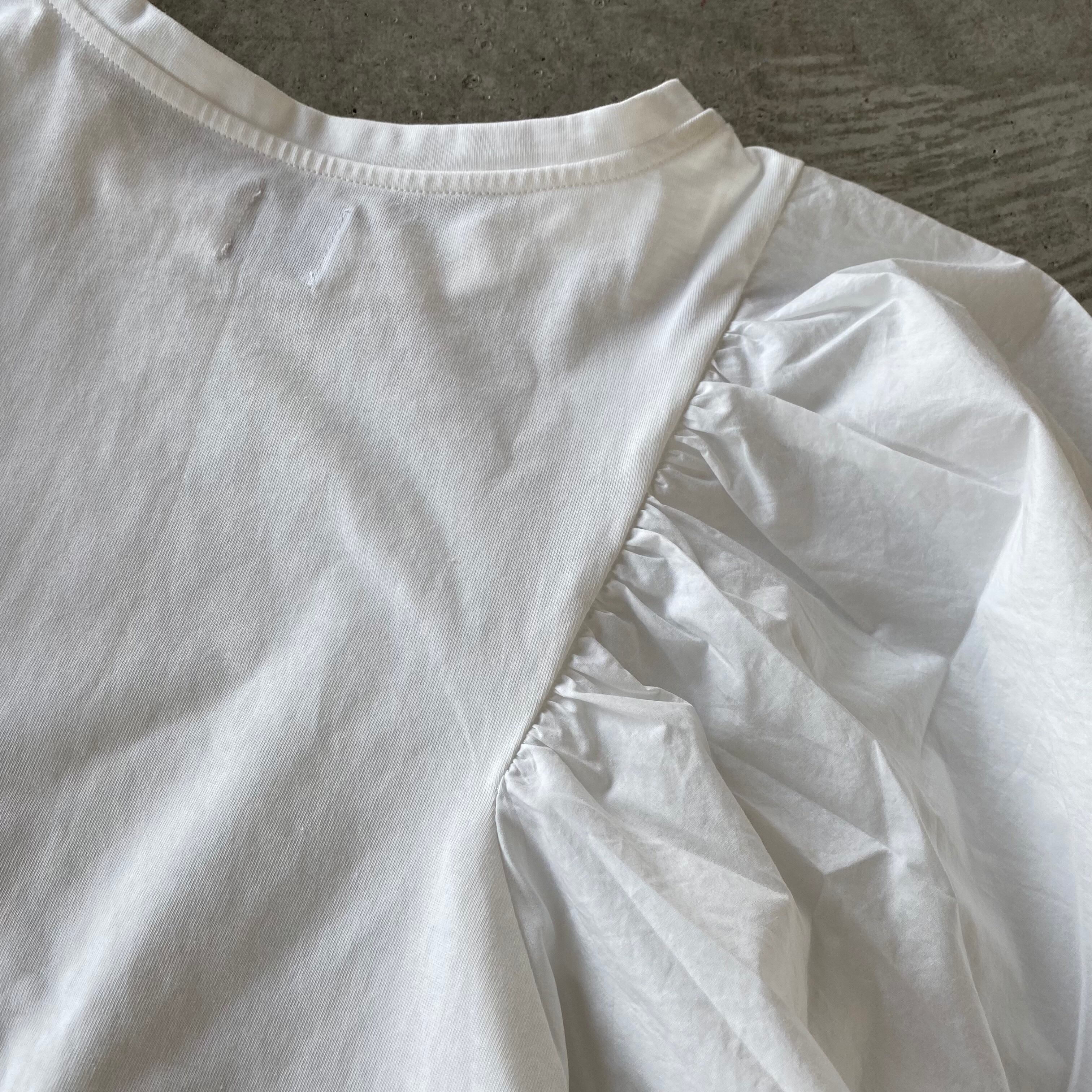 まだまだ注目の! ”袖コンシャス"アイテム♪ 異素材コンビ ボリュームスリーブTシャツです。