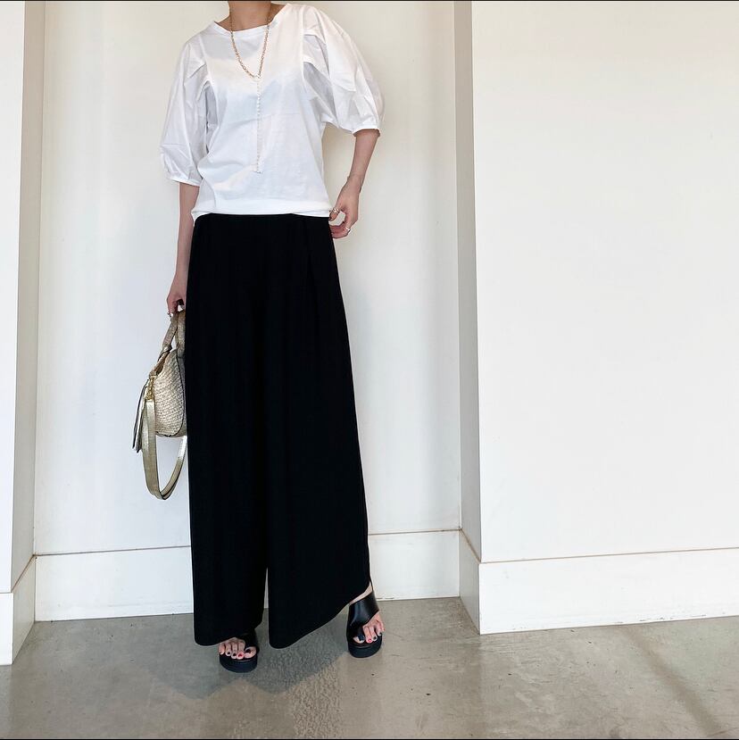 タックインでスカートやワイドパンツとのコーデはもちろん!デニムやすっきりパンツとのコーデも◎な、この夏1枚あるといろいろな着こなしが楽しめる、オススメトップスです。