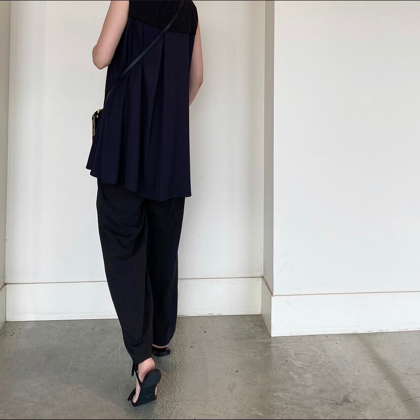 合わせやすいシンプルさが魅力のノースリーブトップス。