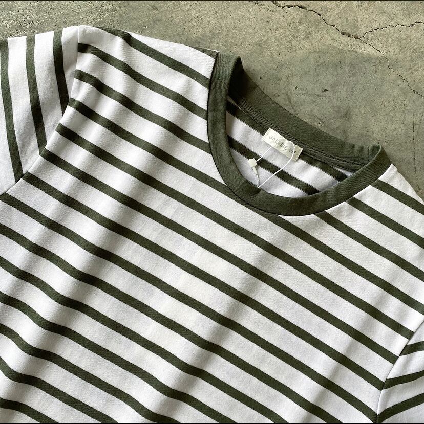 GALERIE VIE ギャルリーヴィー カーキカラーのボーダーが新鮮♪ ファインコットン クルーネックプルオーバー