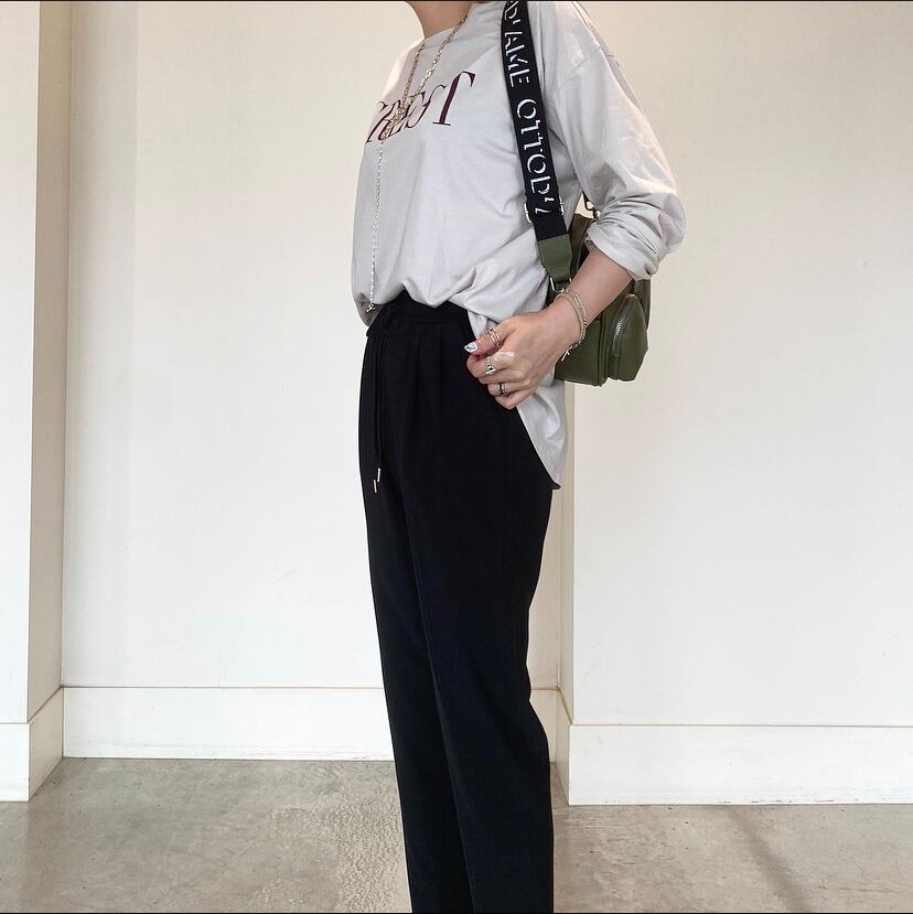 オーバーサイズのニットやカットソーなどを合わせても、程よく上品な印象へアップデート出来ます。