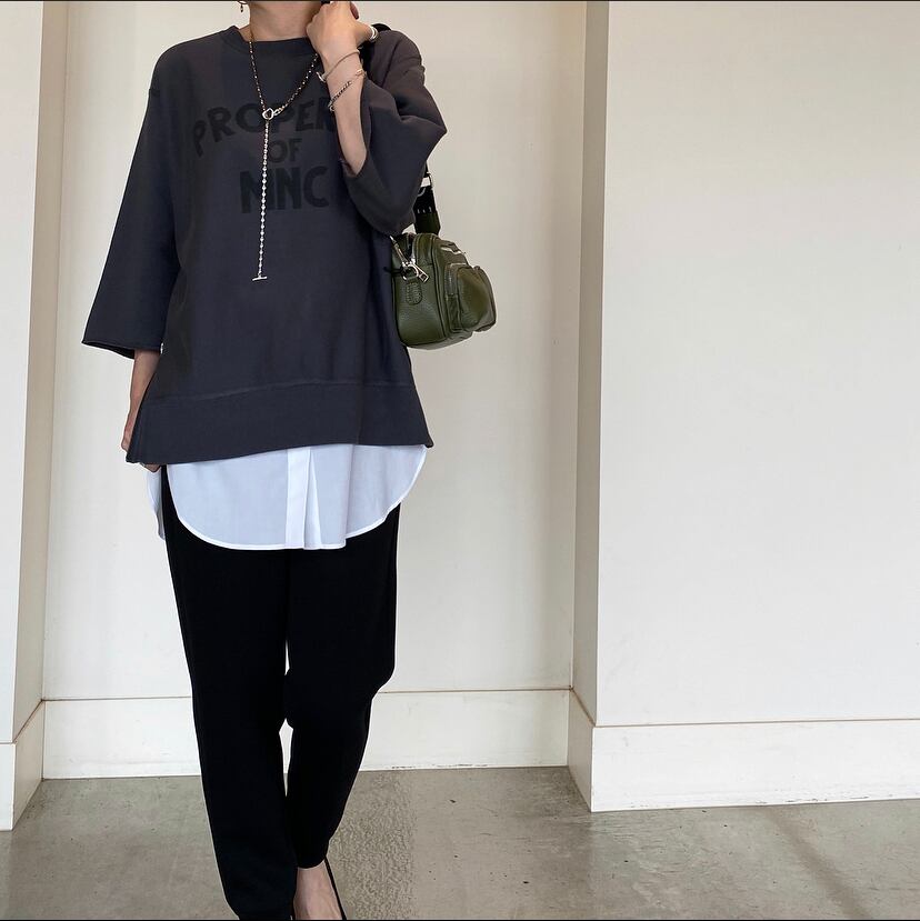 1枚でさらっと着こなすのも◎、インナープラスでレイヤードコーデも楽しめるロングシーズン活躍間違いなしなオススメトップスです。