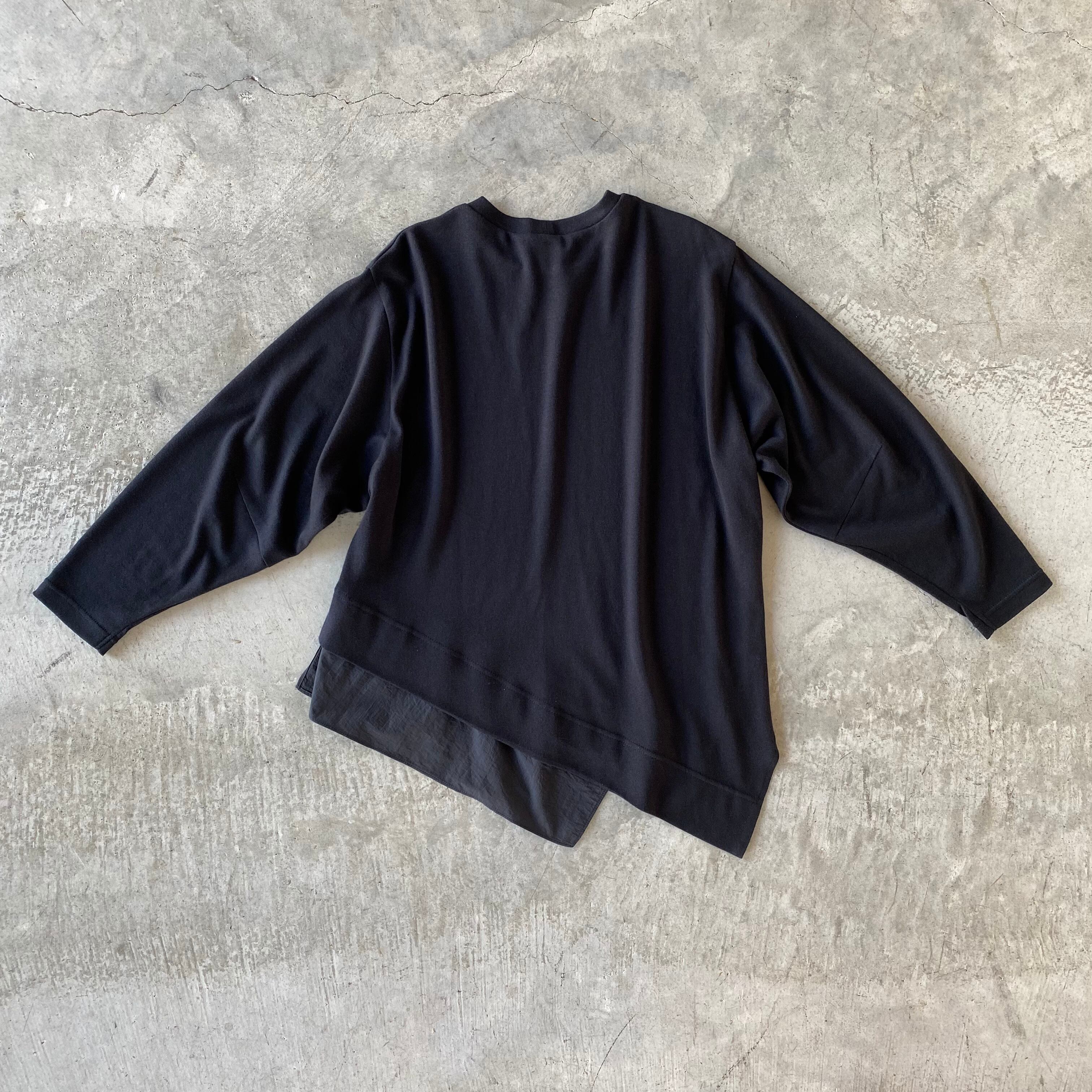 シンプルボトムスに合わせるだけでトレンドスタイルに♪ 異素材コンビ レイヤードプルオーバーップスです。