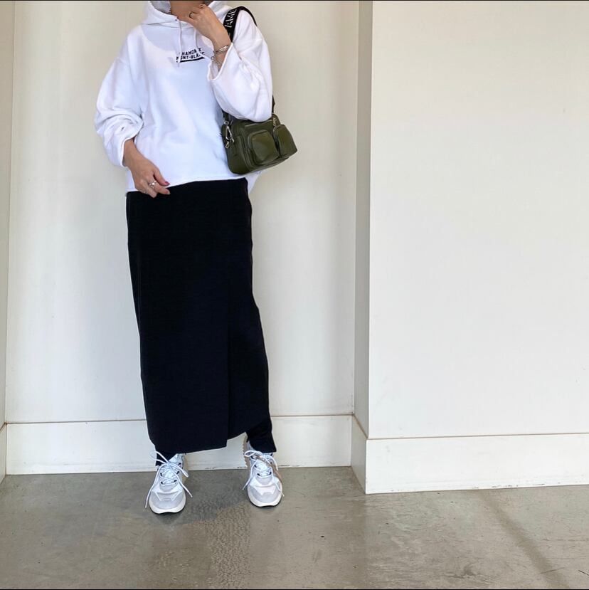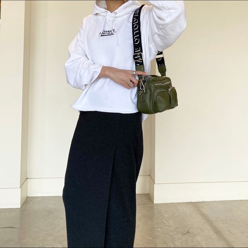 ボトムにはニットタイトスカートや、プリーツスカートなどでフェミニンな着こなしも◎、もちろん!デニムやワイドパンツにスッキリパンツなどのボトムとも相性抜群なおすすめスウェットパーカーです。