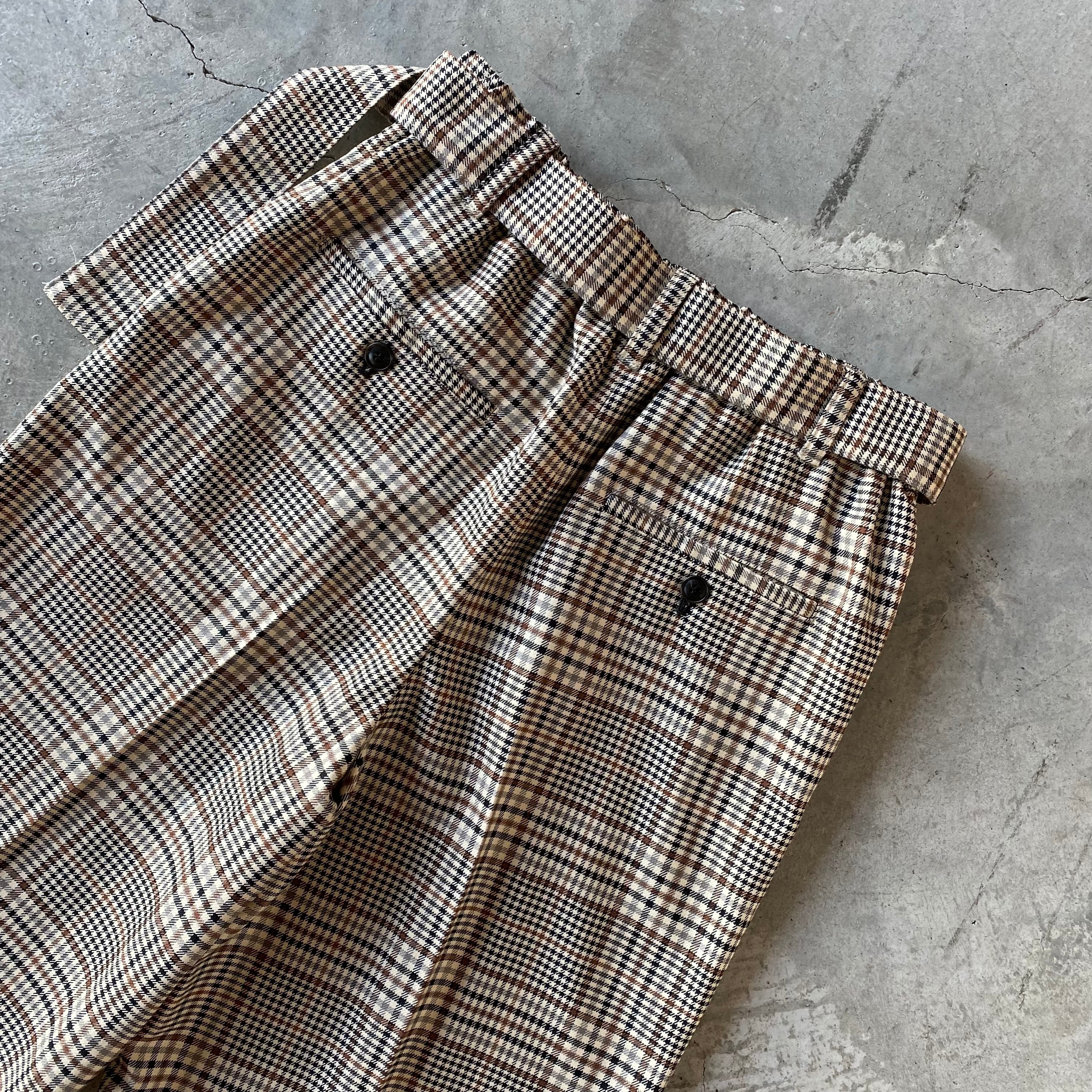 ボタンベルトのアクセントがスタイルアップ効果抜群のセミワイドなチェックパンツ。